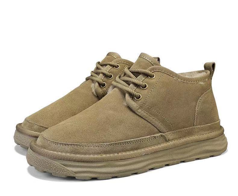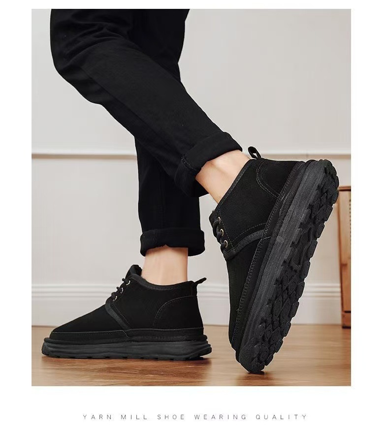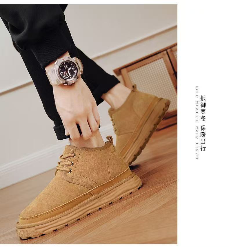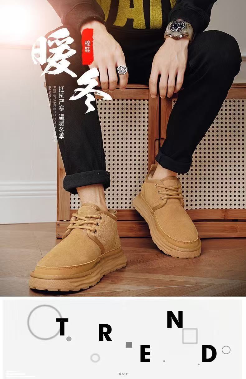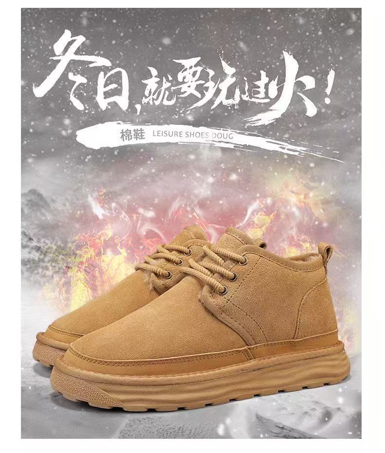 Winter Warm Snow Boots for Men, Integrated Leather and Fur, Thickened with Plush, Non-Slip, Northeast Old Beijing Men's Shoes