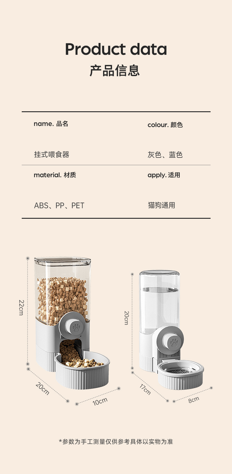 喂食+喂水组合装:毛重≈549g,包装盒尺寸:23.8*11.2*21 cm,装箱数:36 PCS,外箱箱规:69*50*64cm,重量≈21kg