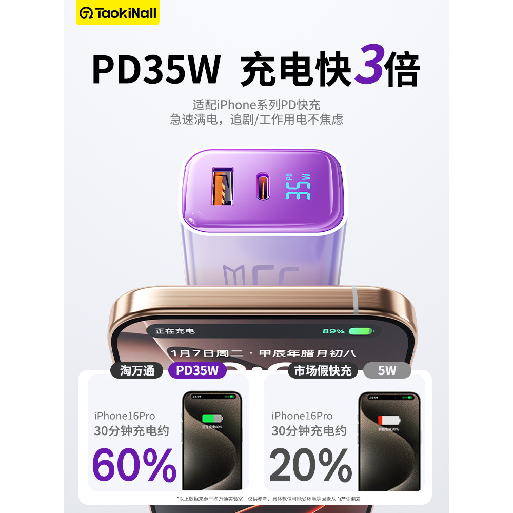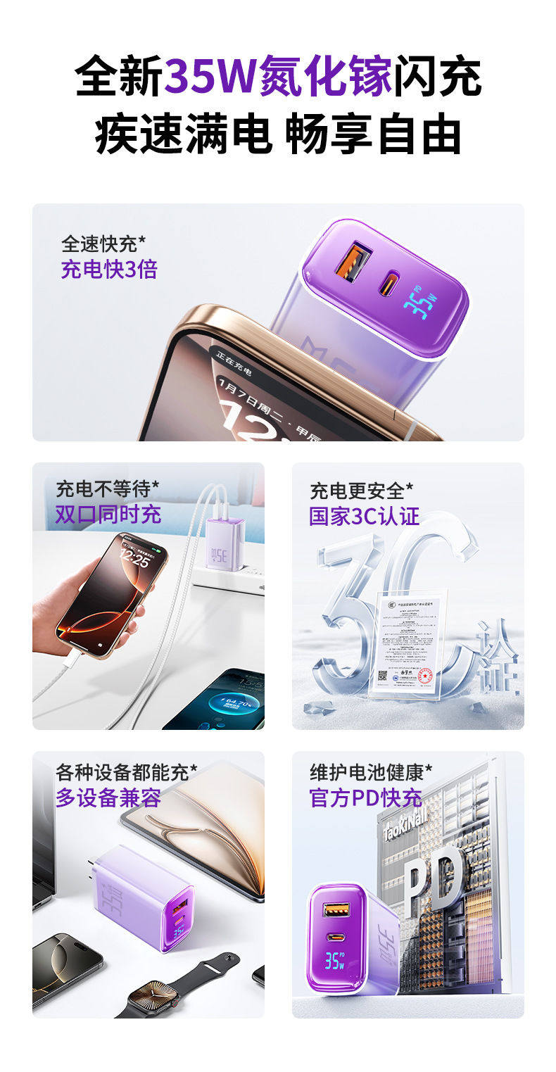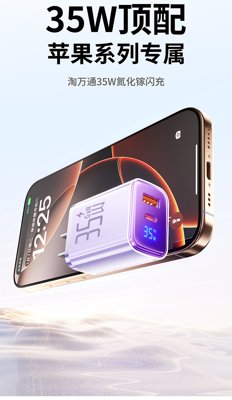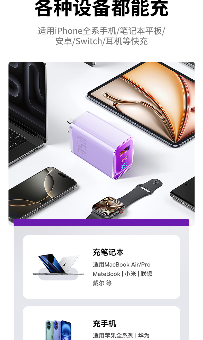 "【single head】""charming purple-35w"" is suitable for all iphone8-17 series/android fast charging smart digital display"
