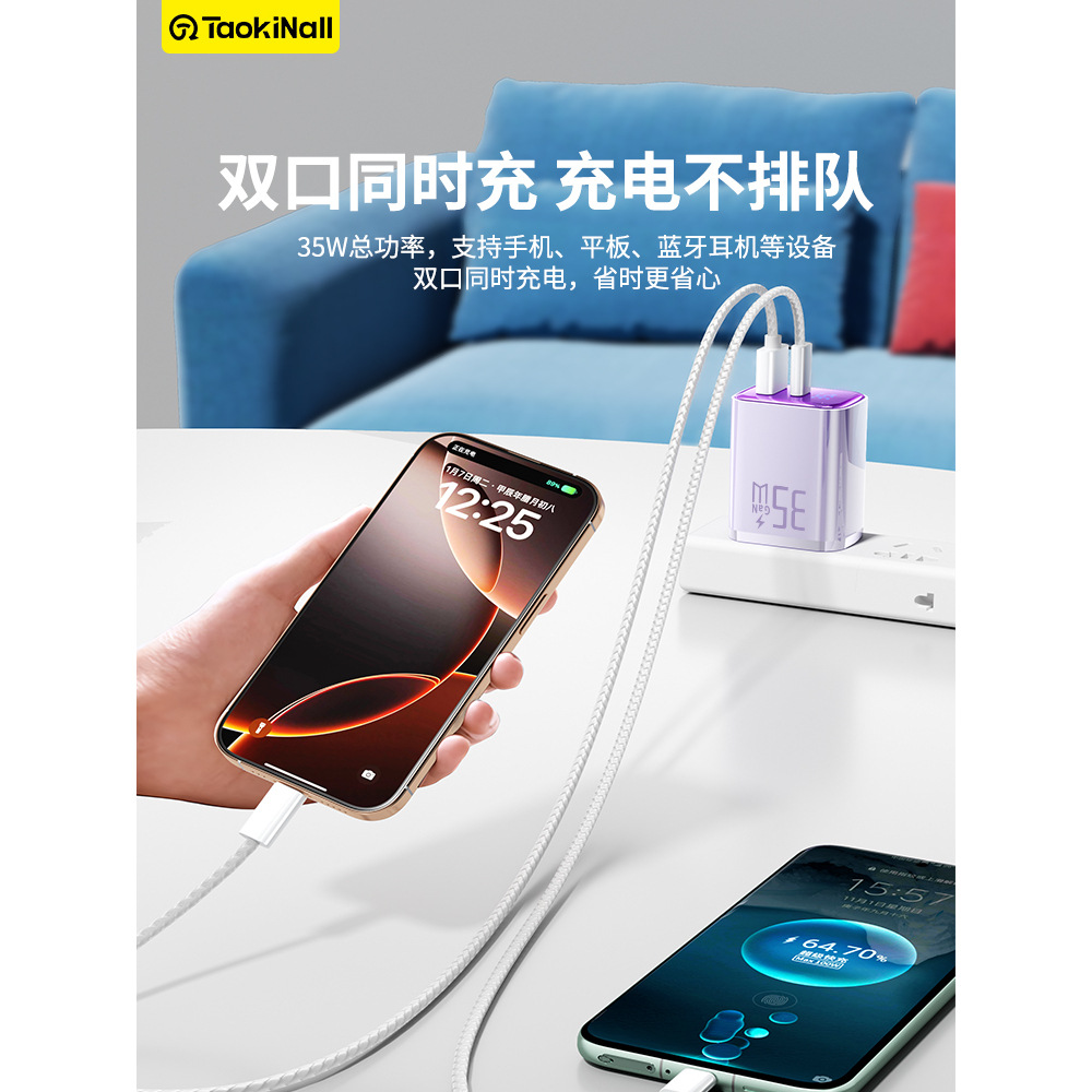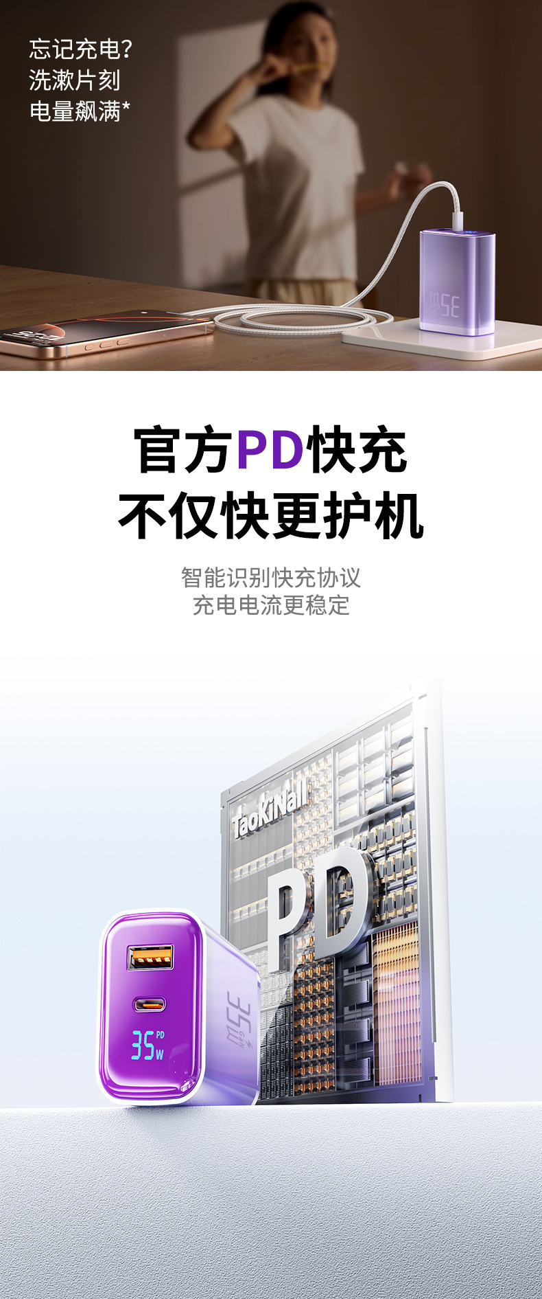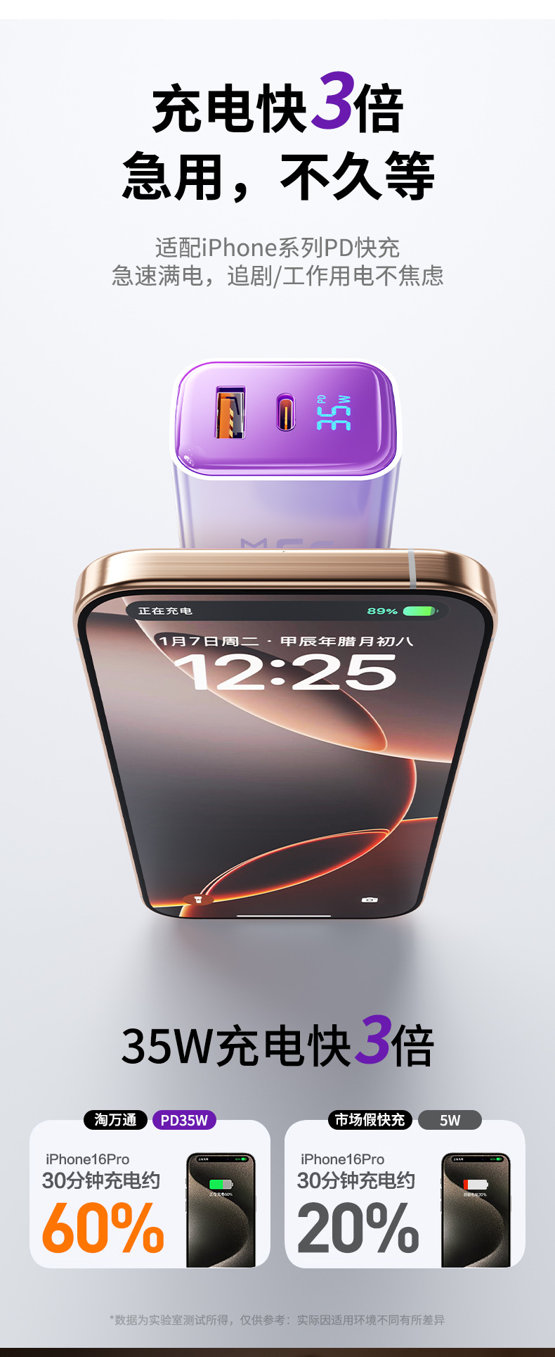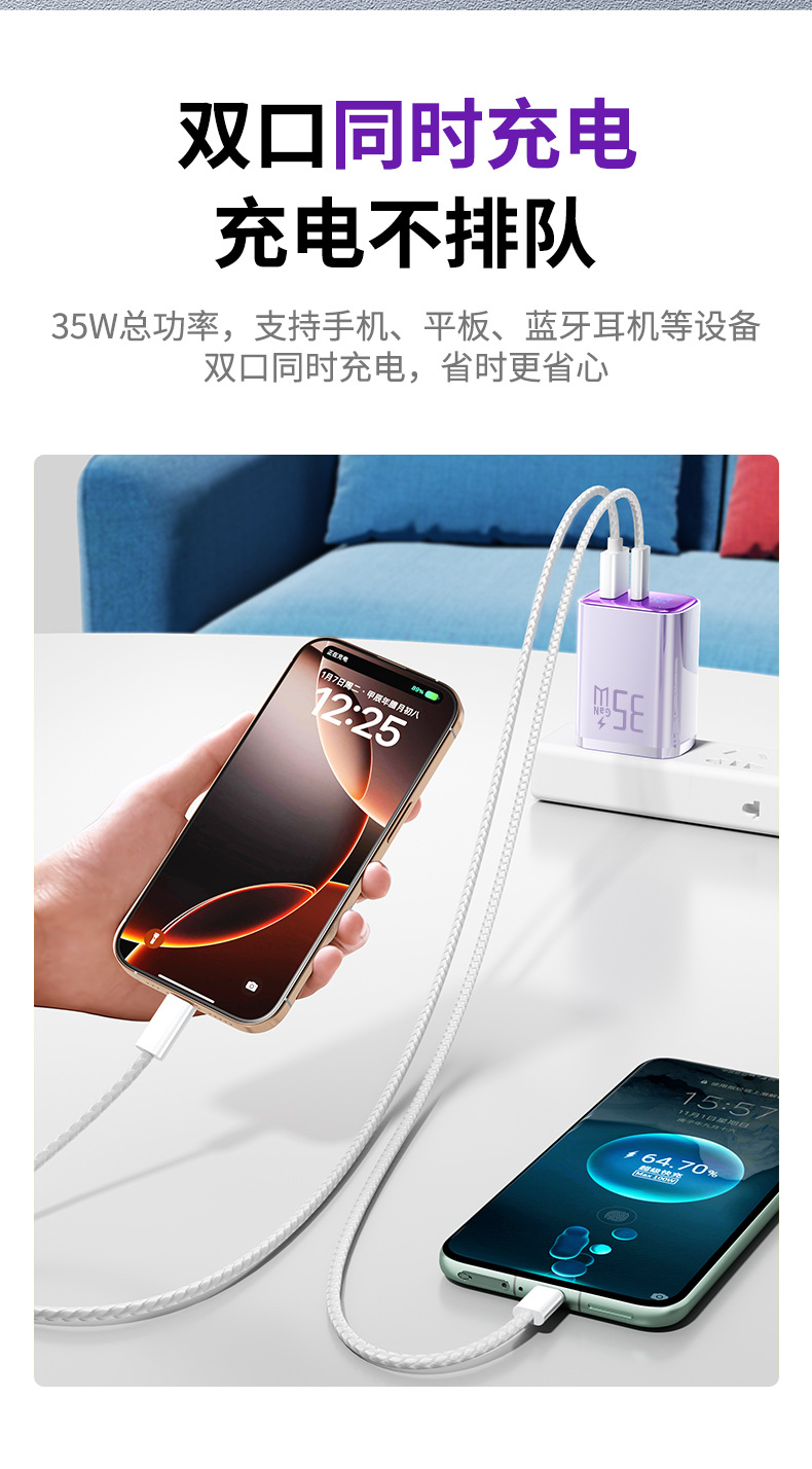 "【single head】""charming purple-35w"" is suitable for all iphone8-17 series/android fast charging smart digital display"