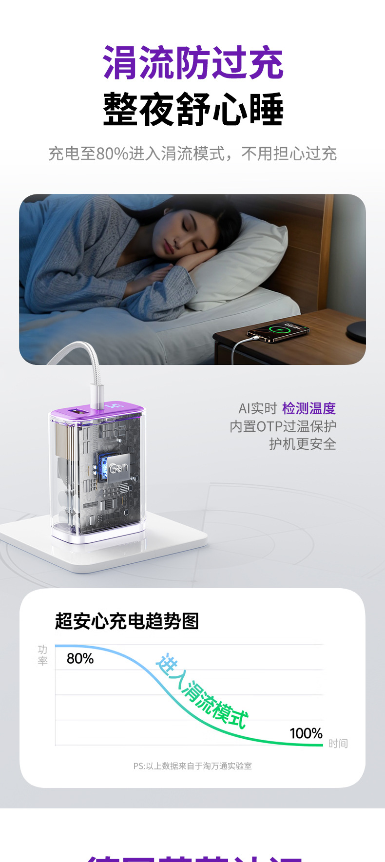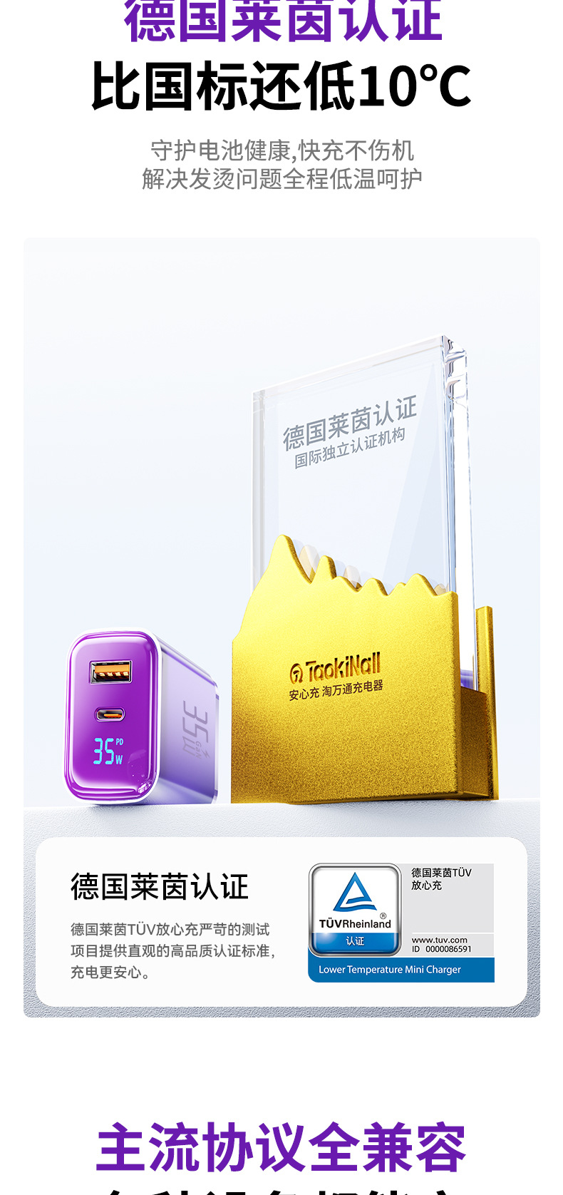 "[15-17 set] ""charming purple-35w"" charger + 1.0m double c braided cable intelligent digital display"