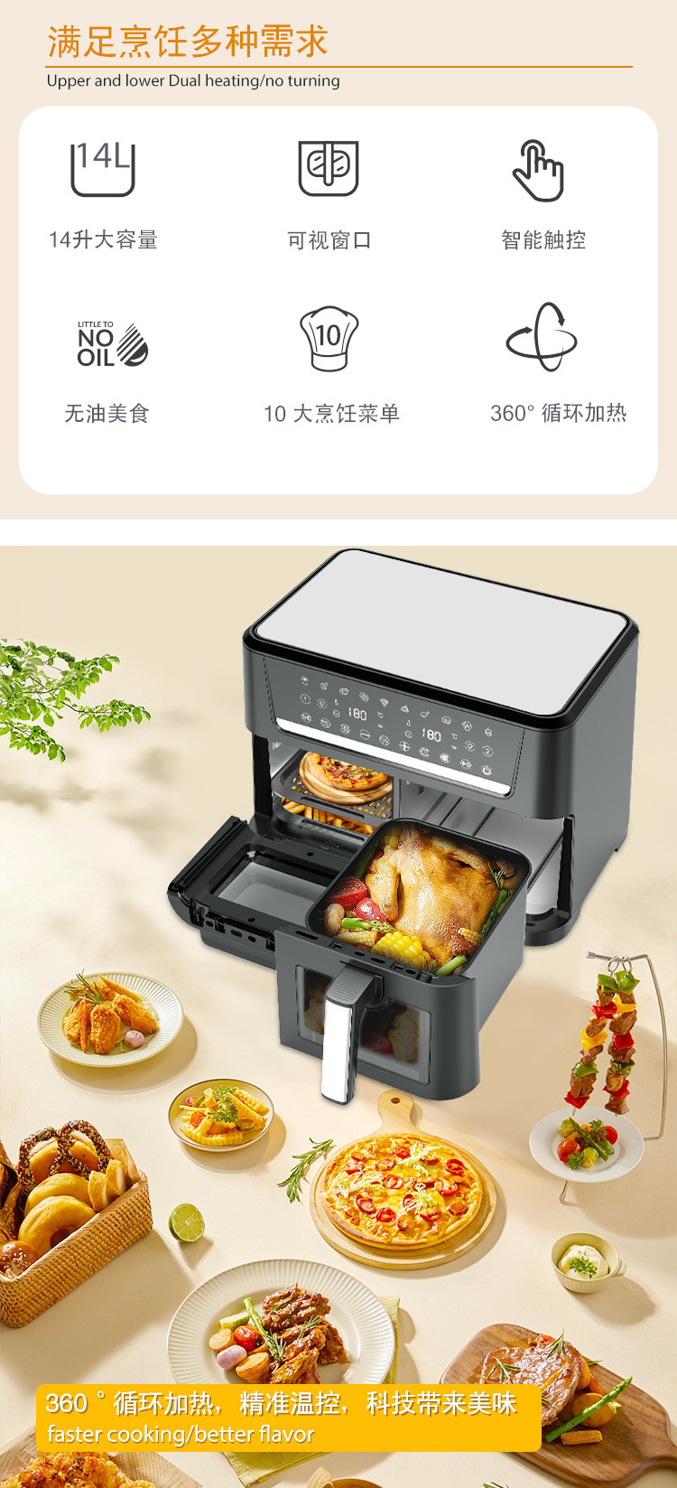 Cross-Border Popular 14L Large-Capacity Dual-Chamber Air Fryer Household High-Power Intelligent Oil-Free Electric Fryer Oven