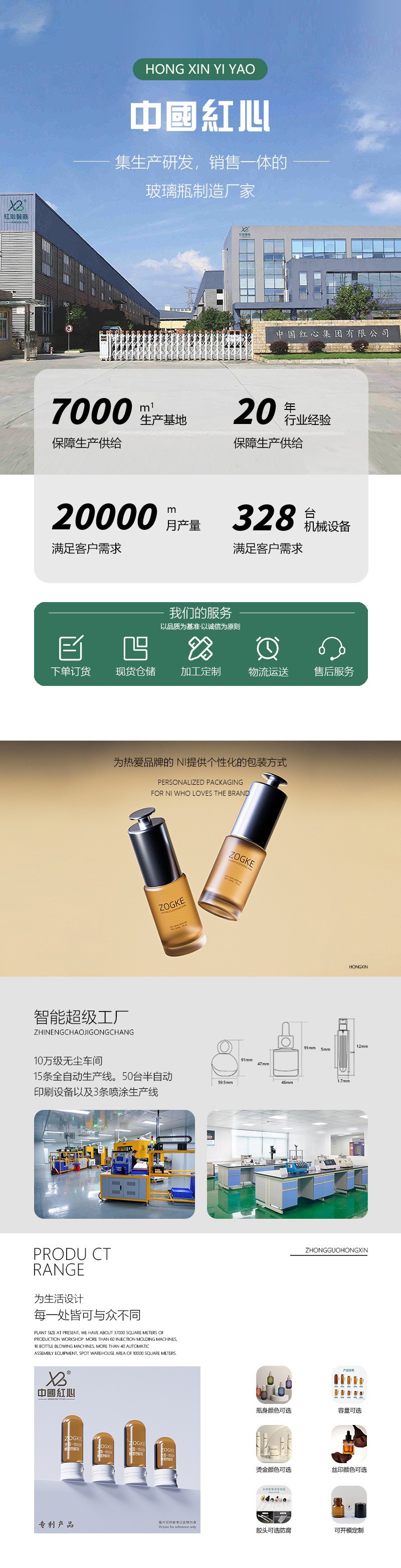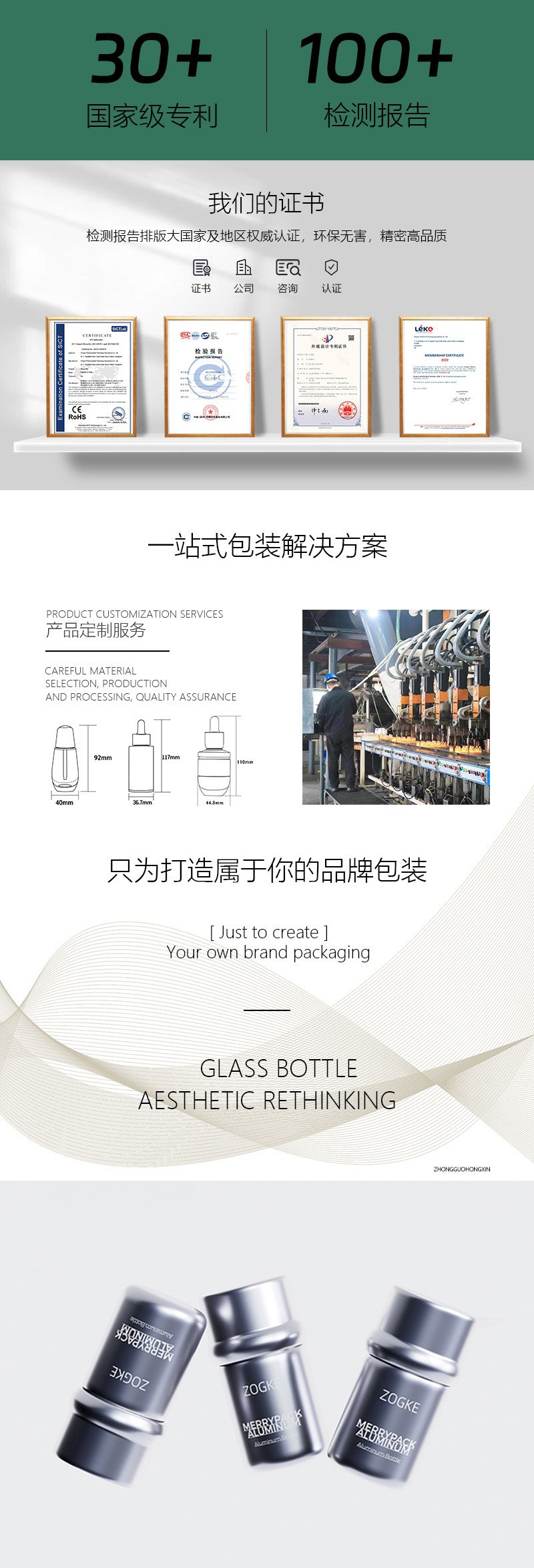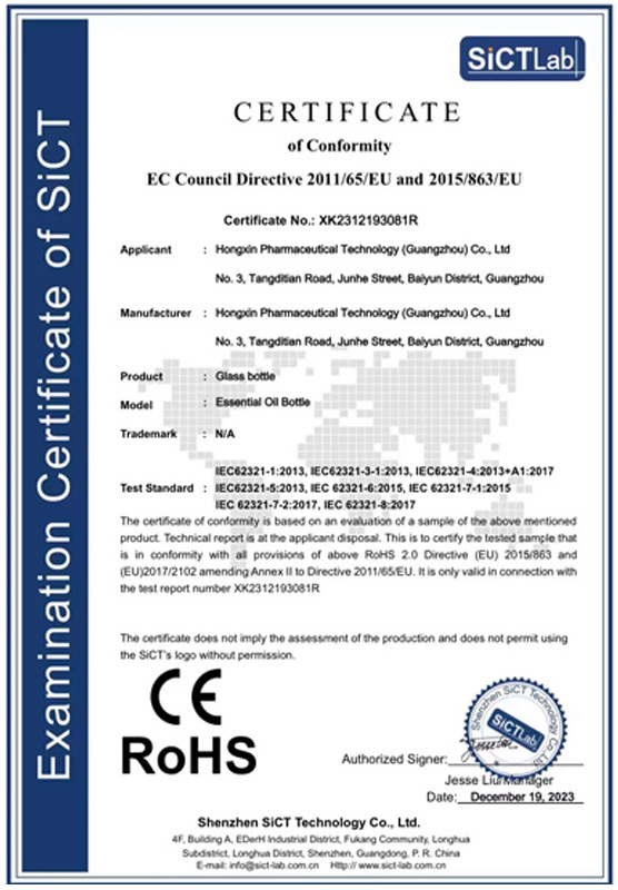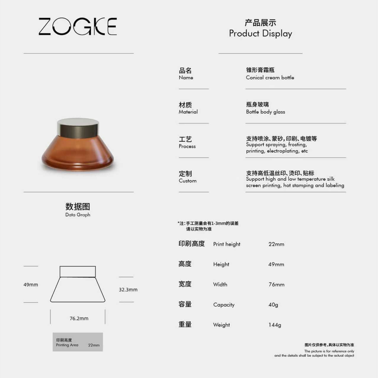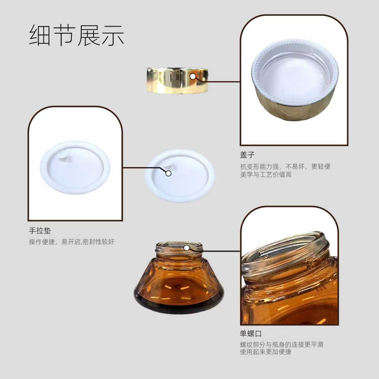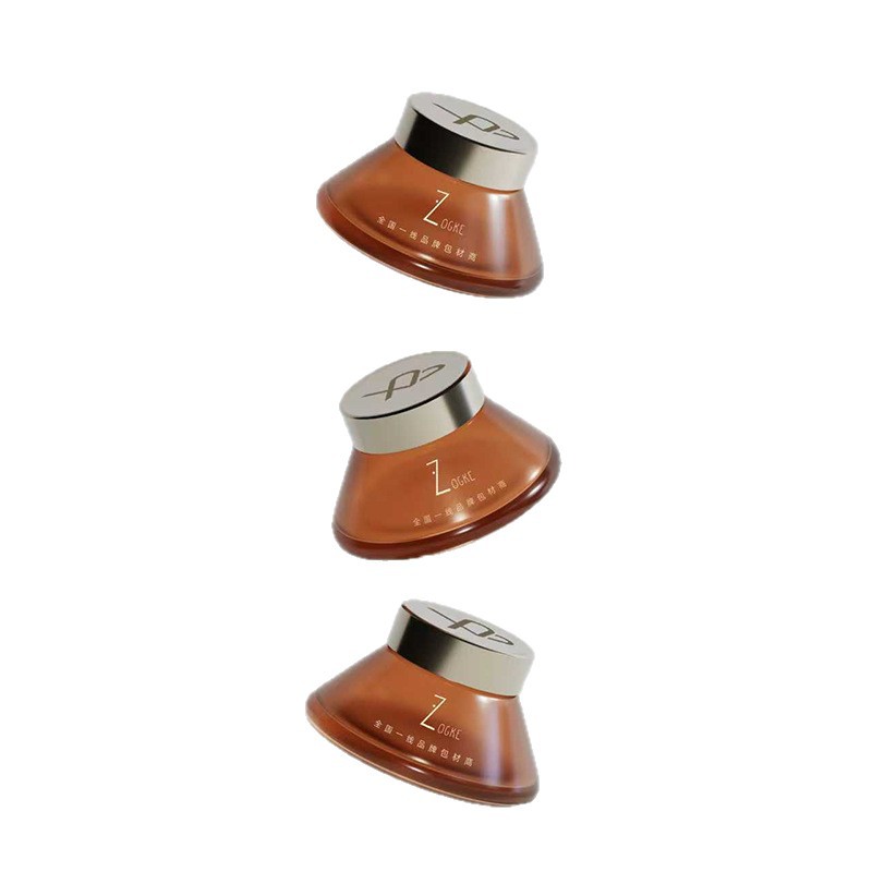 40g transparent conical cream bottle with gold outer cap + hand-operated pad; blank bottle; glass