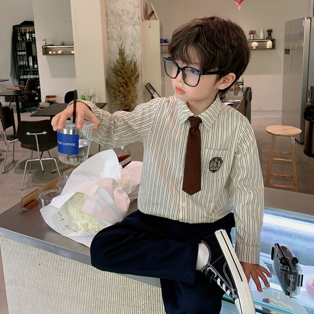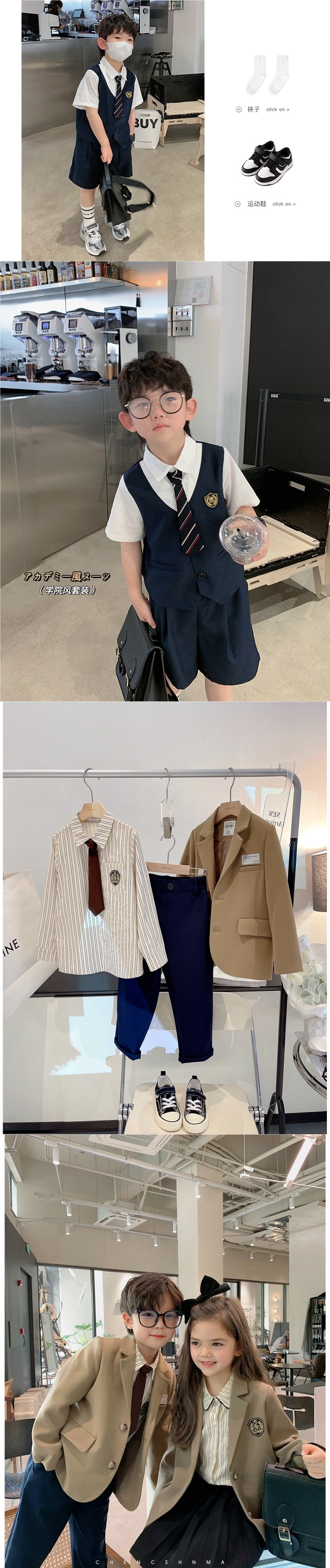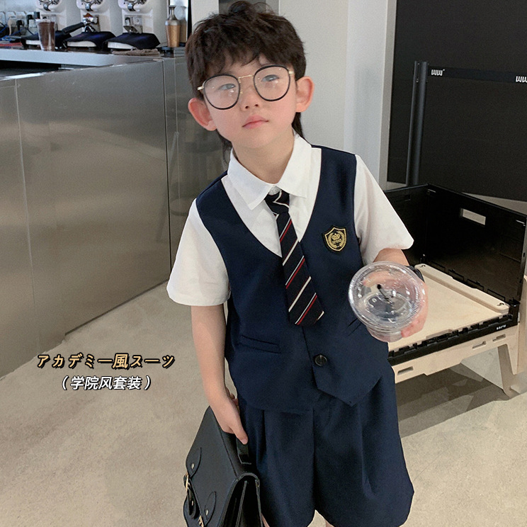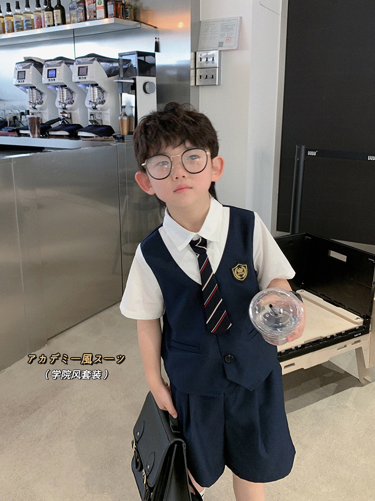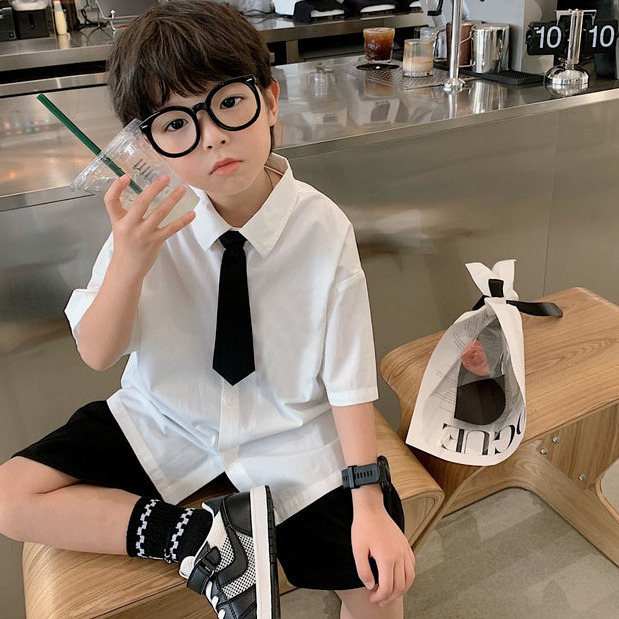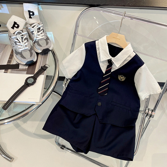 Black and white short-sleeved suit, anti-wrinkle and non-fading