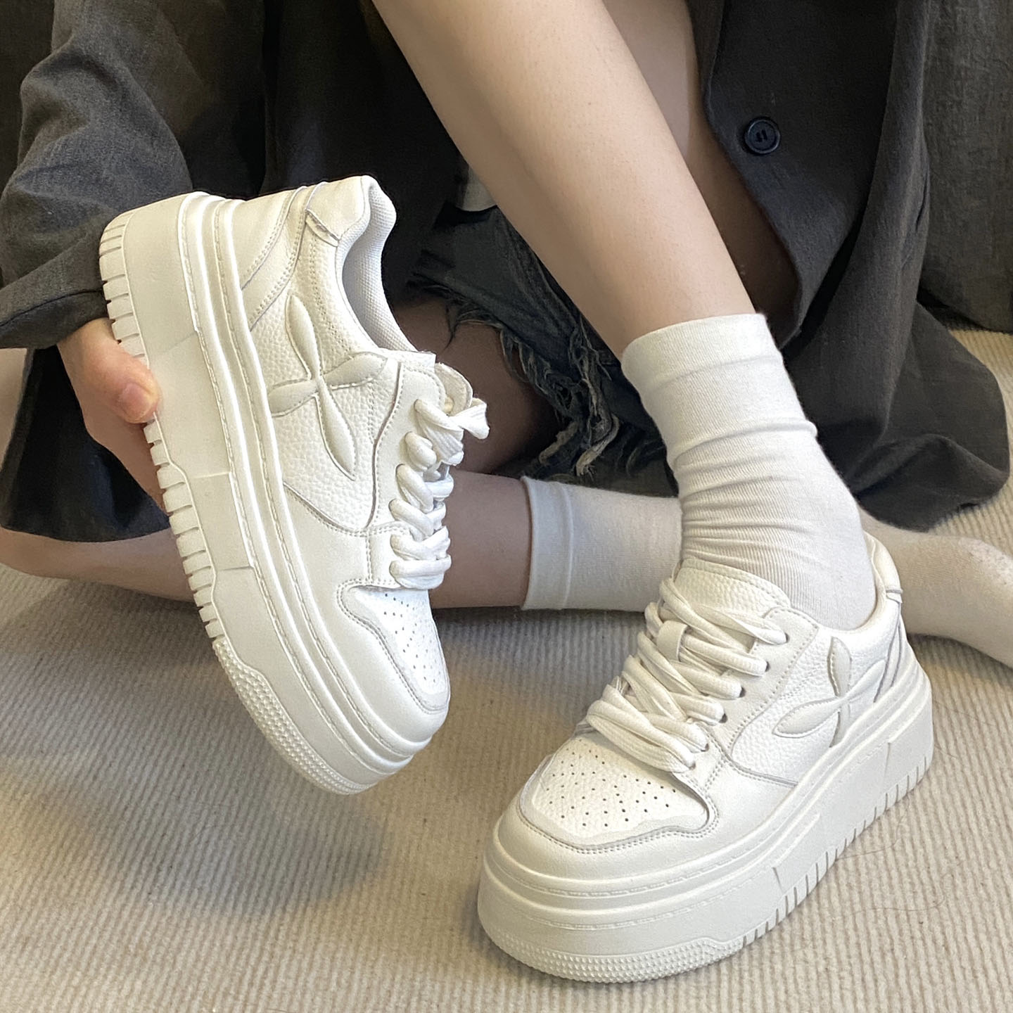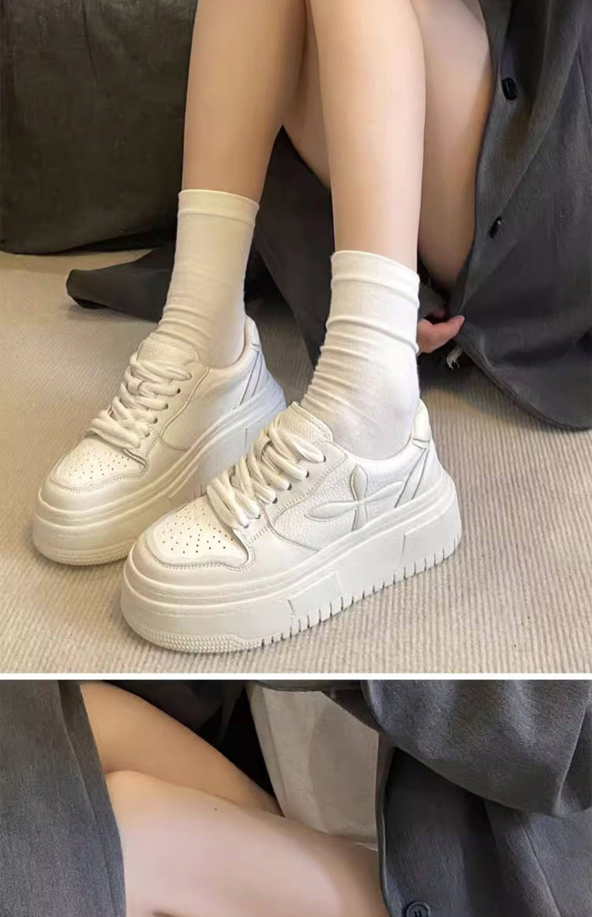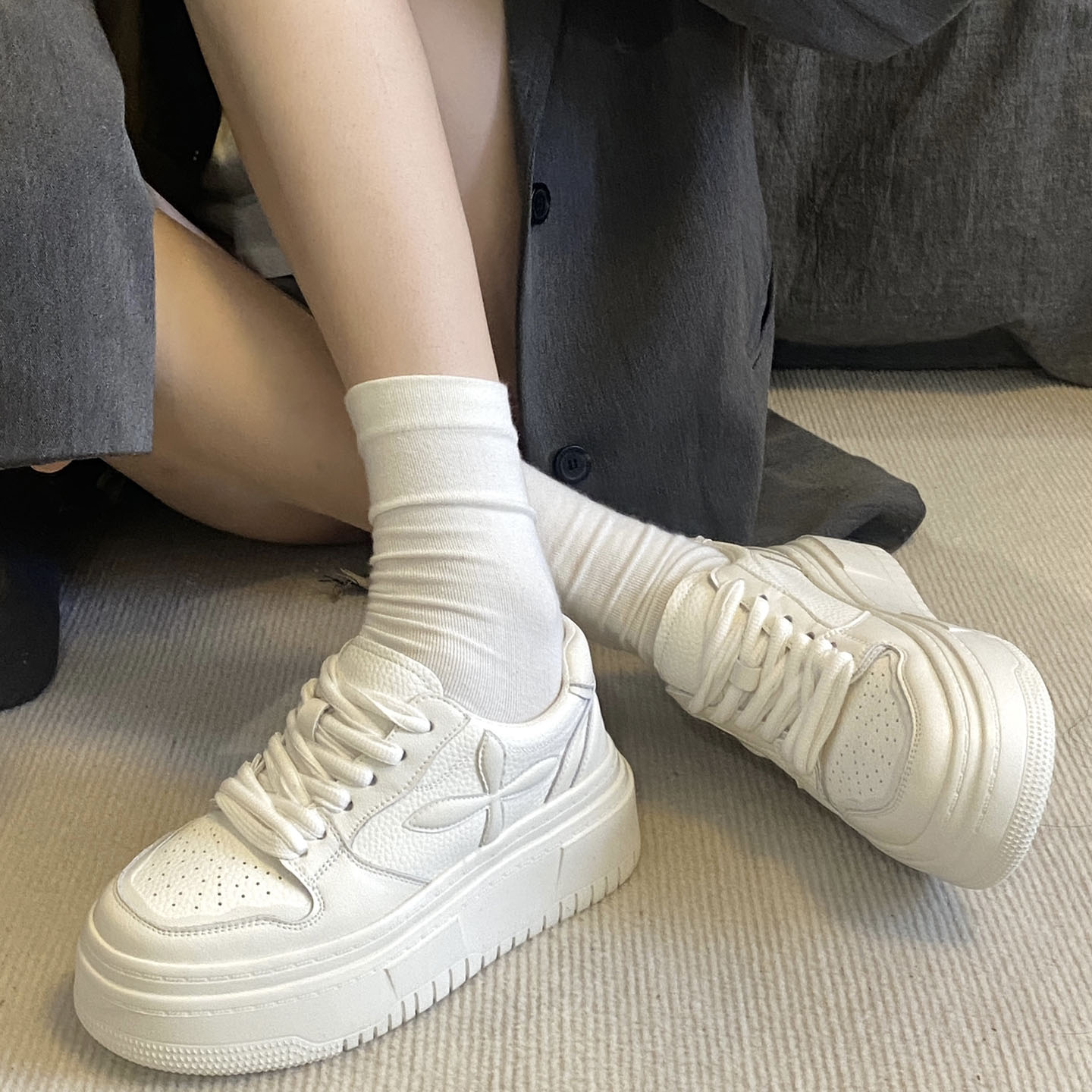 Women's Thick-Soled Genuine Leather White Shoes, Chanel Style, Slimming, Height-Increasing, Versatile Autumn Loafers