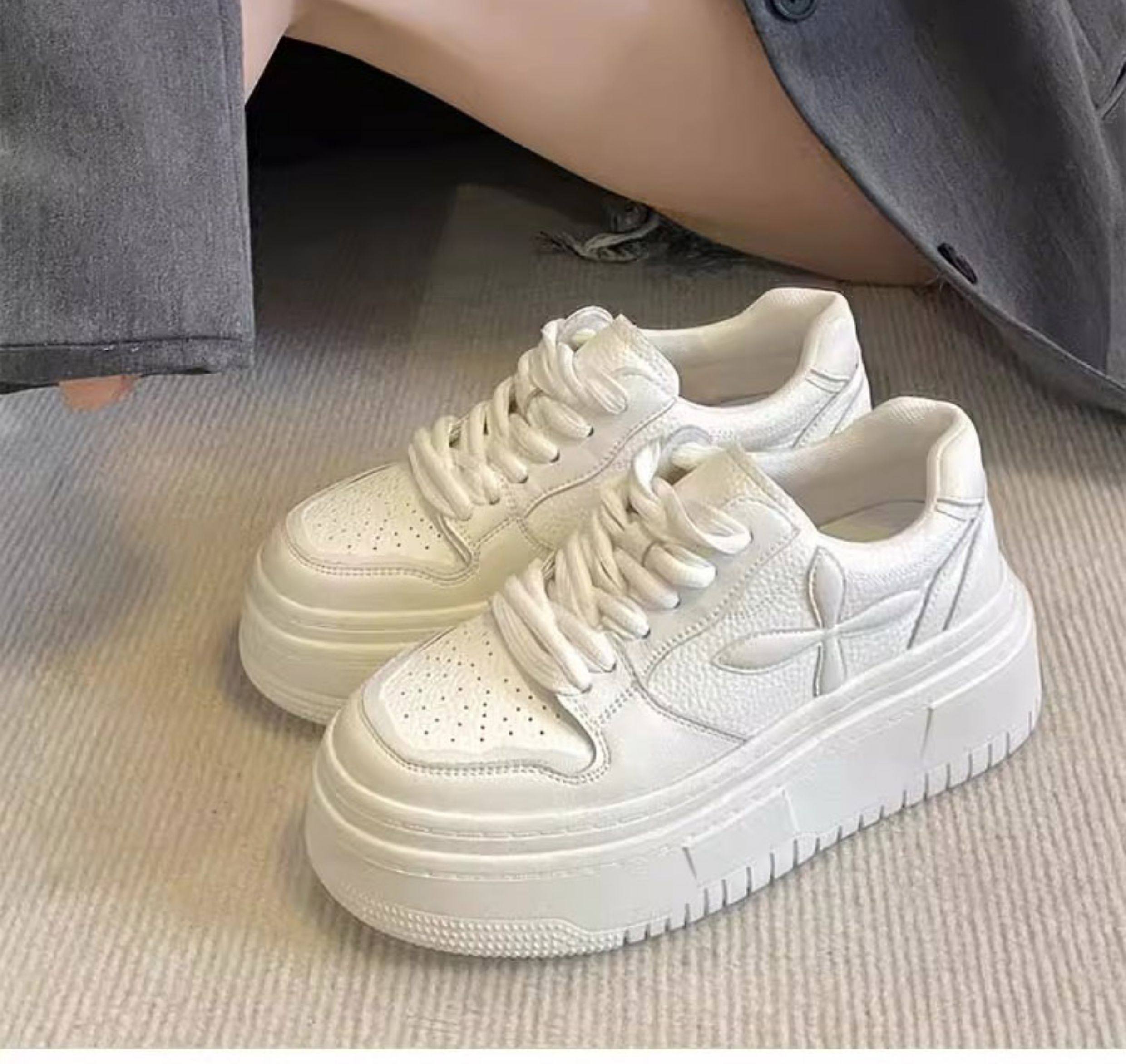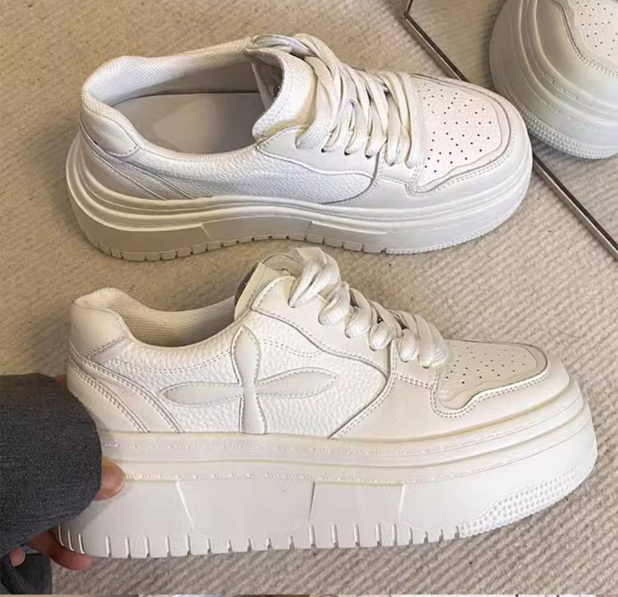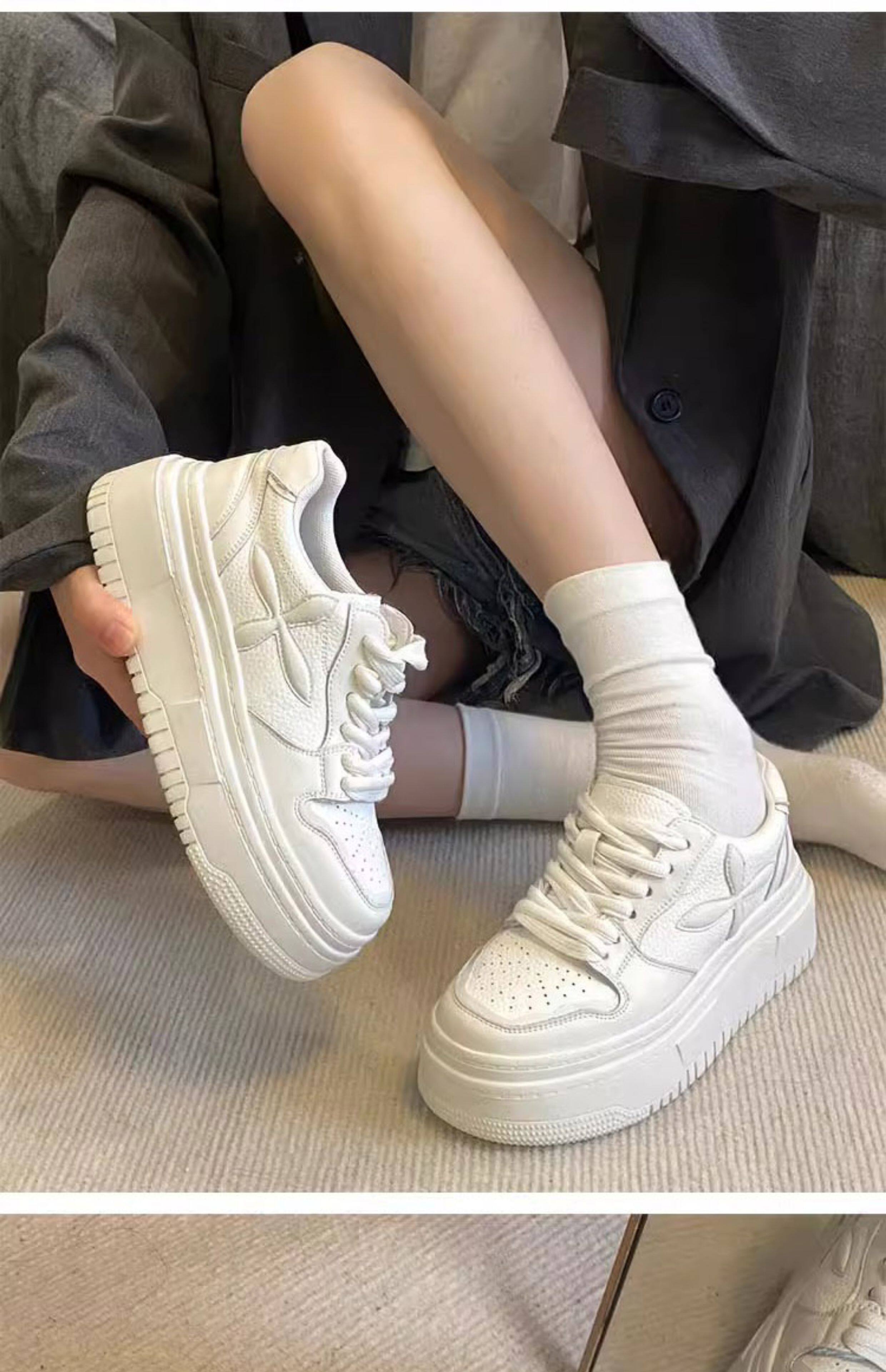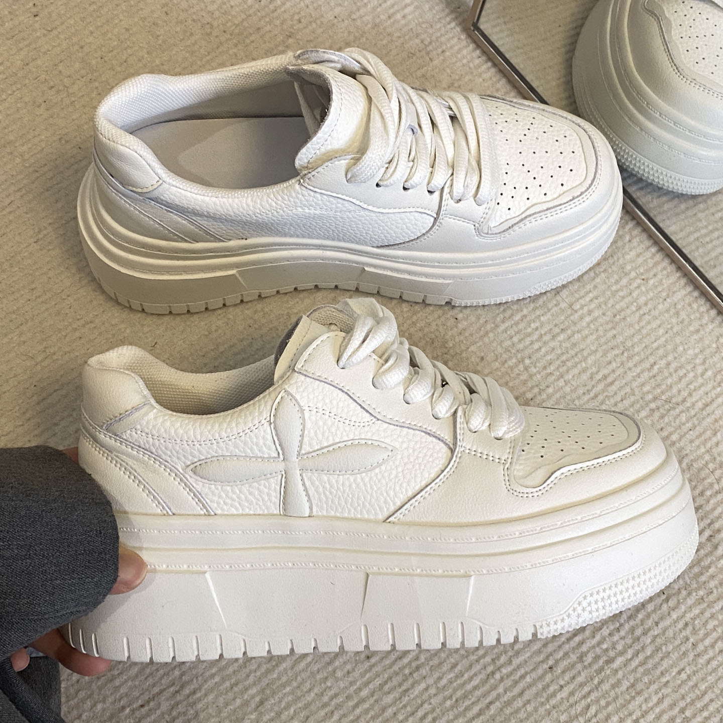 Women's Thick-Soled Genuine Leather White Shoes, Chanel Style, Slimming, Height-Increasing, Versatile Autumn Loafers