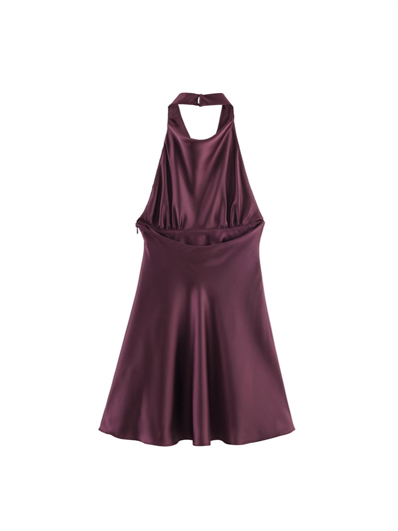 Foreign Trade Wholesale 2025 Za Women's European and American Style Halter Neck Backless Silk Satin Texture Short Dress K4-23563