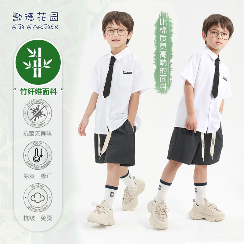 White shirt, gray shorts, tie, high quality anti-wrinkle and super cool material
