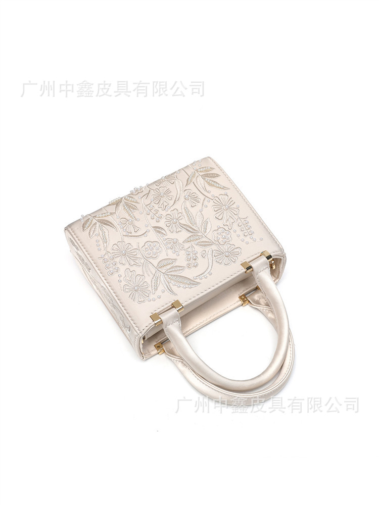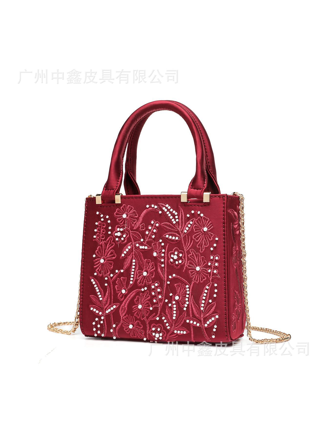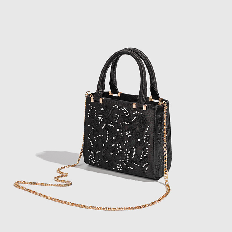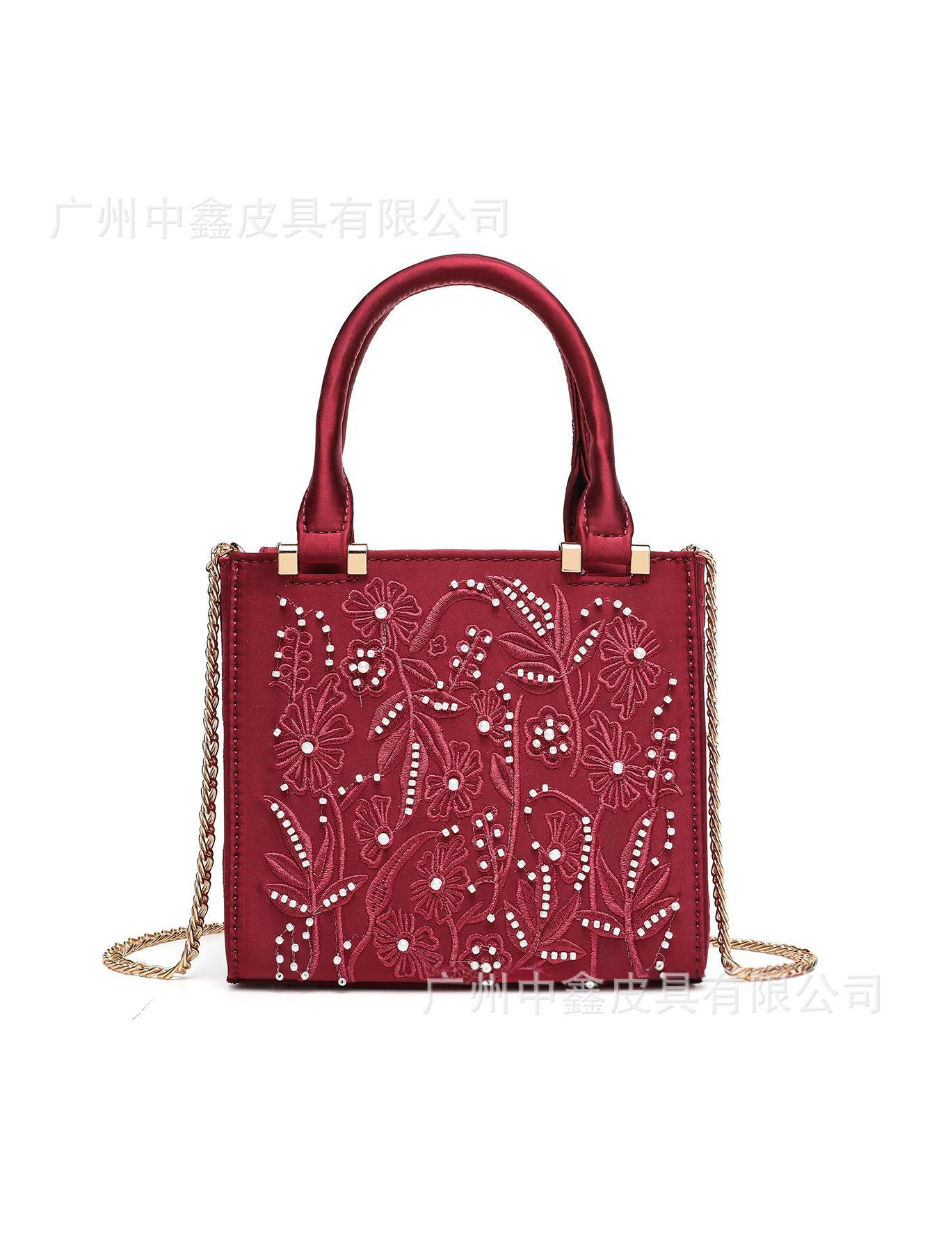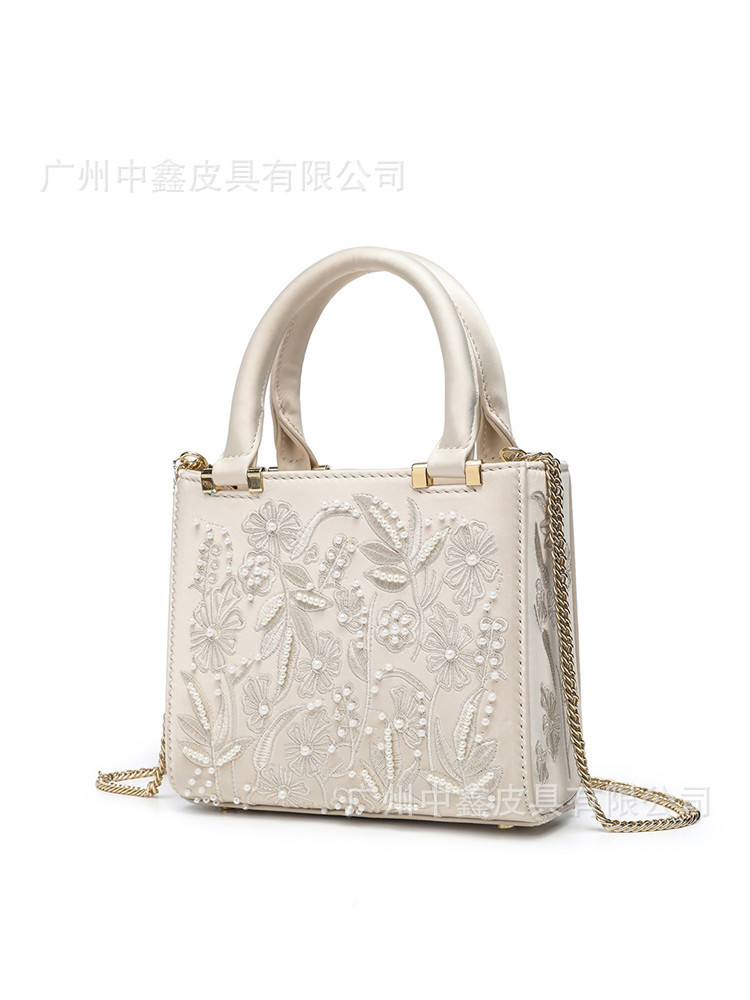 2025 Pearl Embroidered Fashion Silk Satin Texture Handbag Cheongsam Banquet Bag Clutch Bag Chain Bag Shoulder Bag Women