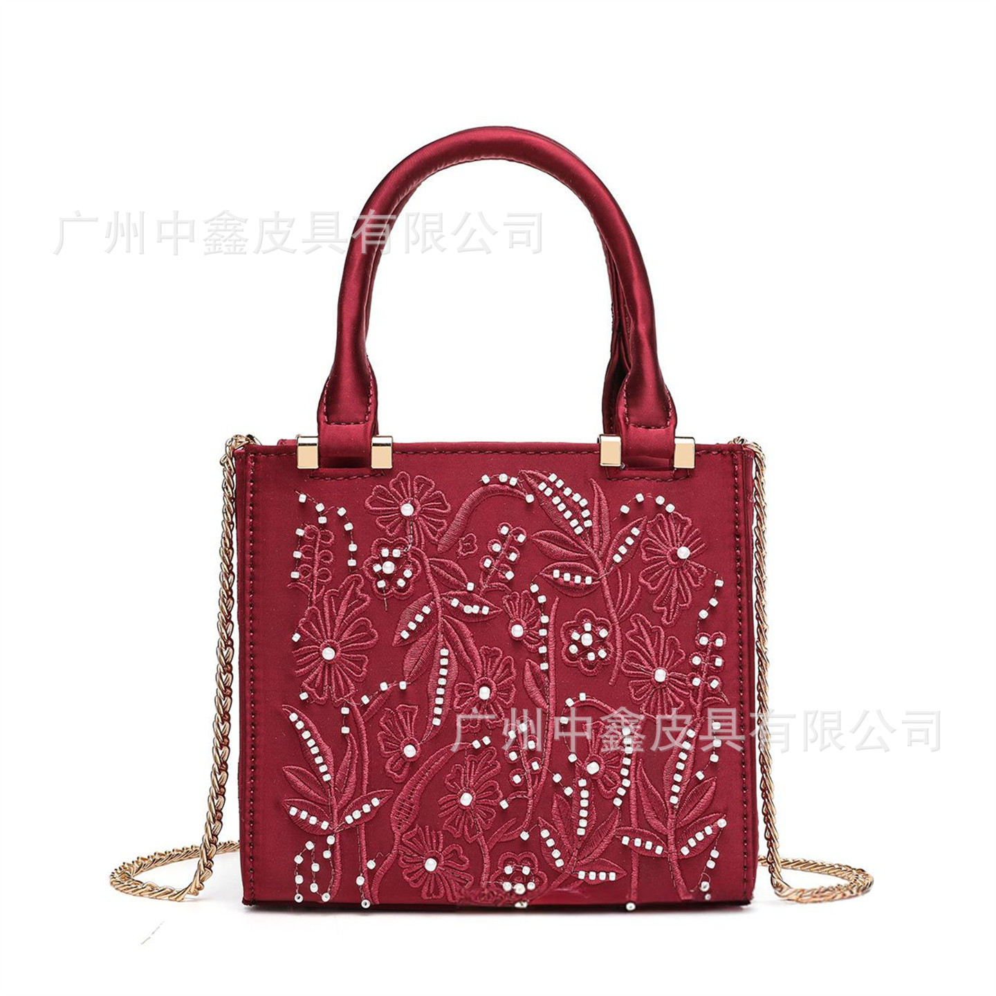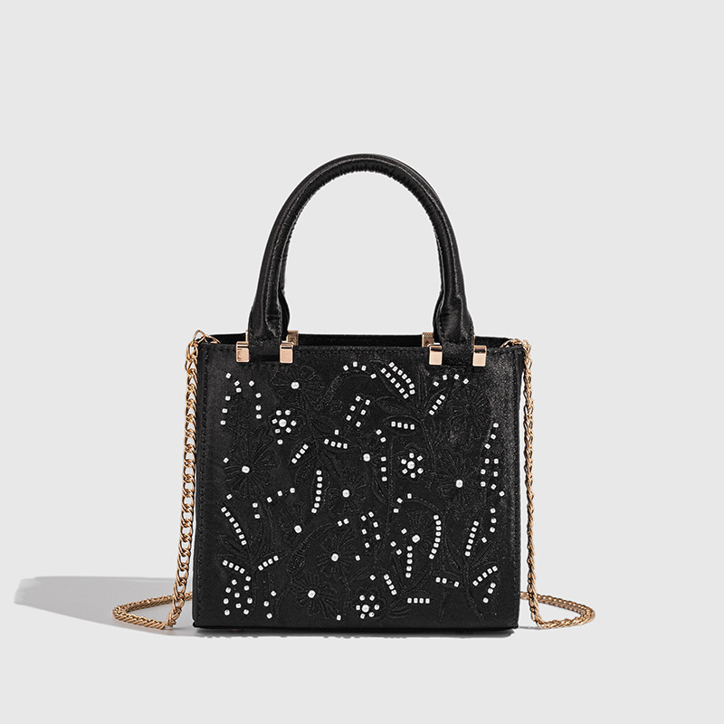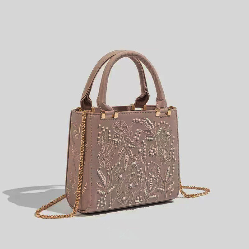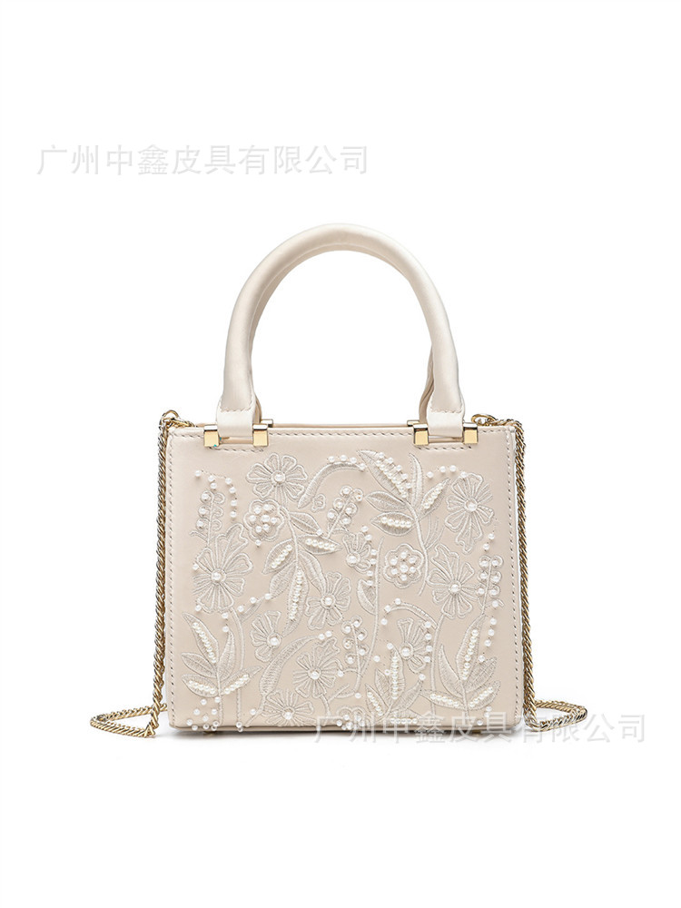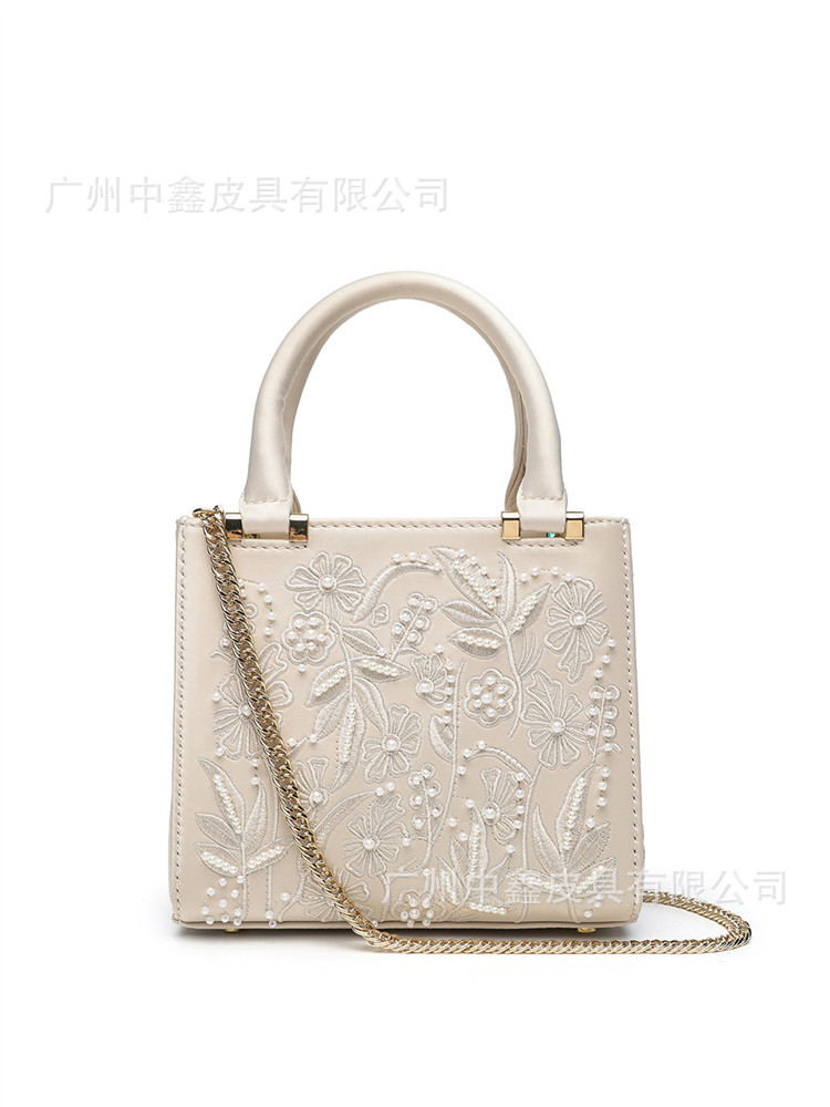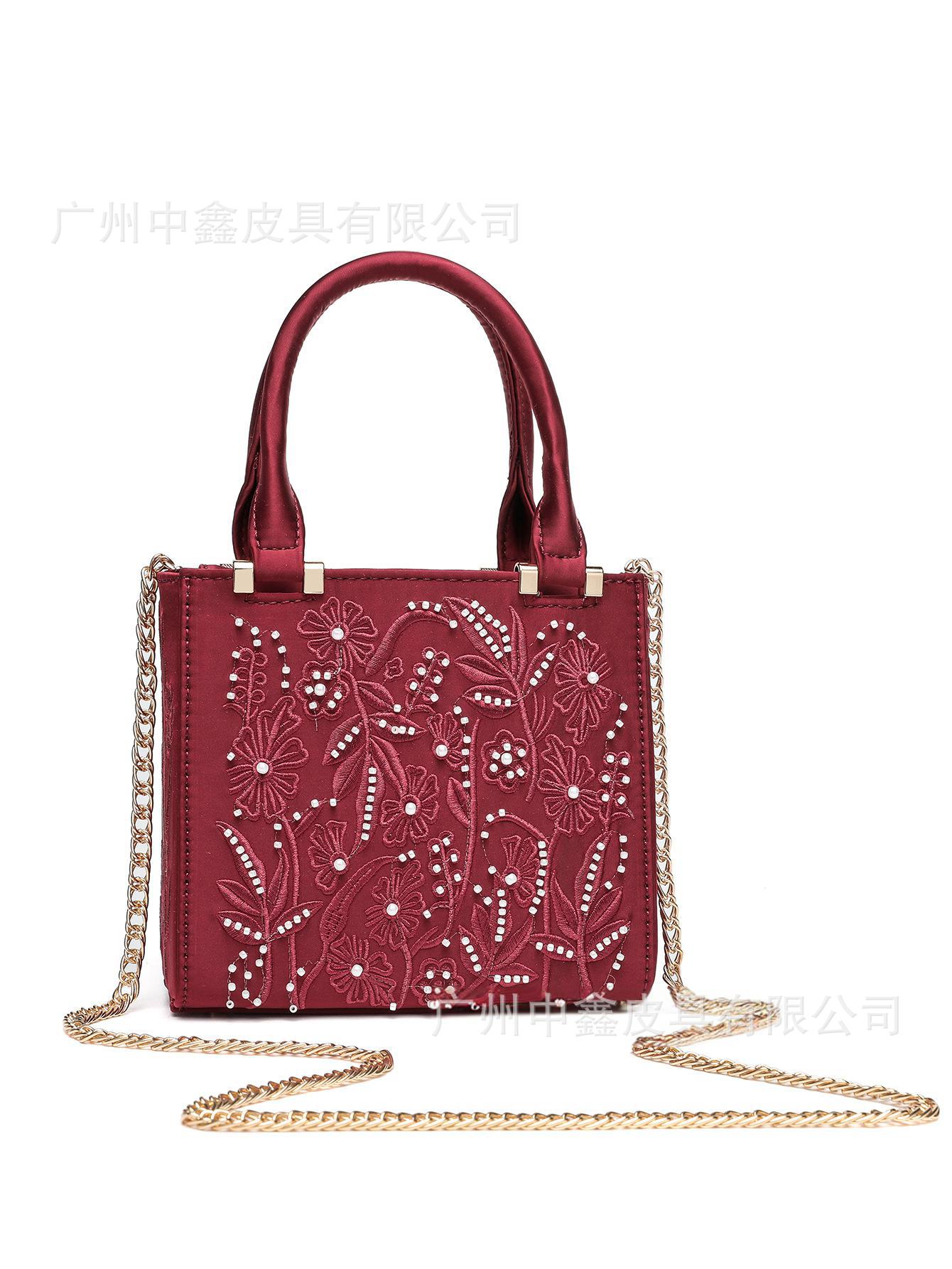 2025 Pearl Embroidered Fashion Silk Satin Texture Handbag Cheongsam Banquet Bag Clutch Bag Chain Bag Shoulder Bag Women
