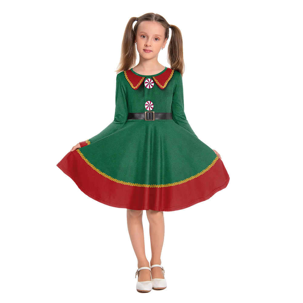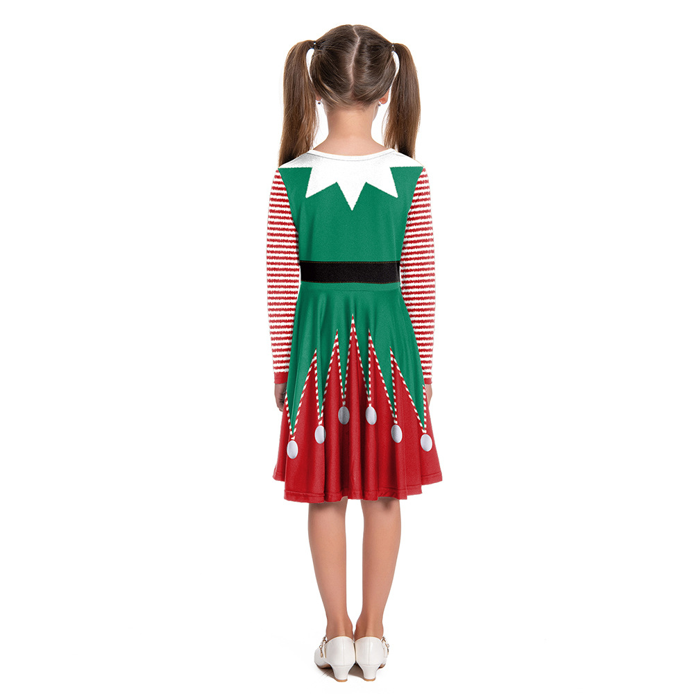 Children's New Autum Christmas Clothing Cross-Border Digital Printing European and American Girls' Long-Sleeved Christmas Fashion Dresses