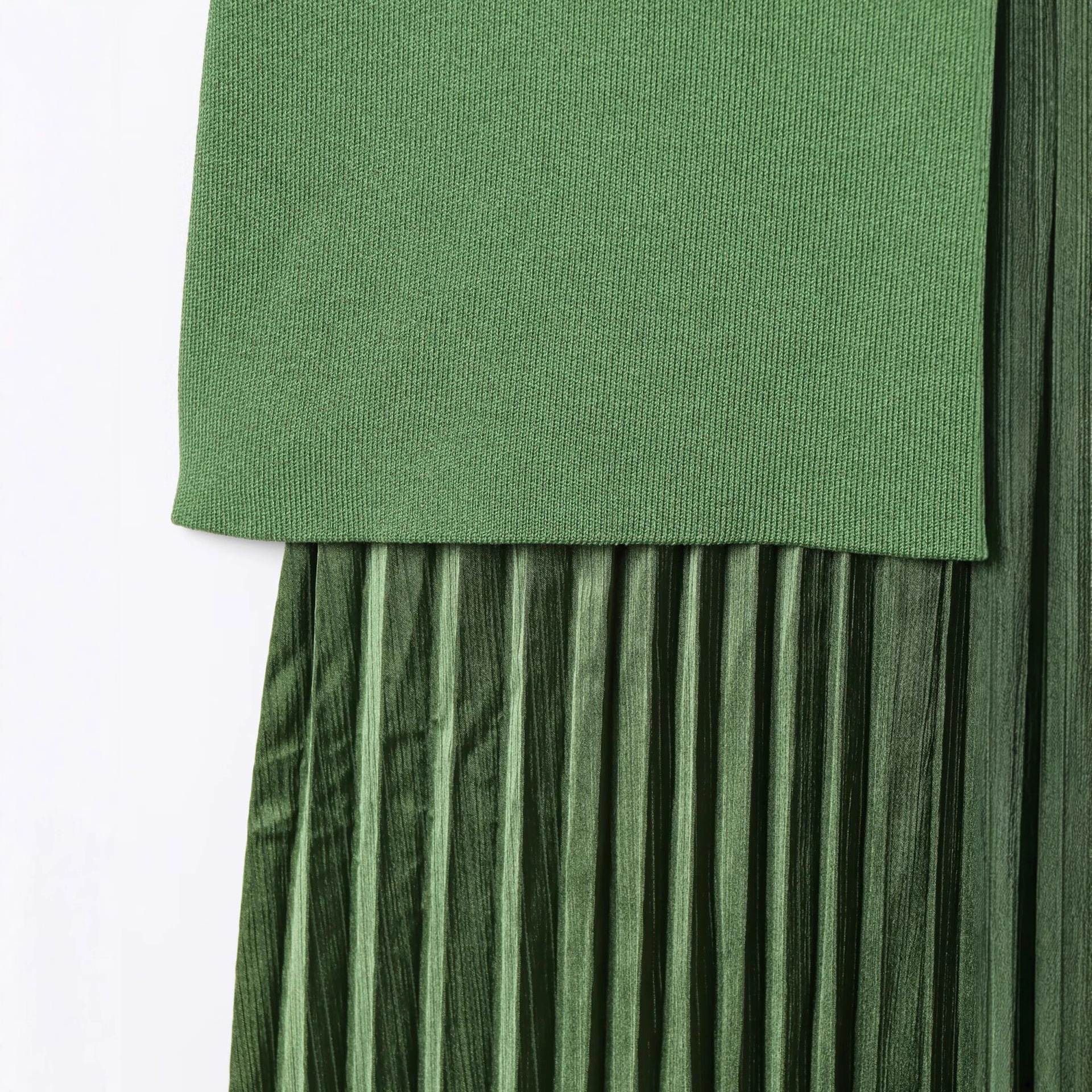 Zg Export Wholesale 2025 New Summer Women's European and American Style Versatile Slim Knitted Small Pleated Splicing Dress