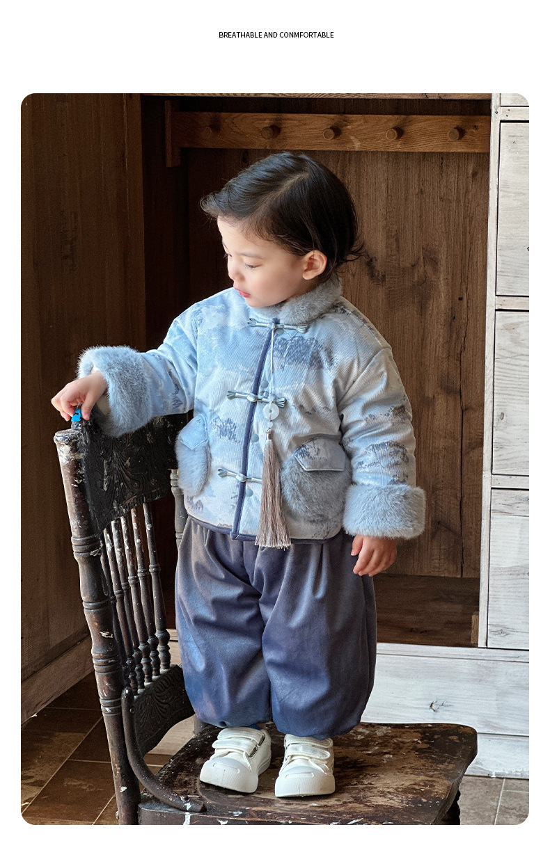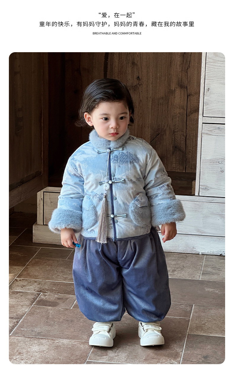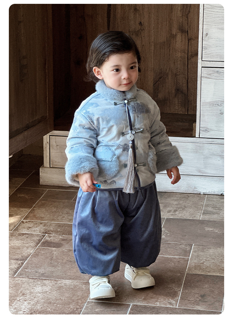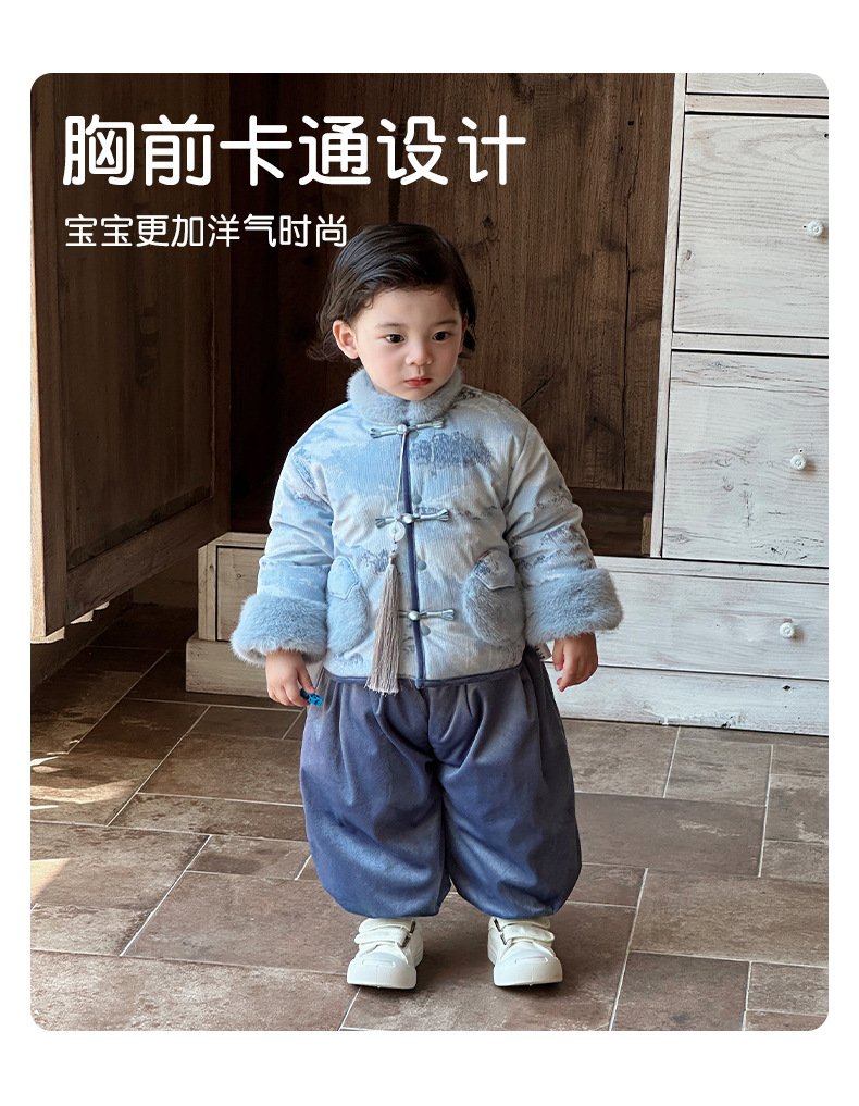 Infant One-Year-Old Dress, Baby Boy's Winter Clothing, Chinese Style Tang Suit Jumpsuit, Thickeneded Warm Outing Clothing, Birthday Clothing