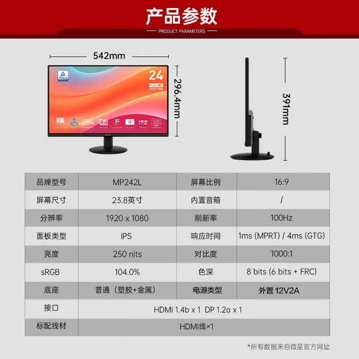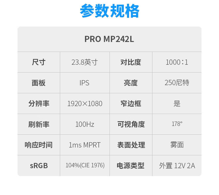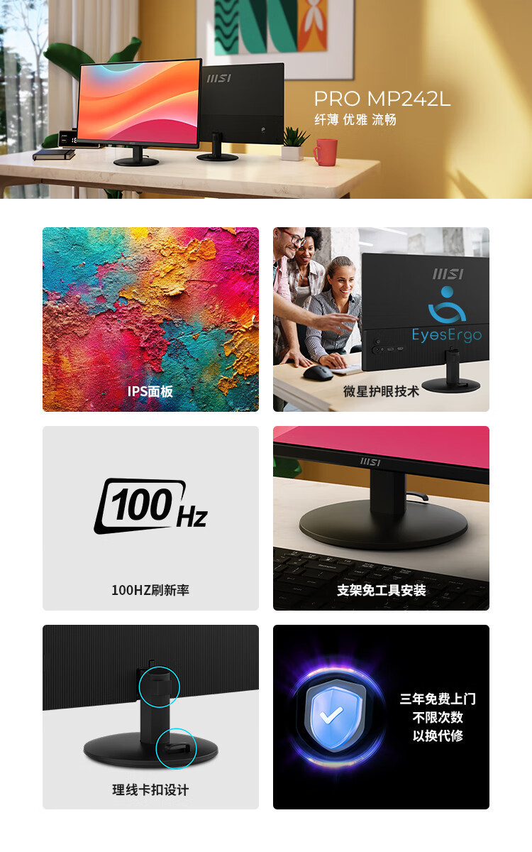 Msi Mp242L 23.8-Inch 1K100Hz Commercial Computer Office Lcd Monitor Screen Rheinland Certification