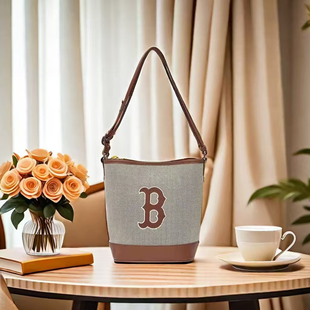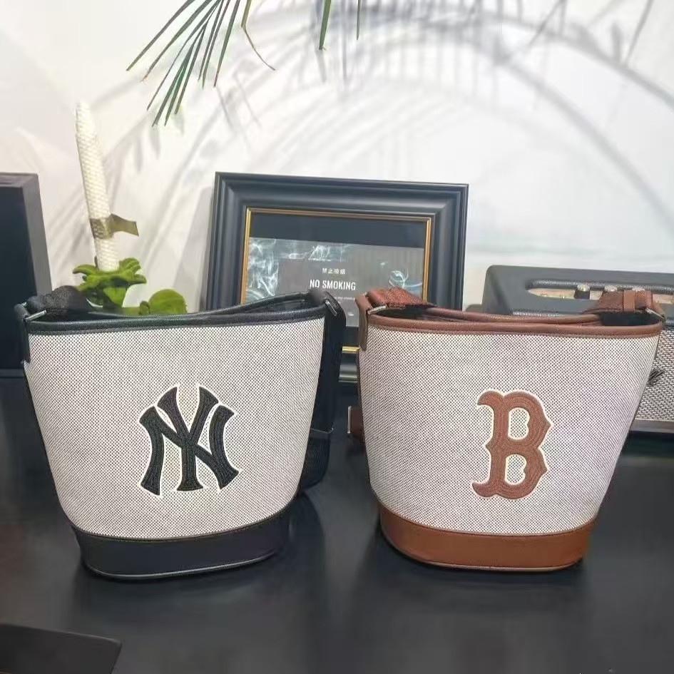 Mlb Canvas Bucket 2024 Autumn and Winter Classic Embroider Ny Large Capacity Fashionable One-Shoulder Crossbody Satchel Commuter Women's Bag