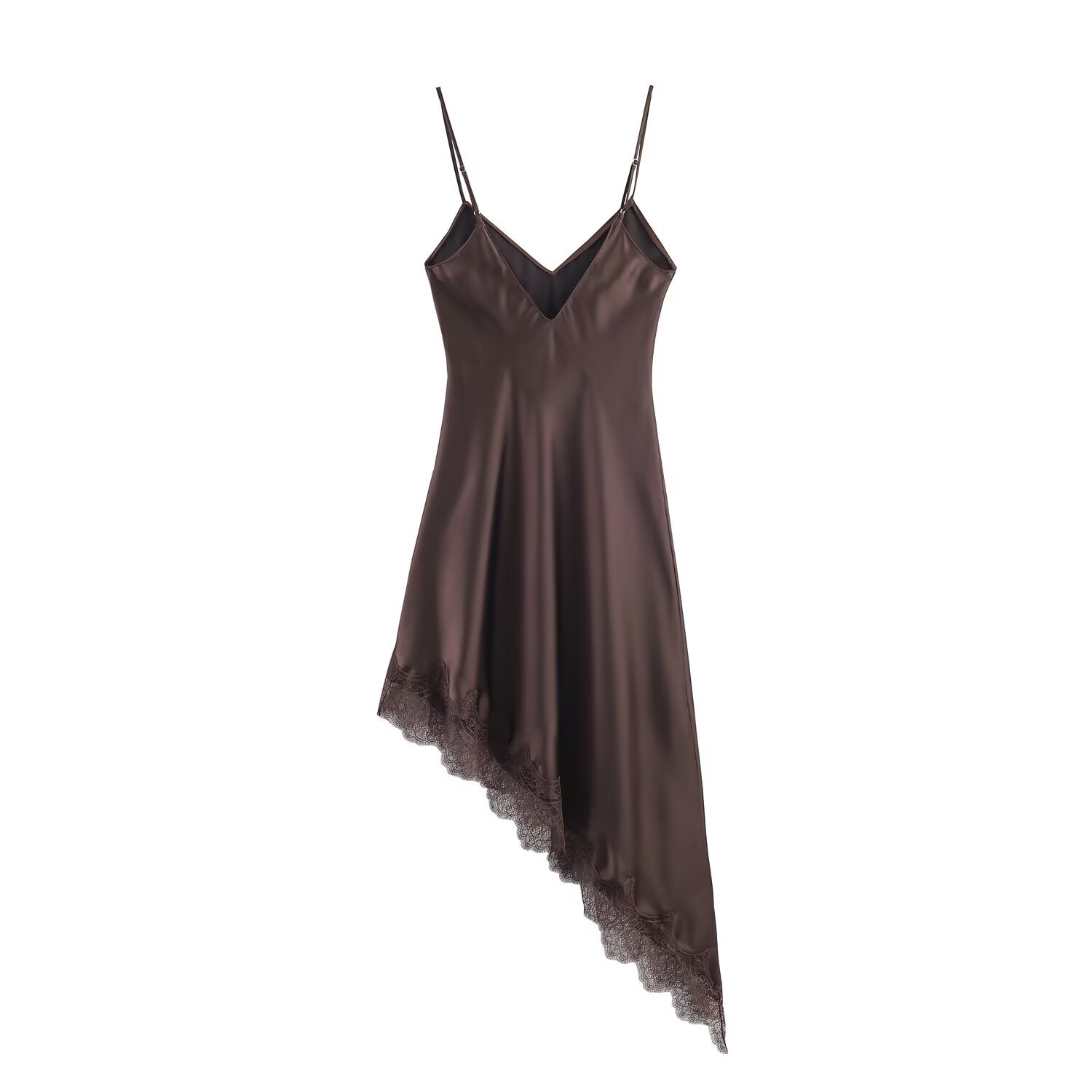 Pb&Za Women's 2025 Autum New Sexy Lace Detail Silk Satin Texture Suspender Dress 8827332