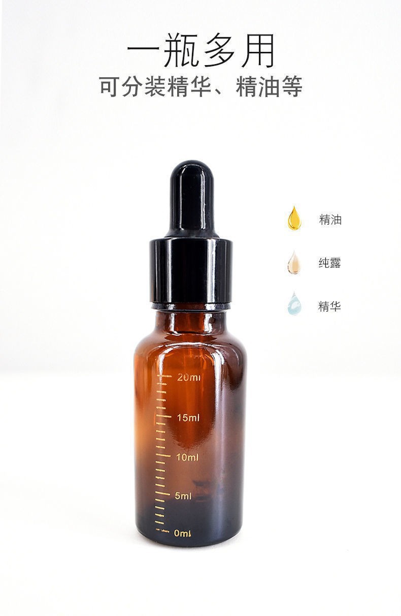 产品名称:滴管精油瓶-经典款玻璃瓶颜色:茶色玻璃瓶容量:5ml 10ml 15ml 20ml 30ml 50ml 100ml滴管:圆头滴管无刻度用途:适用于分装精油、精华液、香水。纯露等。特点:避光玻璃瓶身,玻璃滴管可重复循环利用。量大咨询客服,价格可以优惠!!!链接拍下后联系客服修改运费