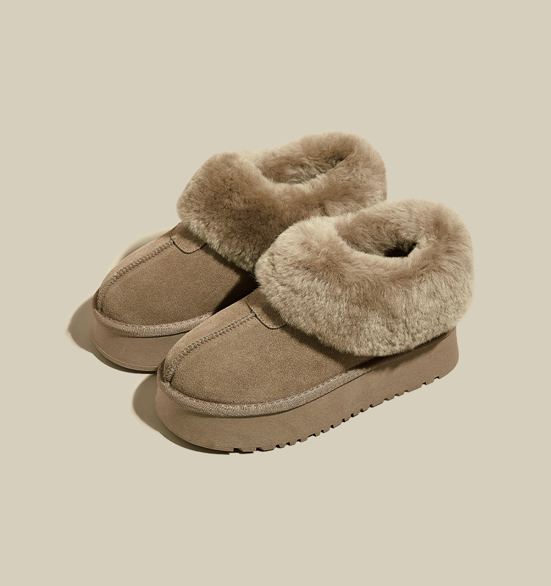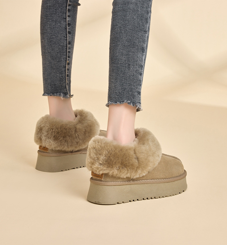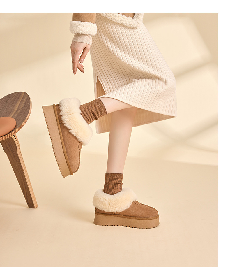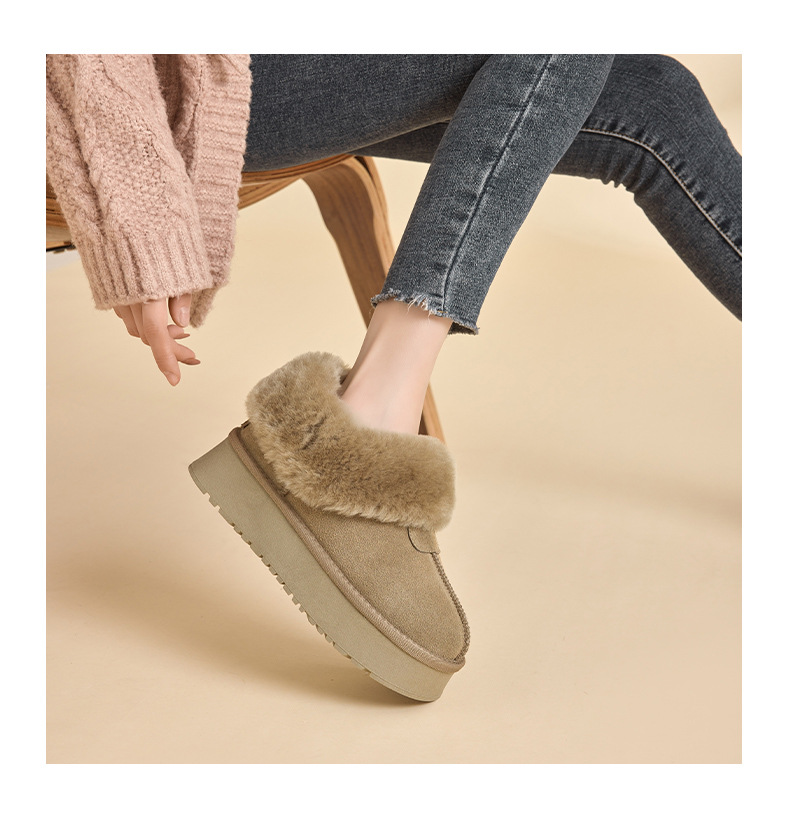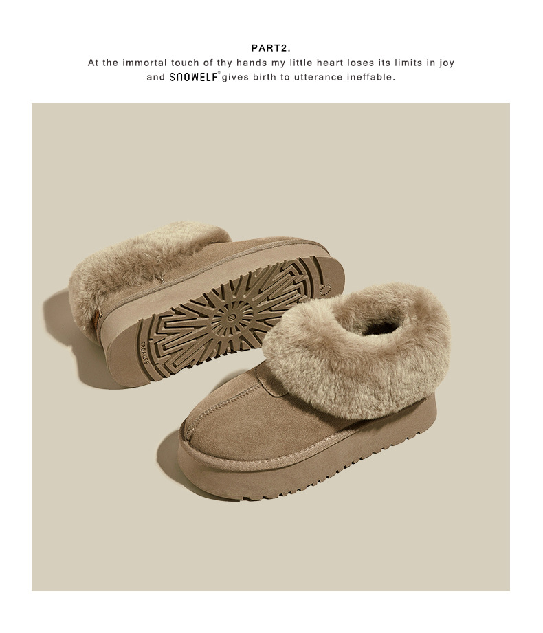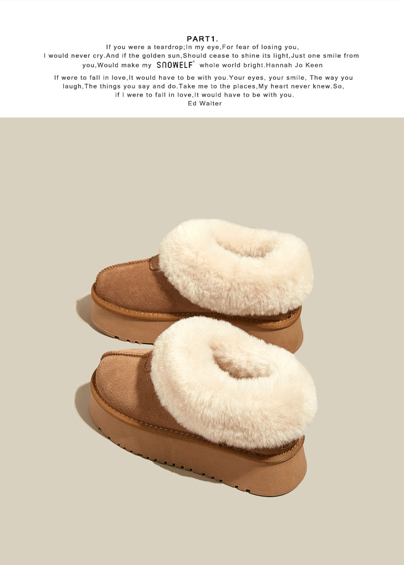 Thick-Soled Fur All-In-One Snow Boots for Women, Winter Velvet Cotton Shoes, 25 New Outer Wear, One-Legged Wool Fur Bread Shoes