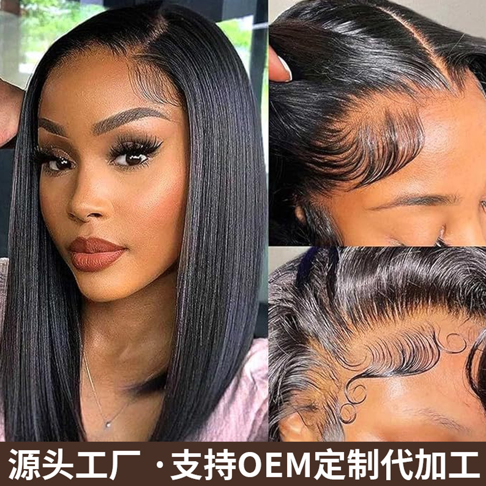 Black Bob Head 13*41B Bob Head Human Hair Female Wig Full Head Cover Cross-Border Bob180 Density