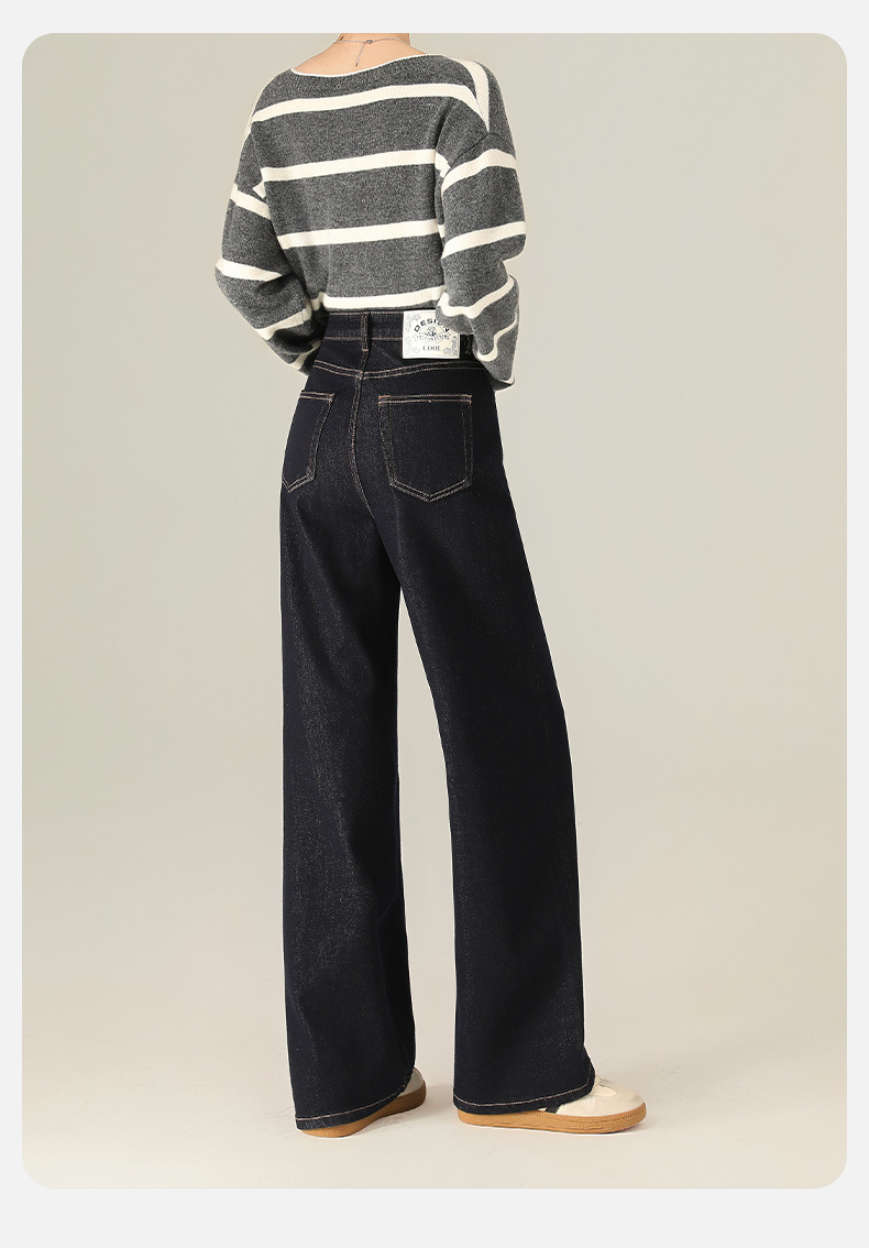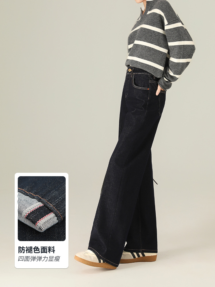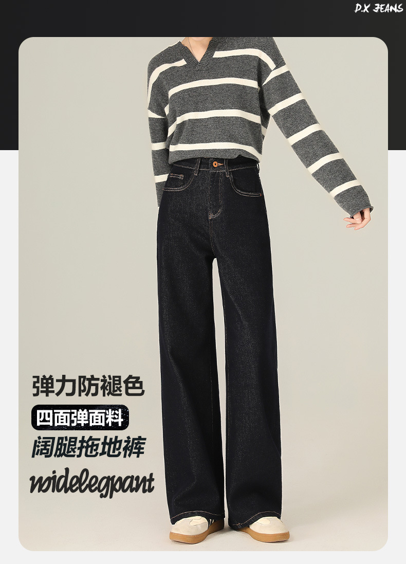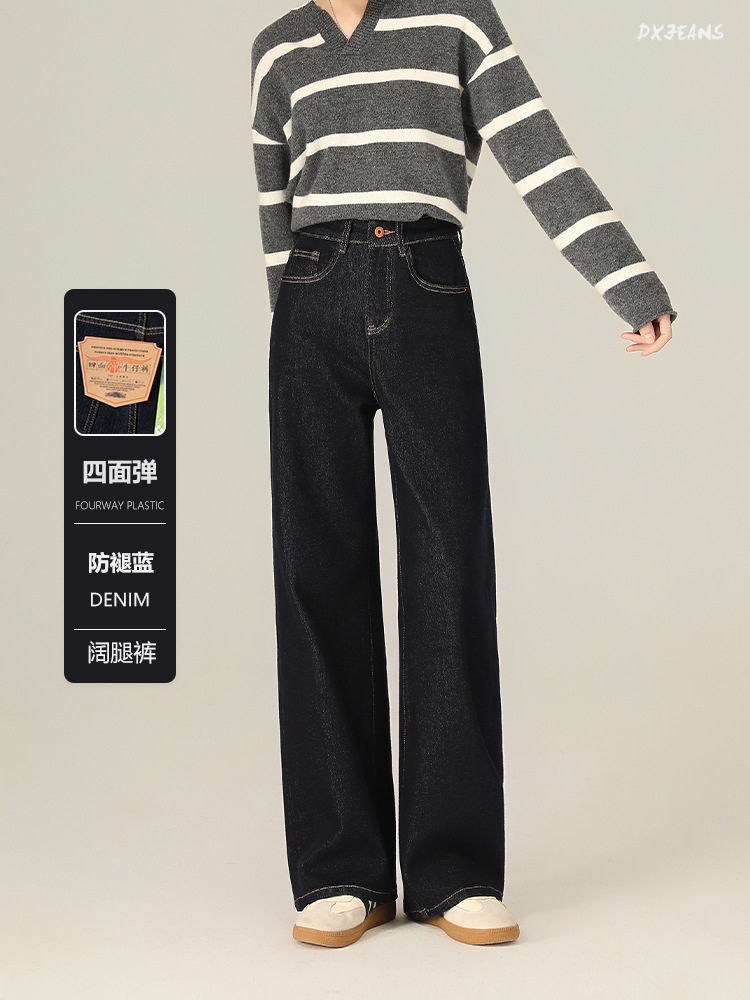 Four-Way Stretch Autumn and Winter Anti-Fading Denim Wide-Leg Pants Elastic Slimming High-Weight High-Quality Straight-Leg Floor-Length Jeans for Women