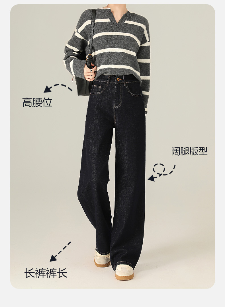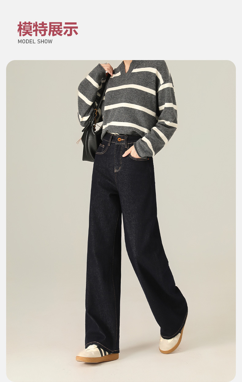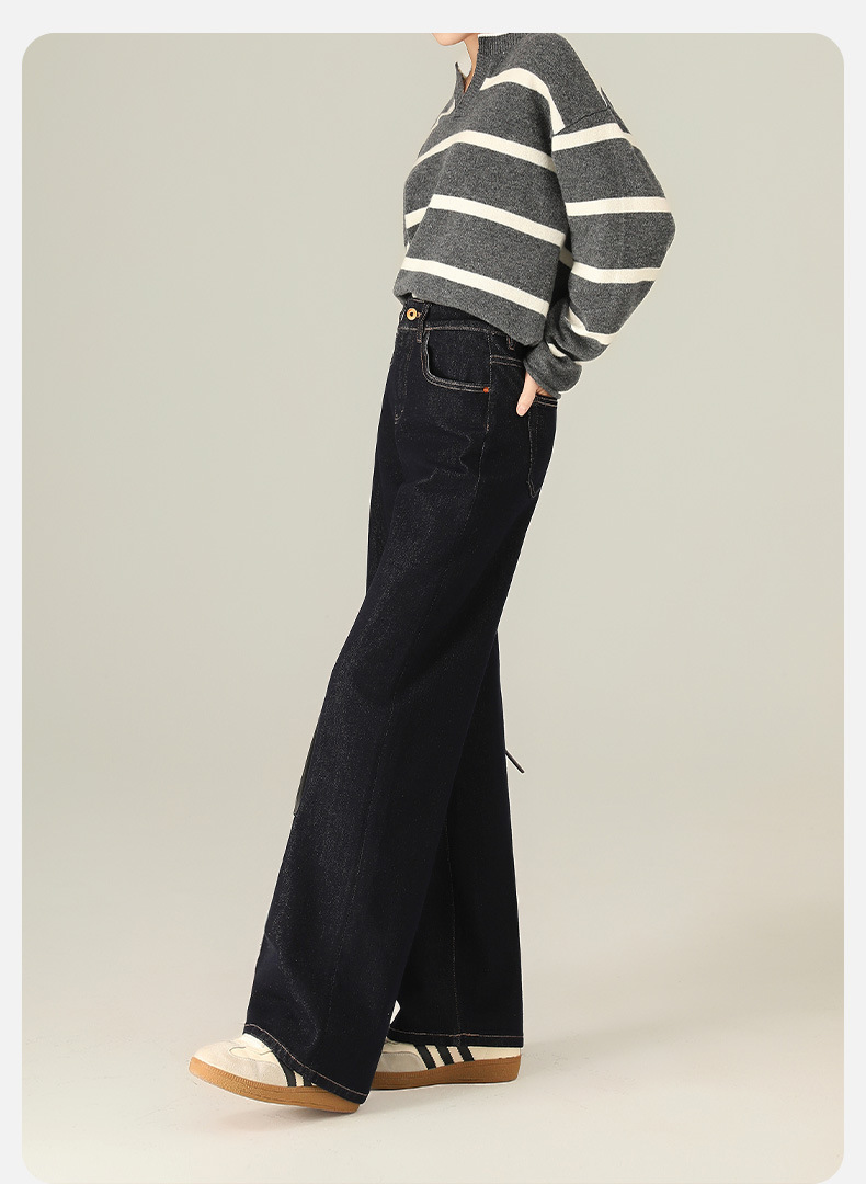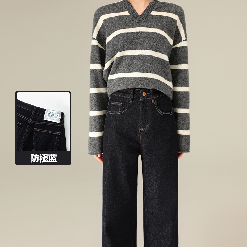 Four-Way Stretch Autumn and Winter Anti-Fading Denim Wide-Leg Pants Elastic Slimming High-Weight High-Quality Straight-Leg Floor-Length Jeans for Women