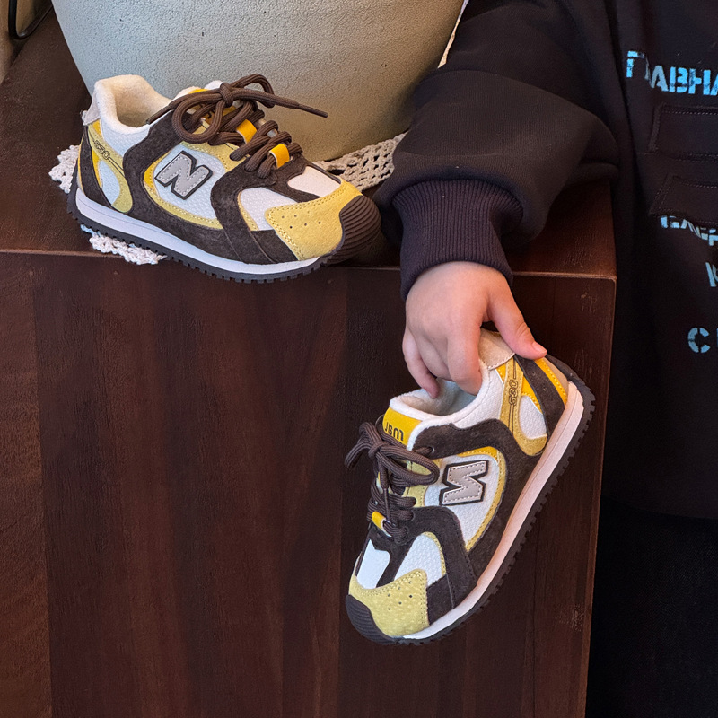 儿童德训鞋2025秋冬真皮潮牌百搭休闲防滑加绒阿甘鞋男女童老爹鞋