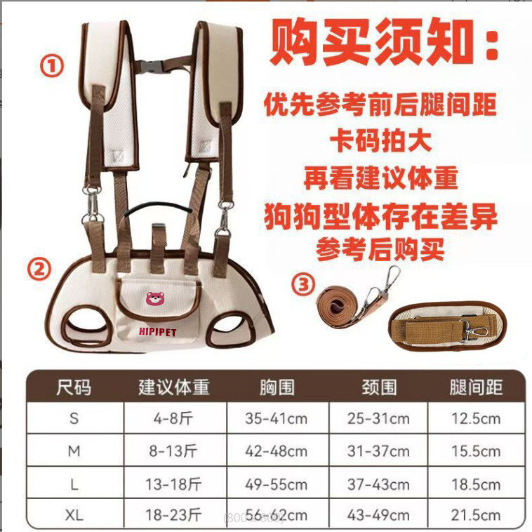 One-shoulder model - lomi brown - s size [applicable to 2-4kg ] wear horizontally to protect your pet’s bones