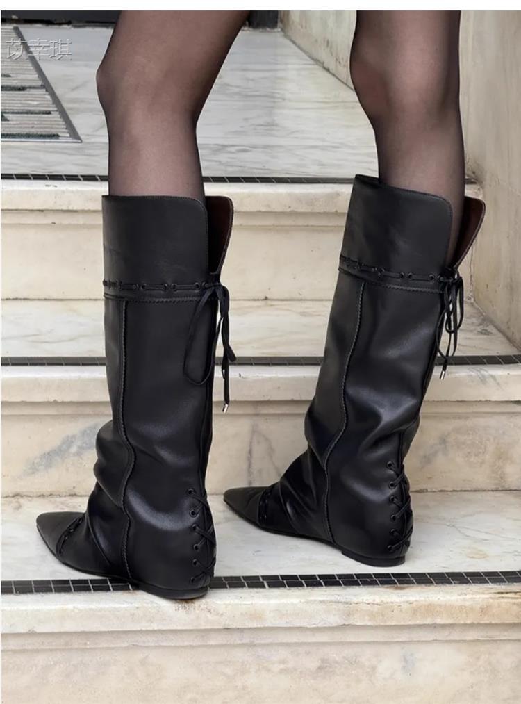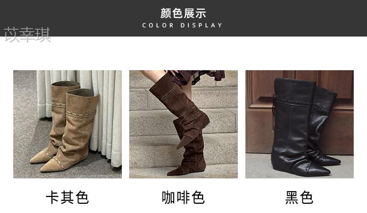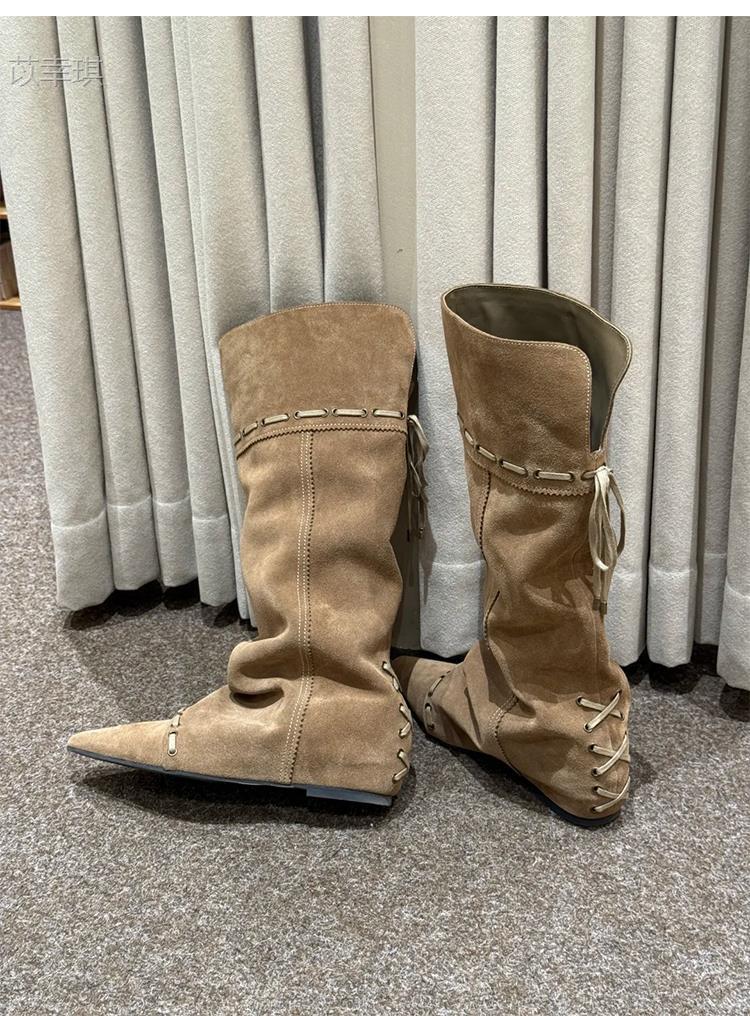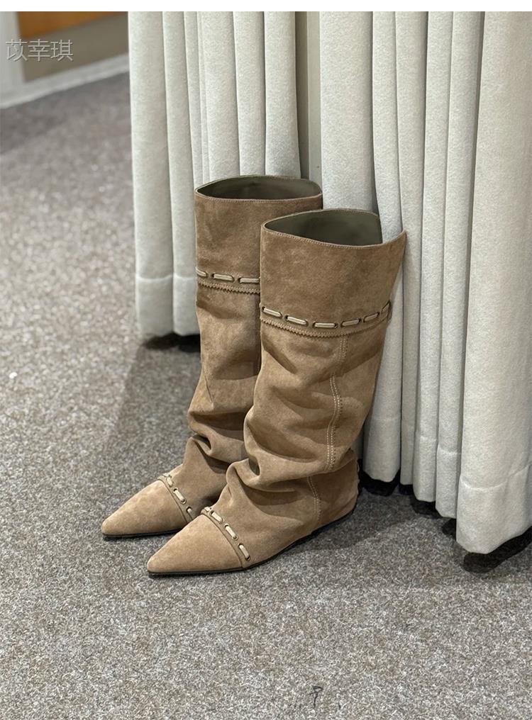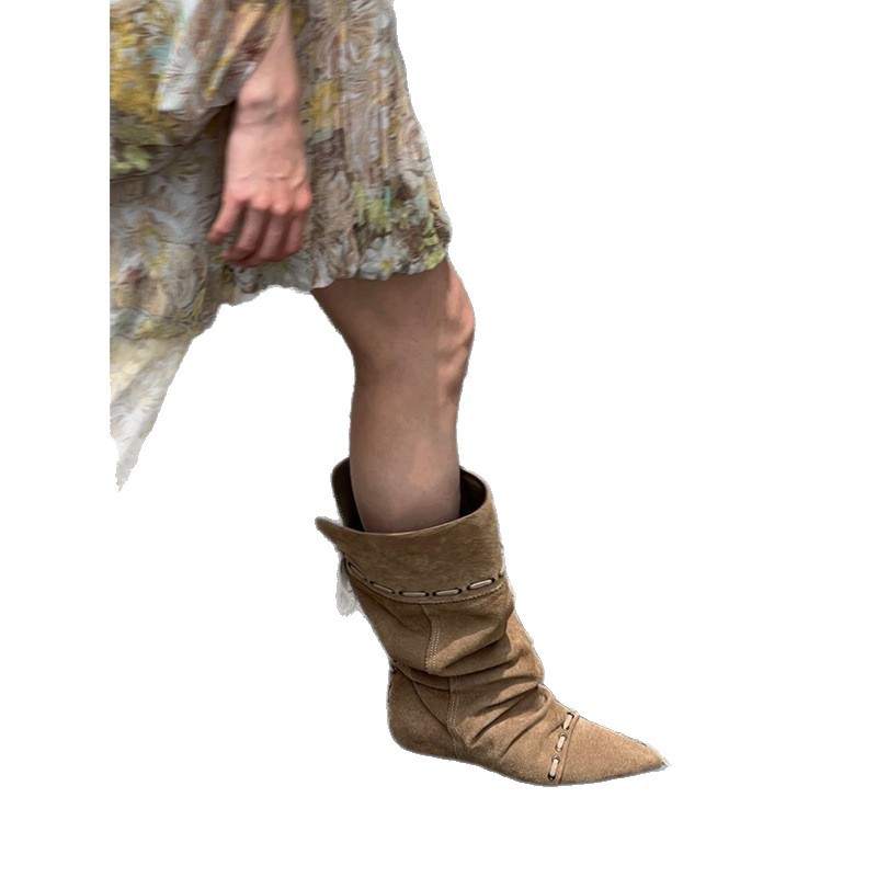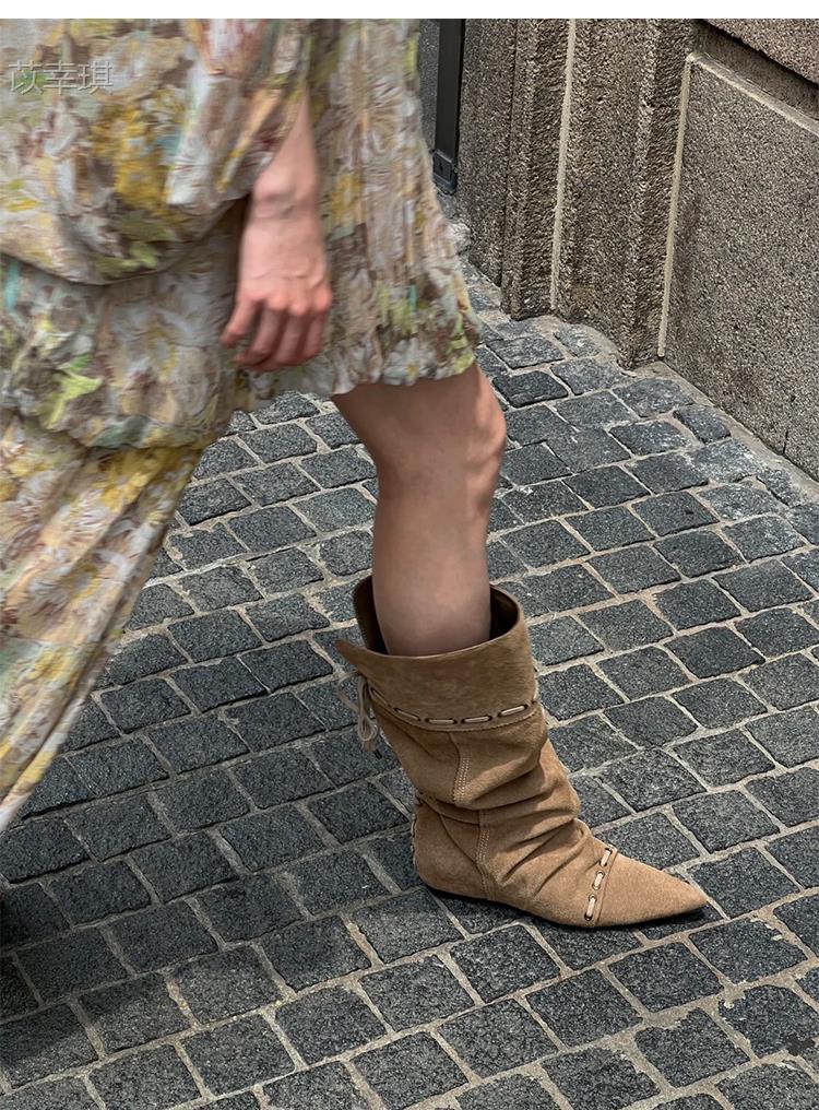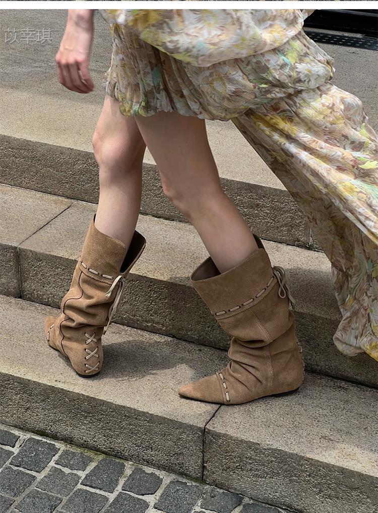 Sheepskin Version Two-Wear Pointed Toe Wide Boots Egyptian Women's Boots Genuine Leather High-Top Western Cowboy Boots Women's Inner Heightening Boots