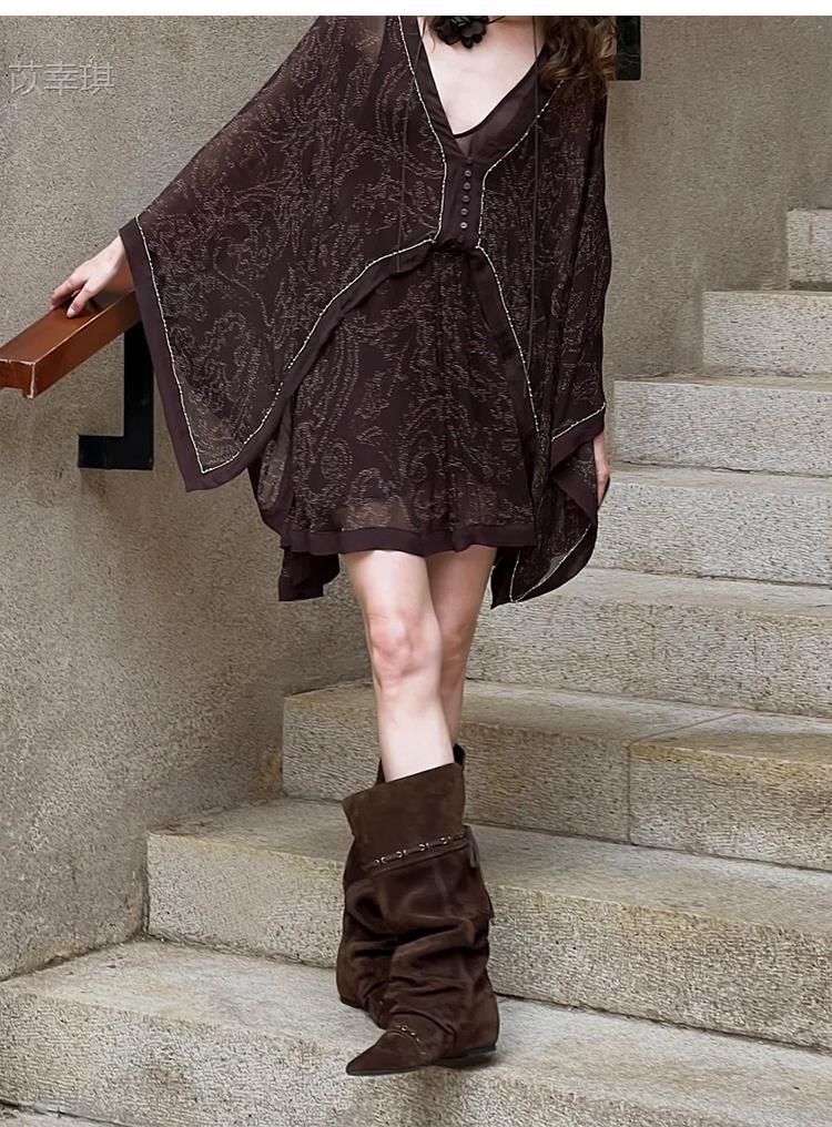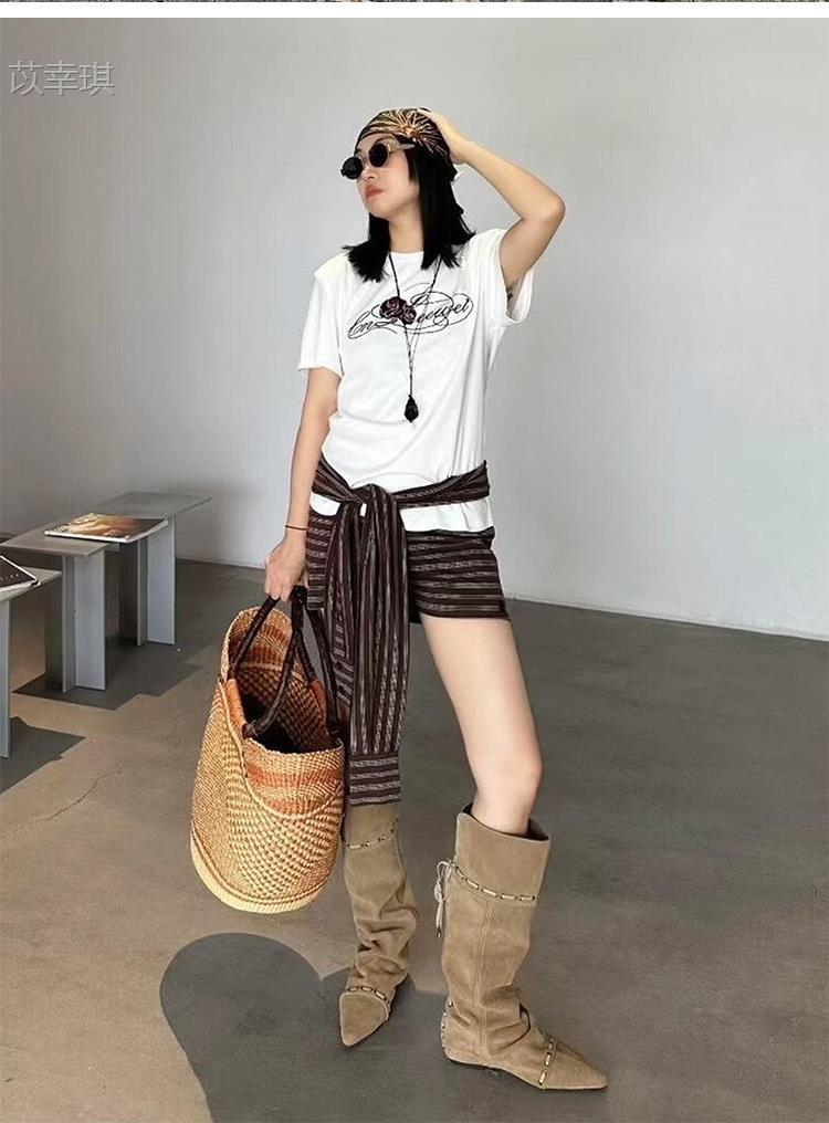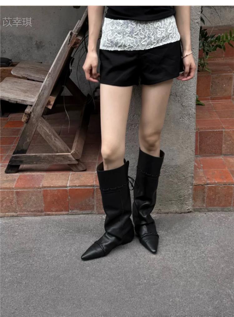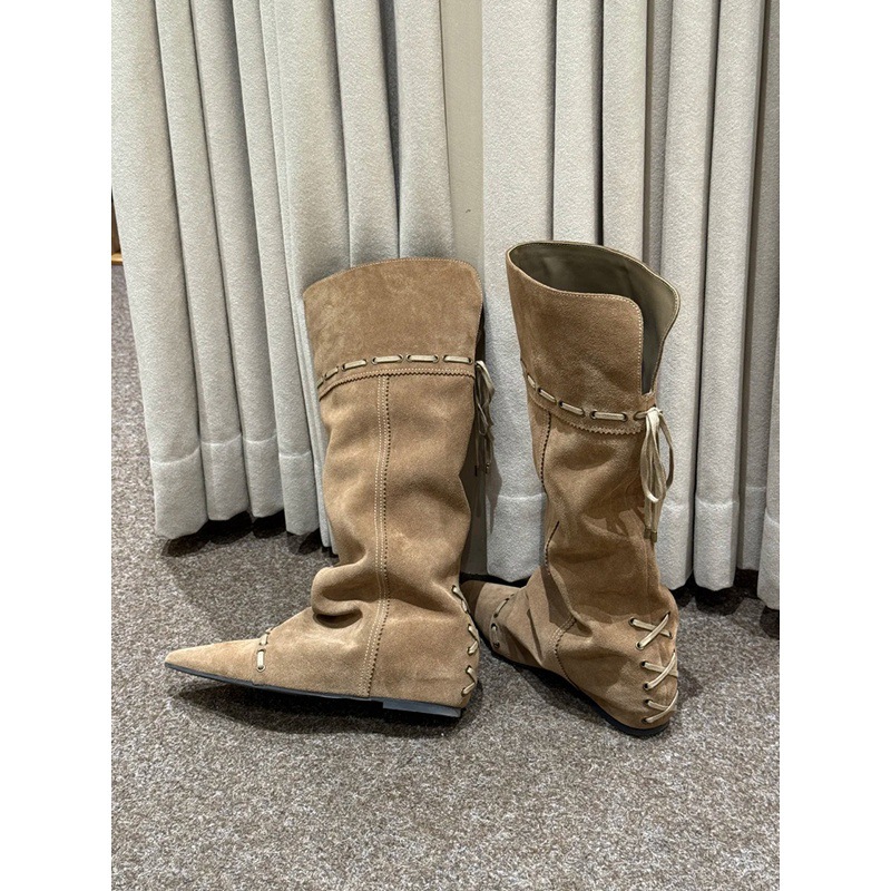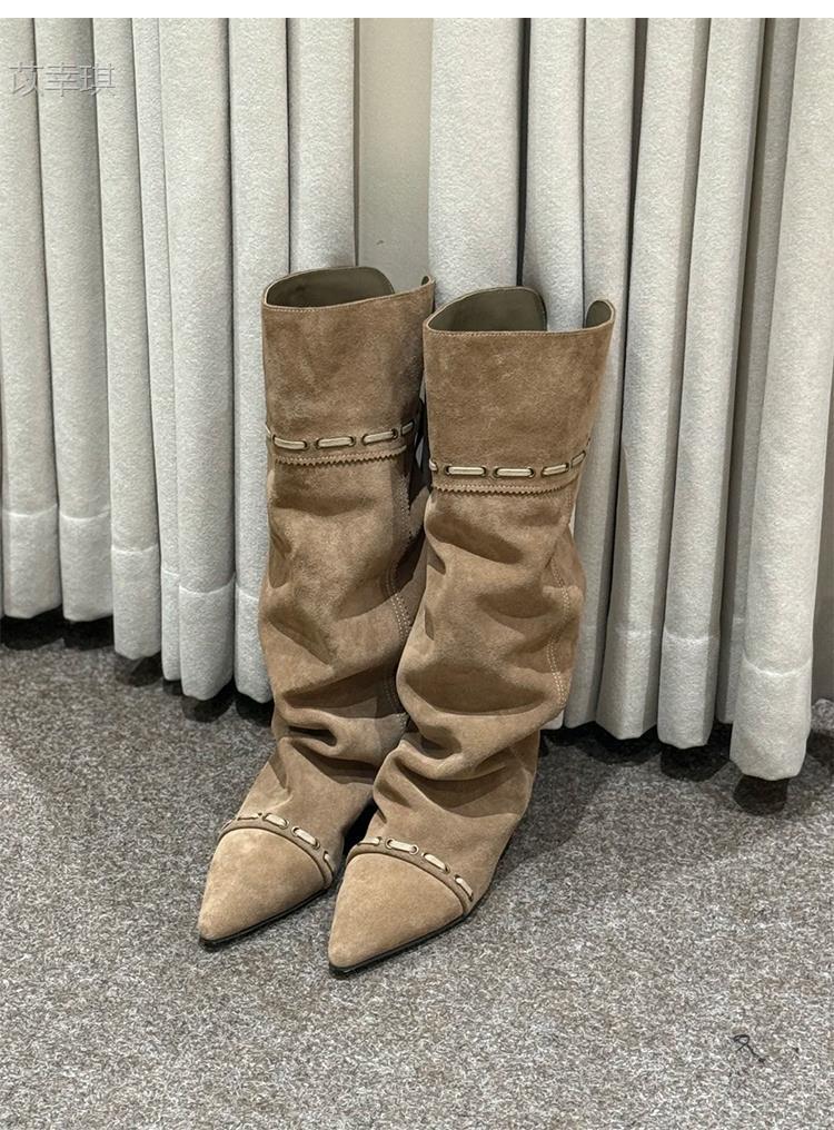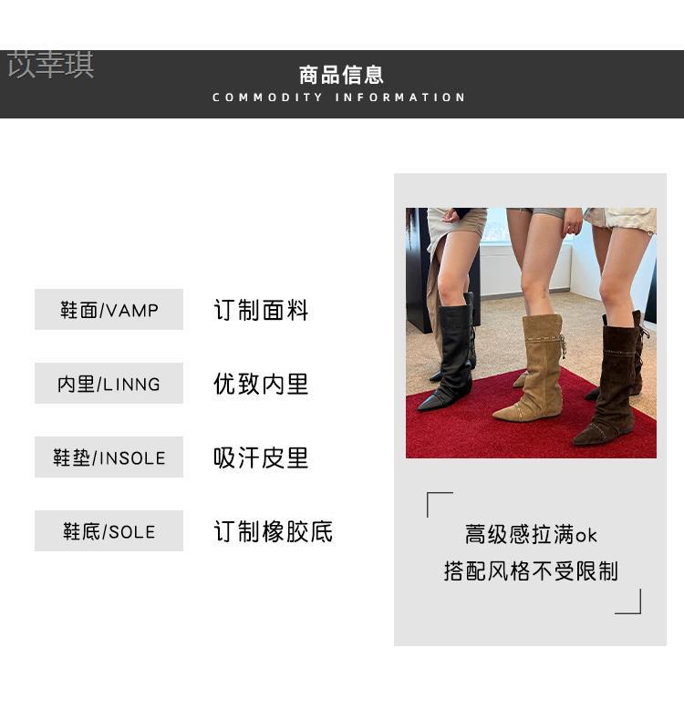 Sheepskin Version Two-Wear Pointed Toe Wide Boots Egyptian Women's Boots Genuine Leather High-Top Western Cowboy Boots Women's Inner Heightening Boots