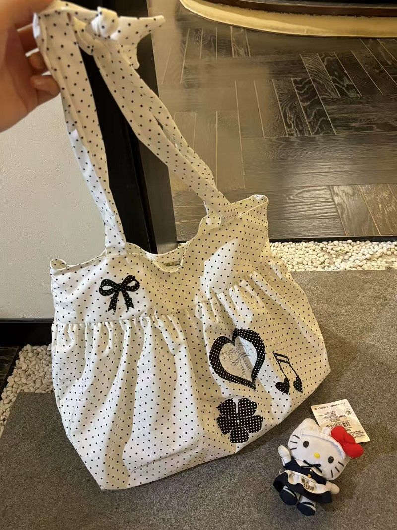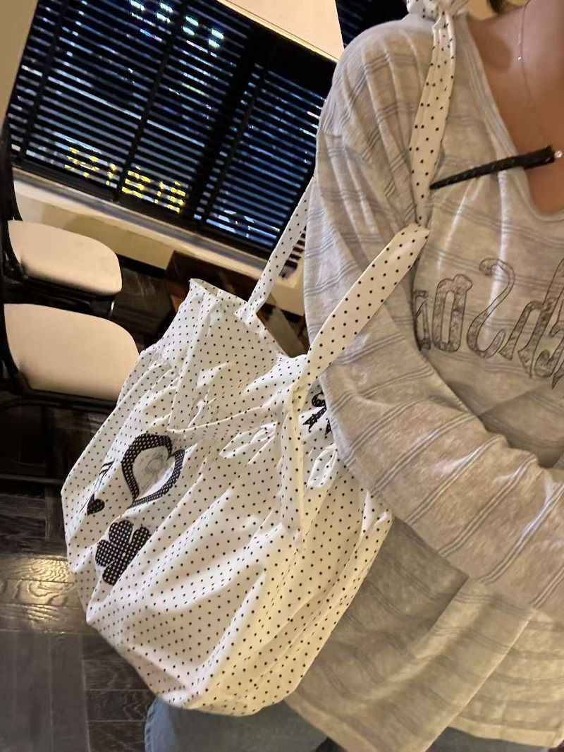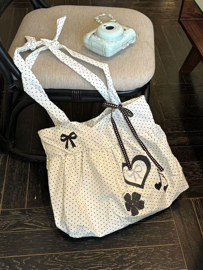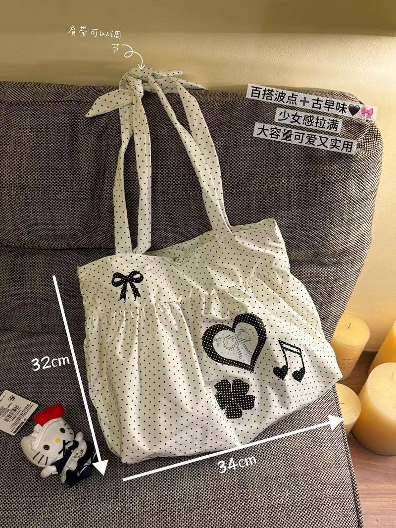 New Cute and Versatile Polka Dot Love Printed Skirt Large Capacity Tote Bag Single Shoulder Commuter Bag Girly Heart