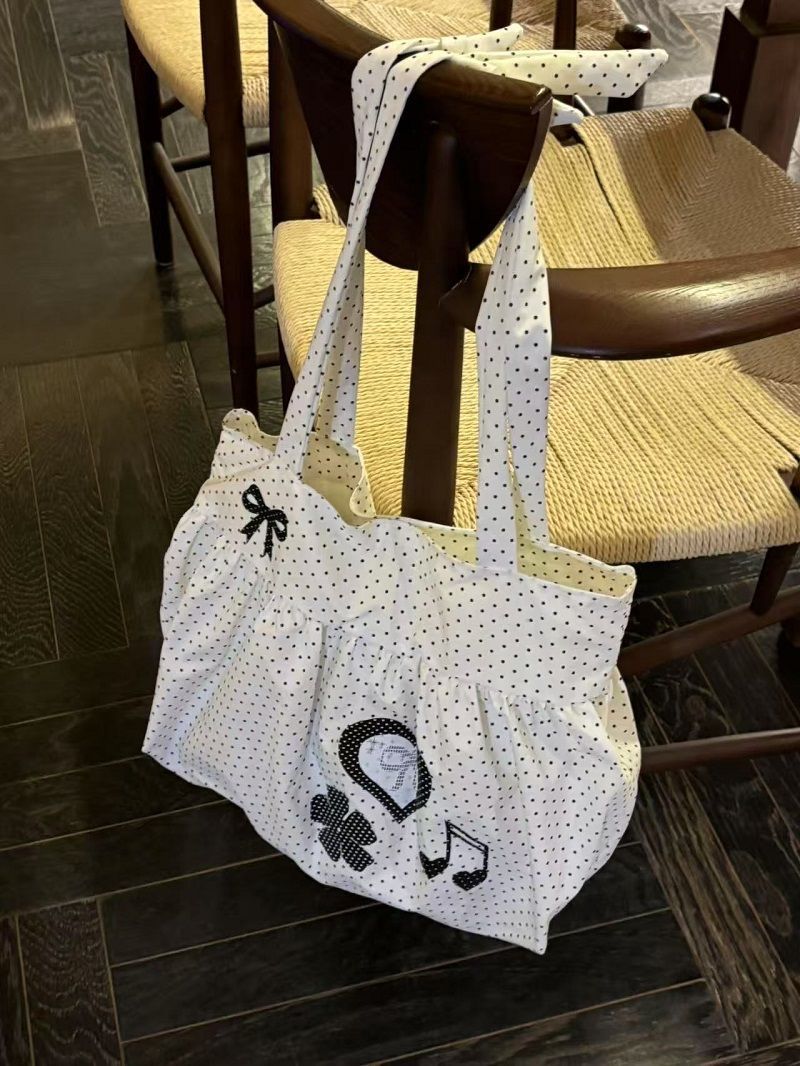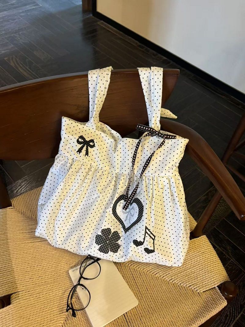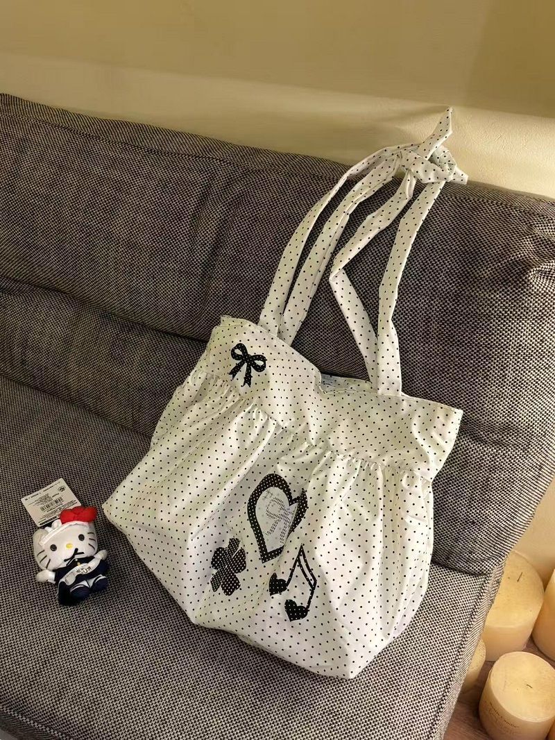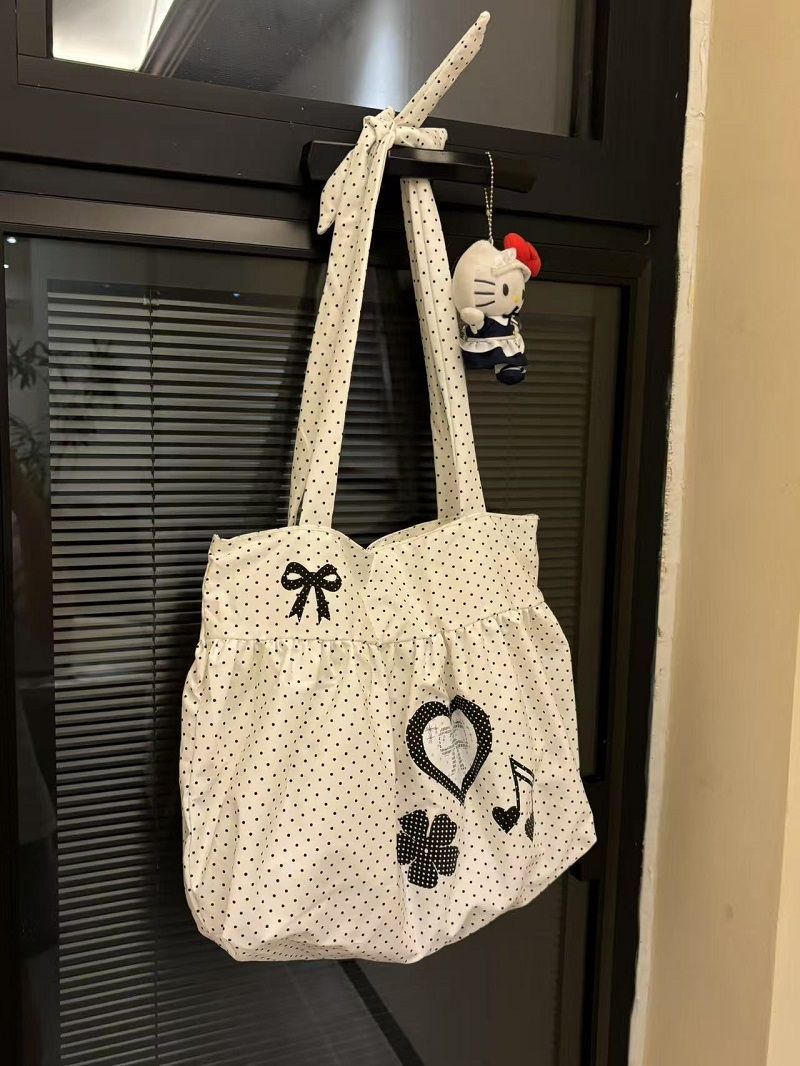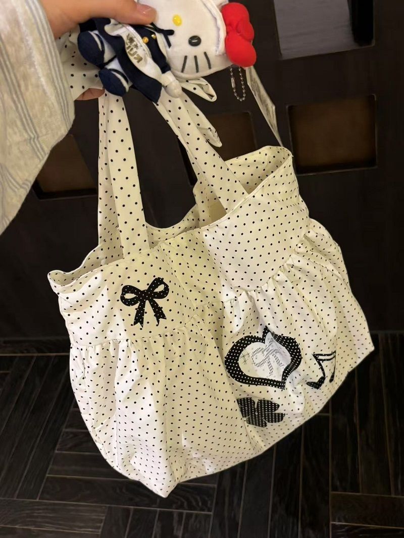 New Cute and Versatile Polka Dot Love Printed Skirt Large Capacity Tote Bag Single Shoulder Commuter Bag Girly Heart