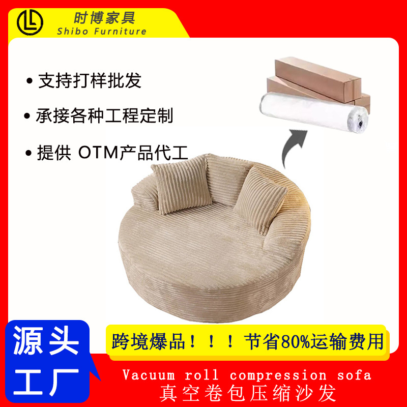 Cross-Border Export Compressed Sofa Full Sponge Simple Round Fabric Single Sofa Chair Living Room Small Apartment Lounge Chair