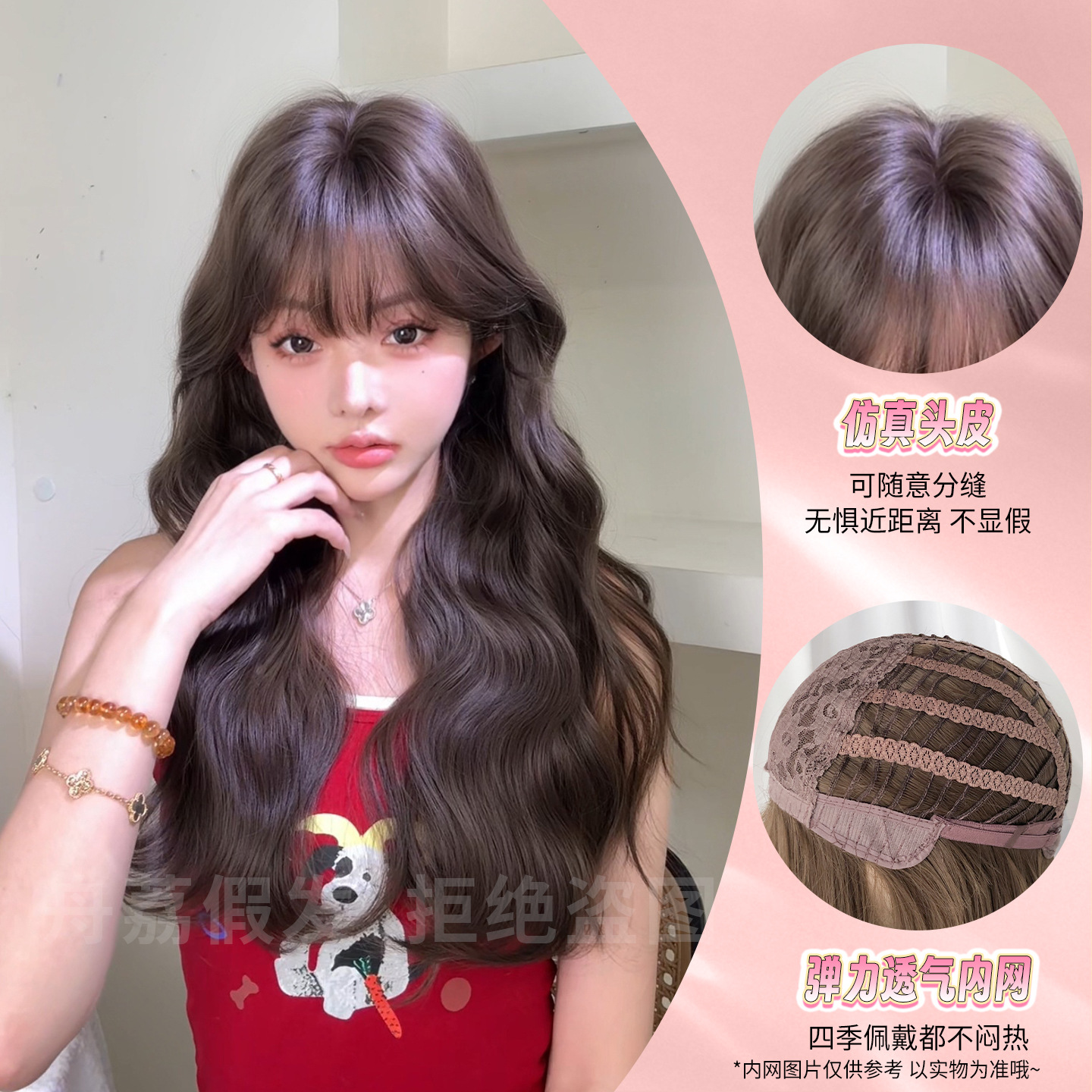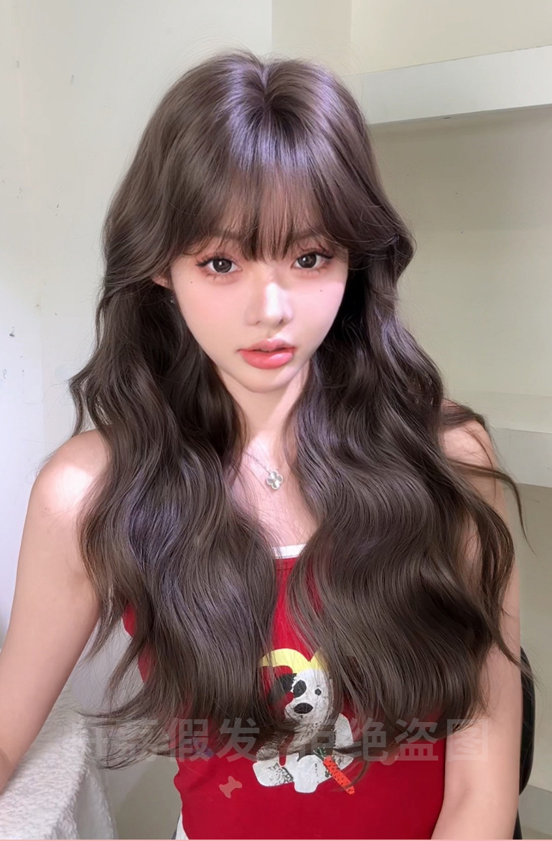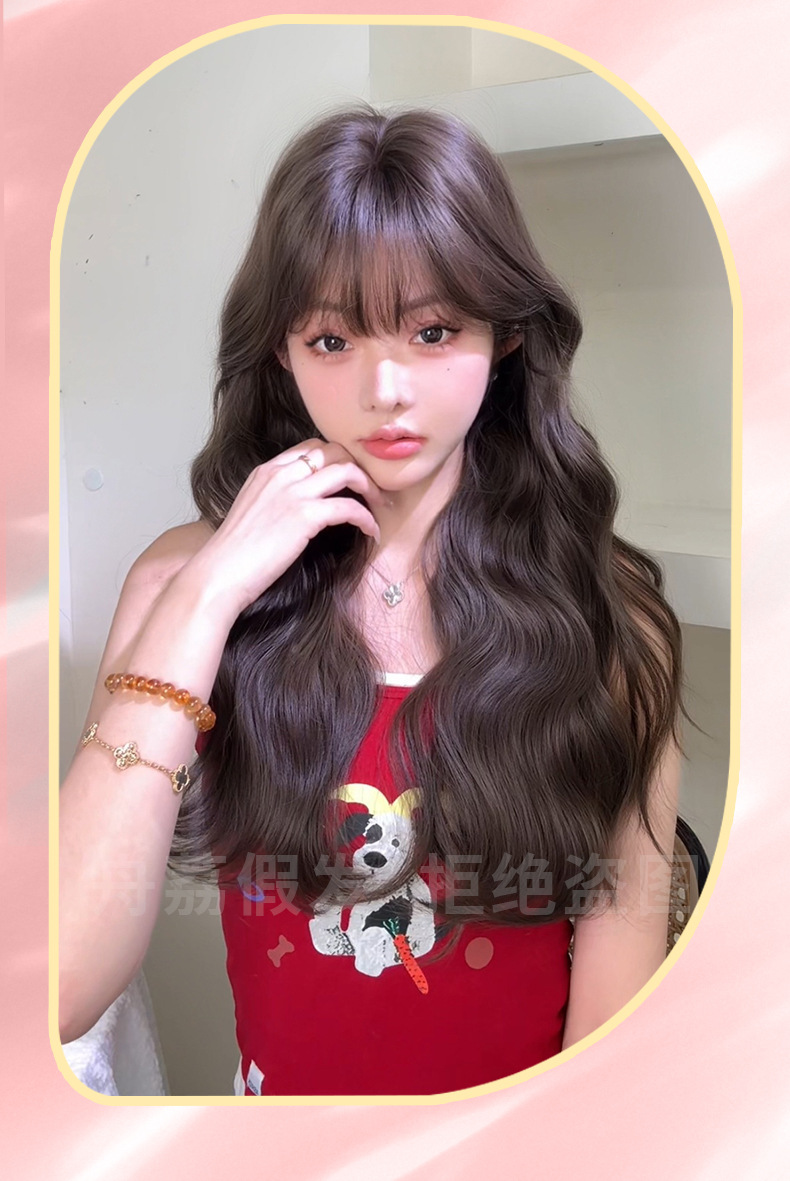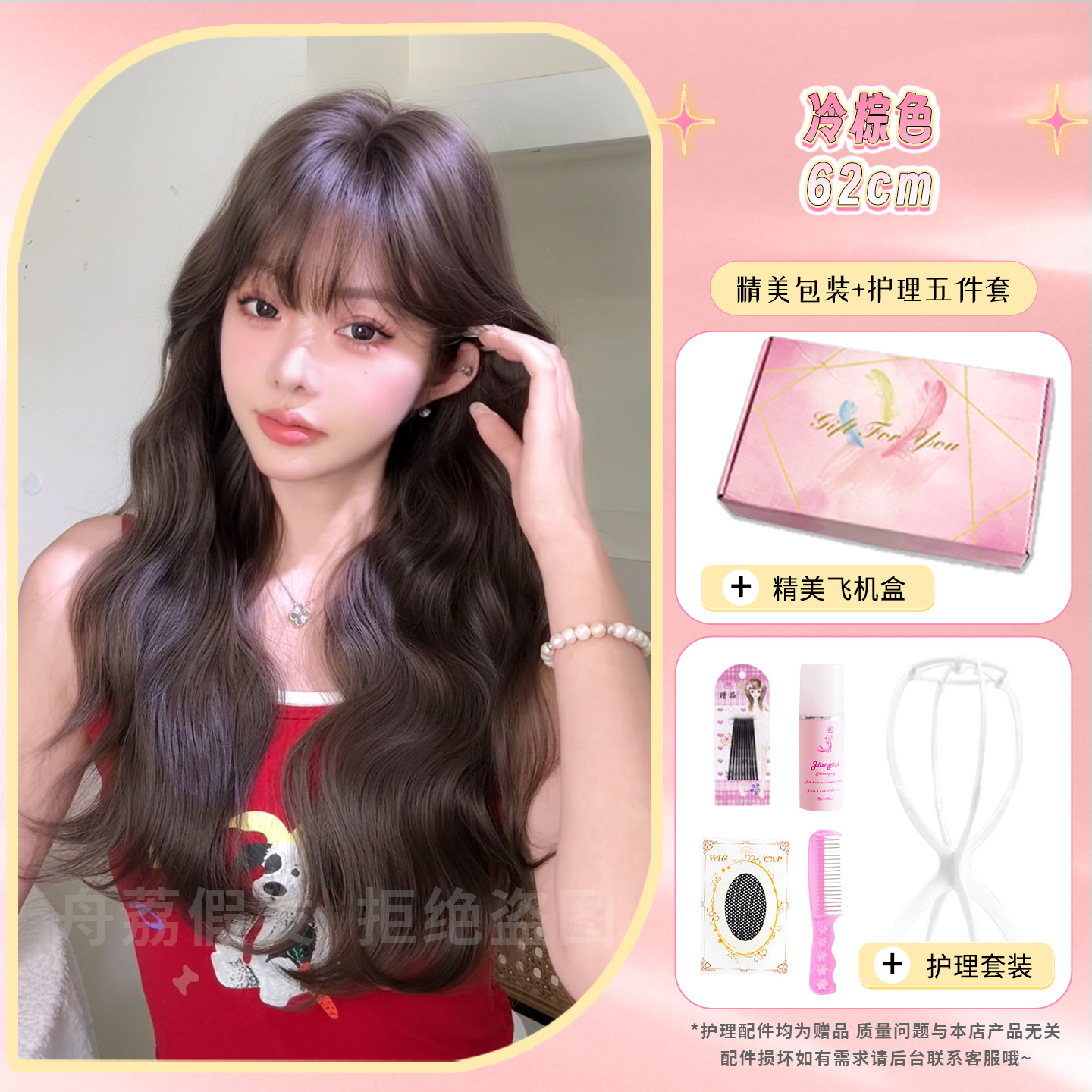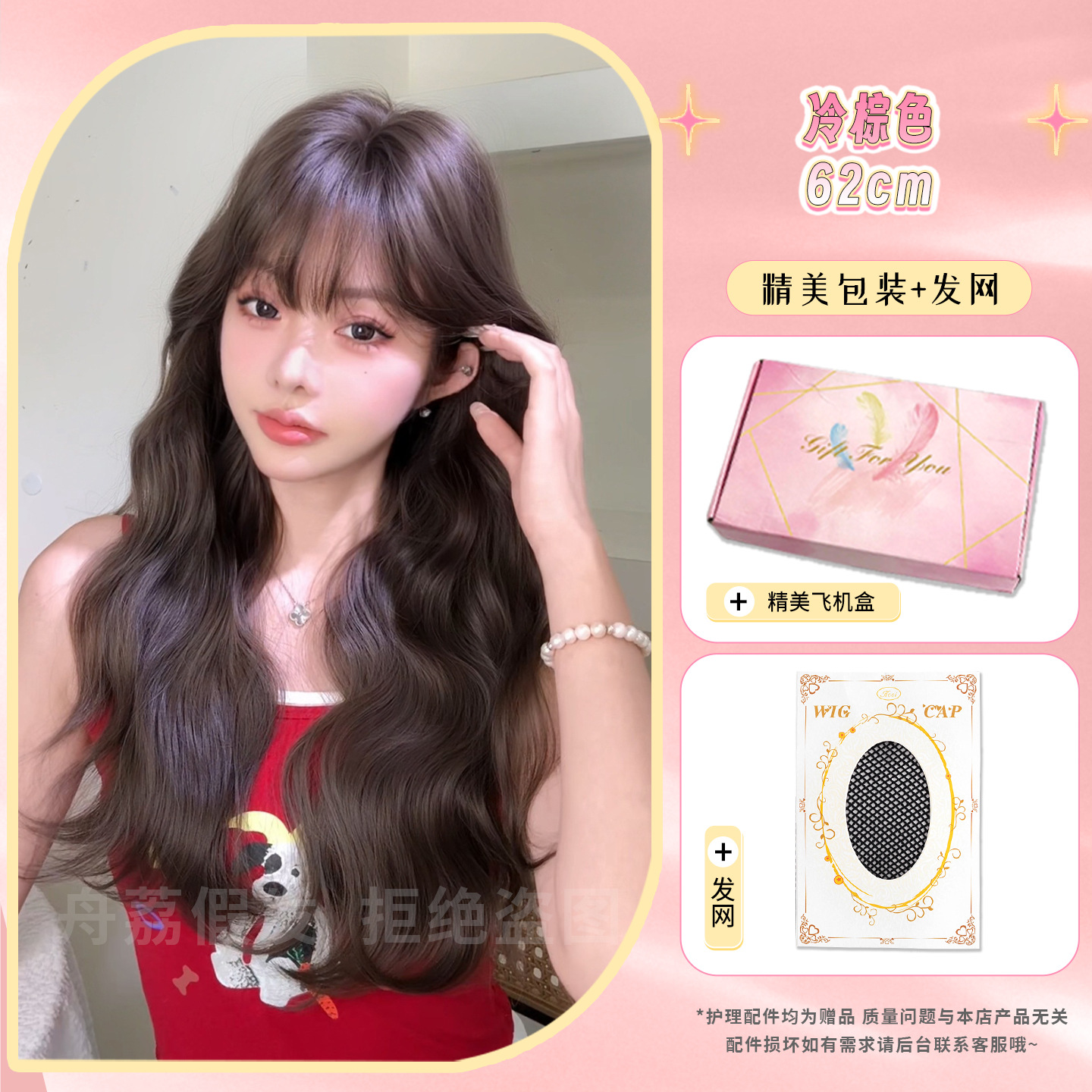 Zhouli Wig Cold Brown Long Curly Hair Sweet and Gentle Atmosphere Fluffy Natural Water Ripple Female Full Headgear Wholesale