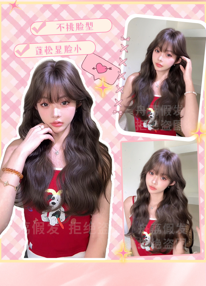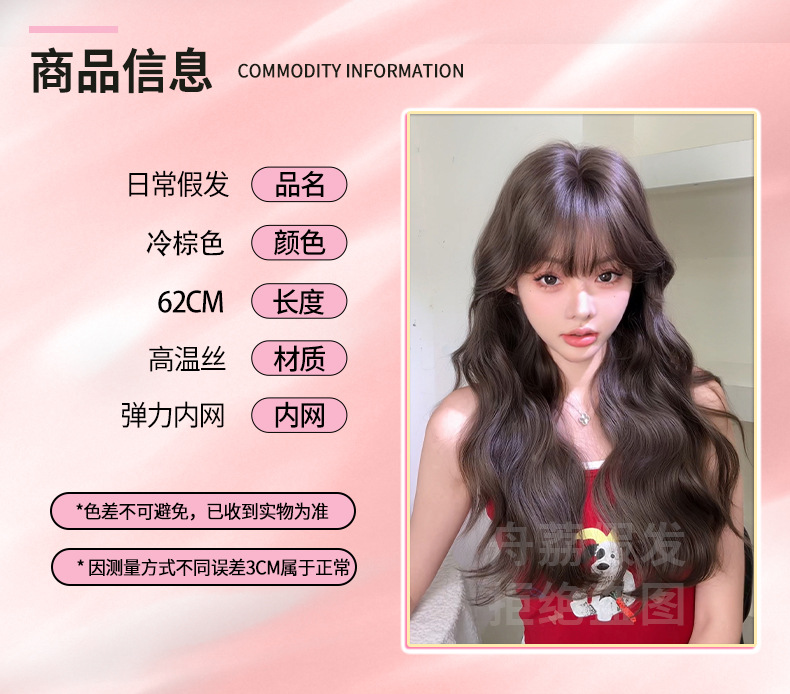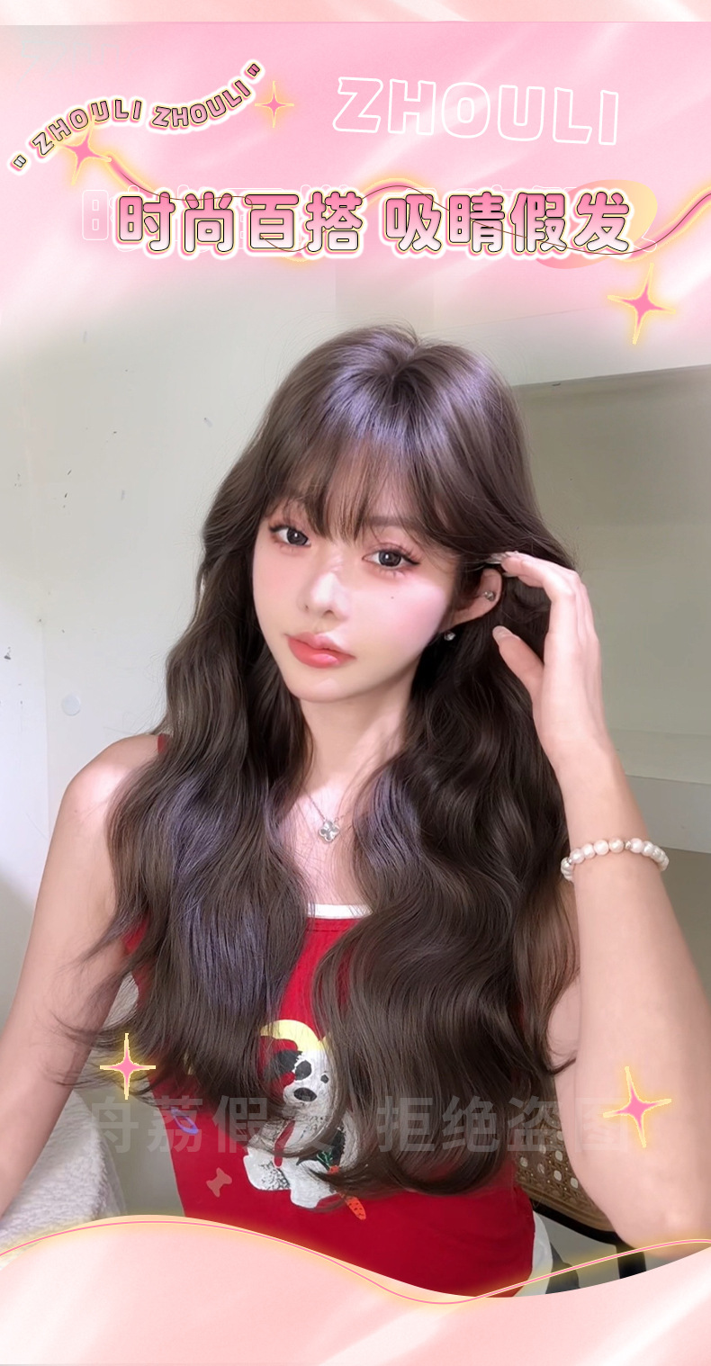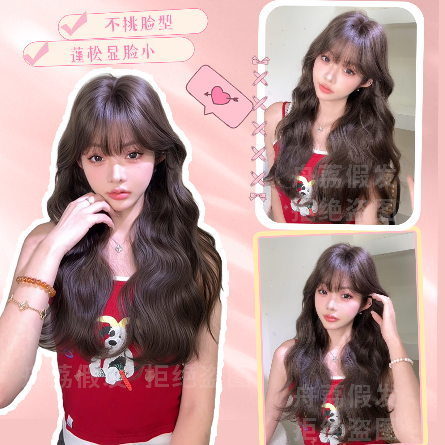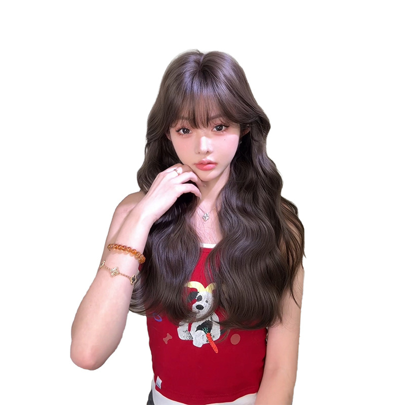 Zhouli Wig Cold Brown Long Curly Hair Sweet and Gentle Atmosphere Fluffy Natural Water Ripple Female Full Headgear Wholesale