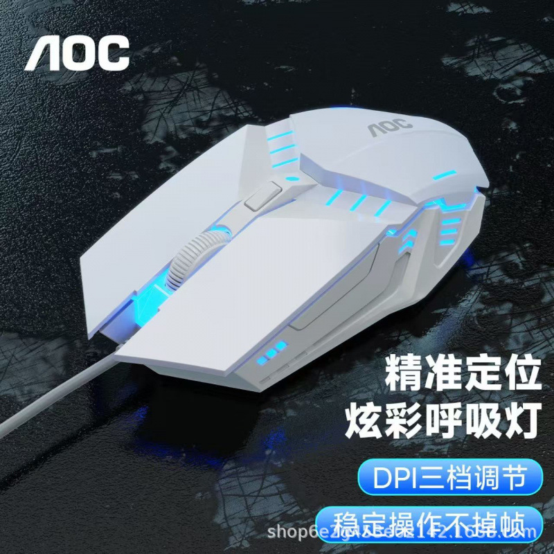 Aocms120 white wired luminous mouse