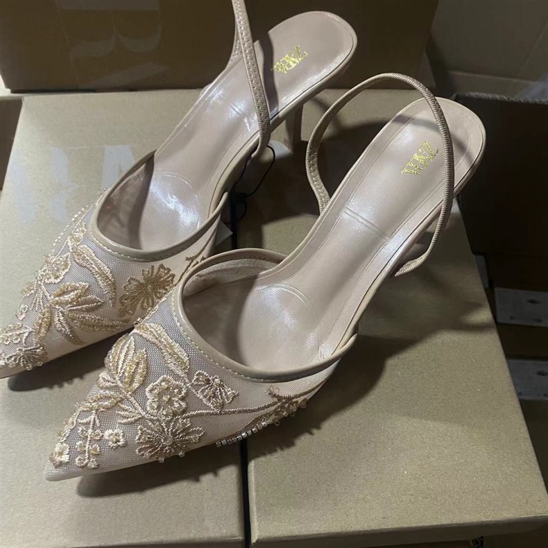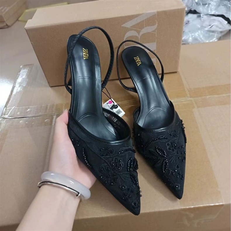 Za Spain 2025 New Autum Women's Shoes White Embroidered Mesh Stiletto Heels Pointed Toe Pumps Sandals for Women