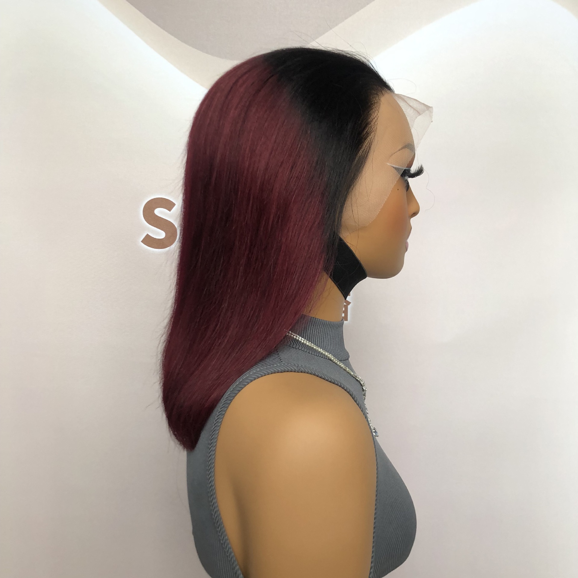 13*4 1B # /99J Bobo Wine Red Bob Human Hair Bobwig Human Hair Wig
