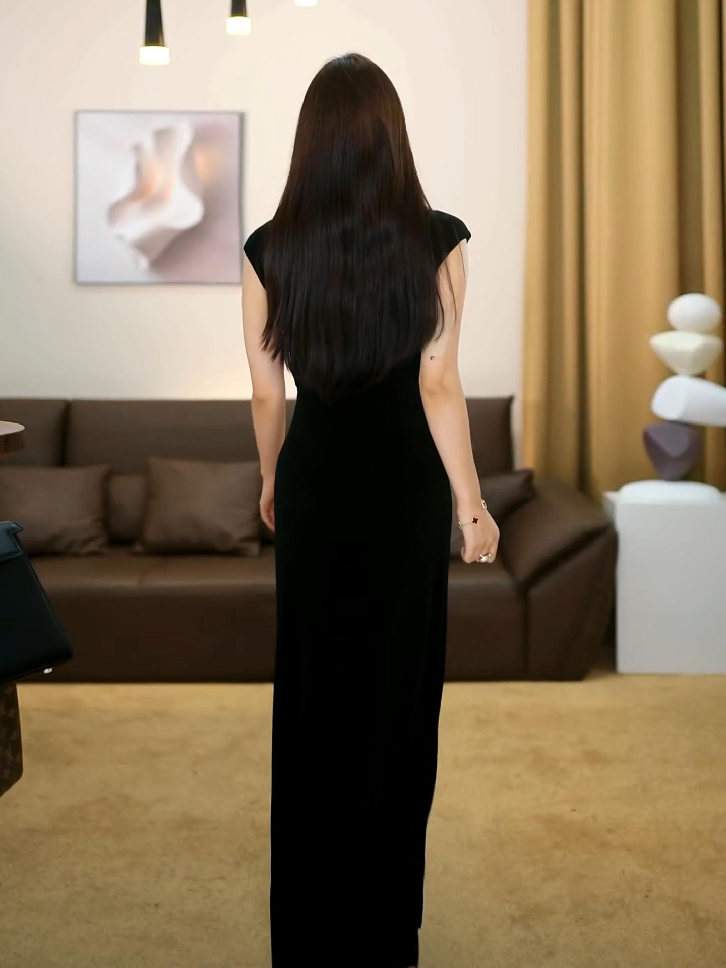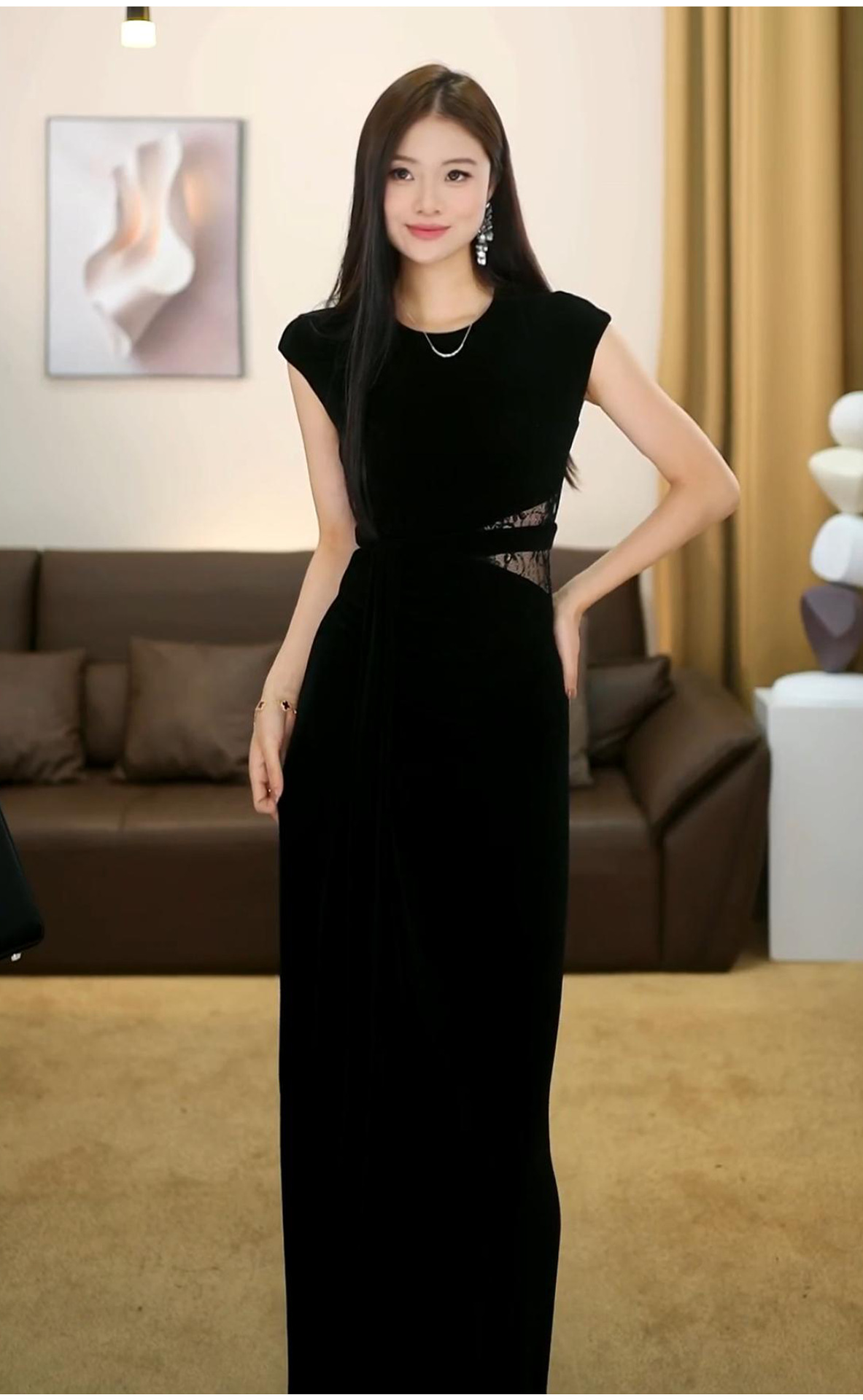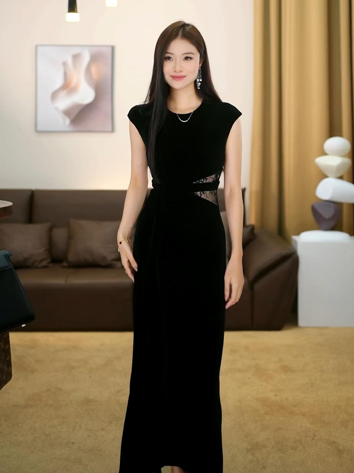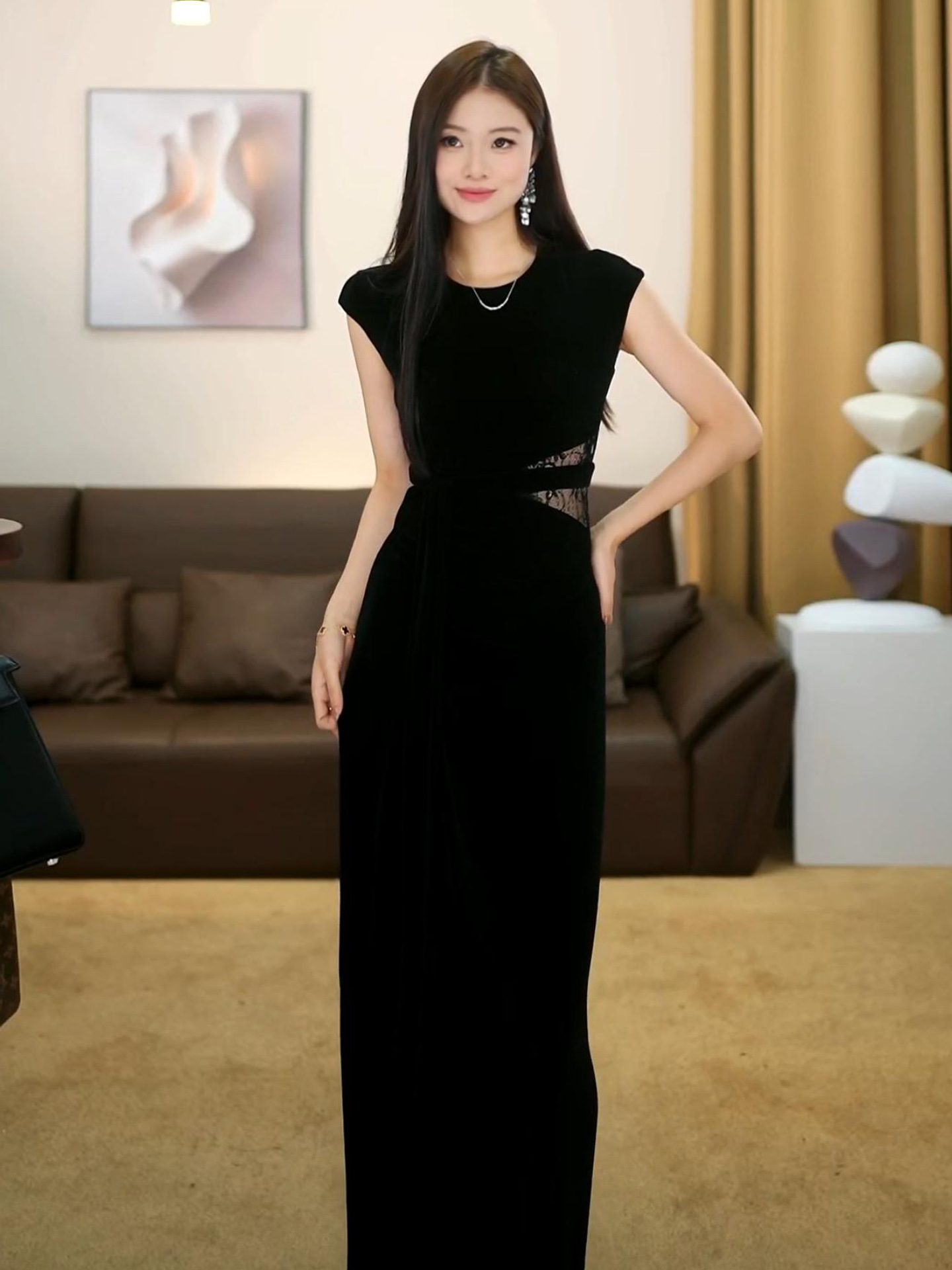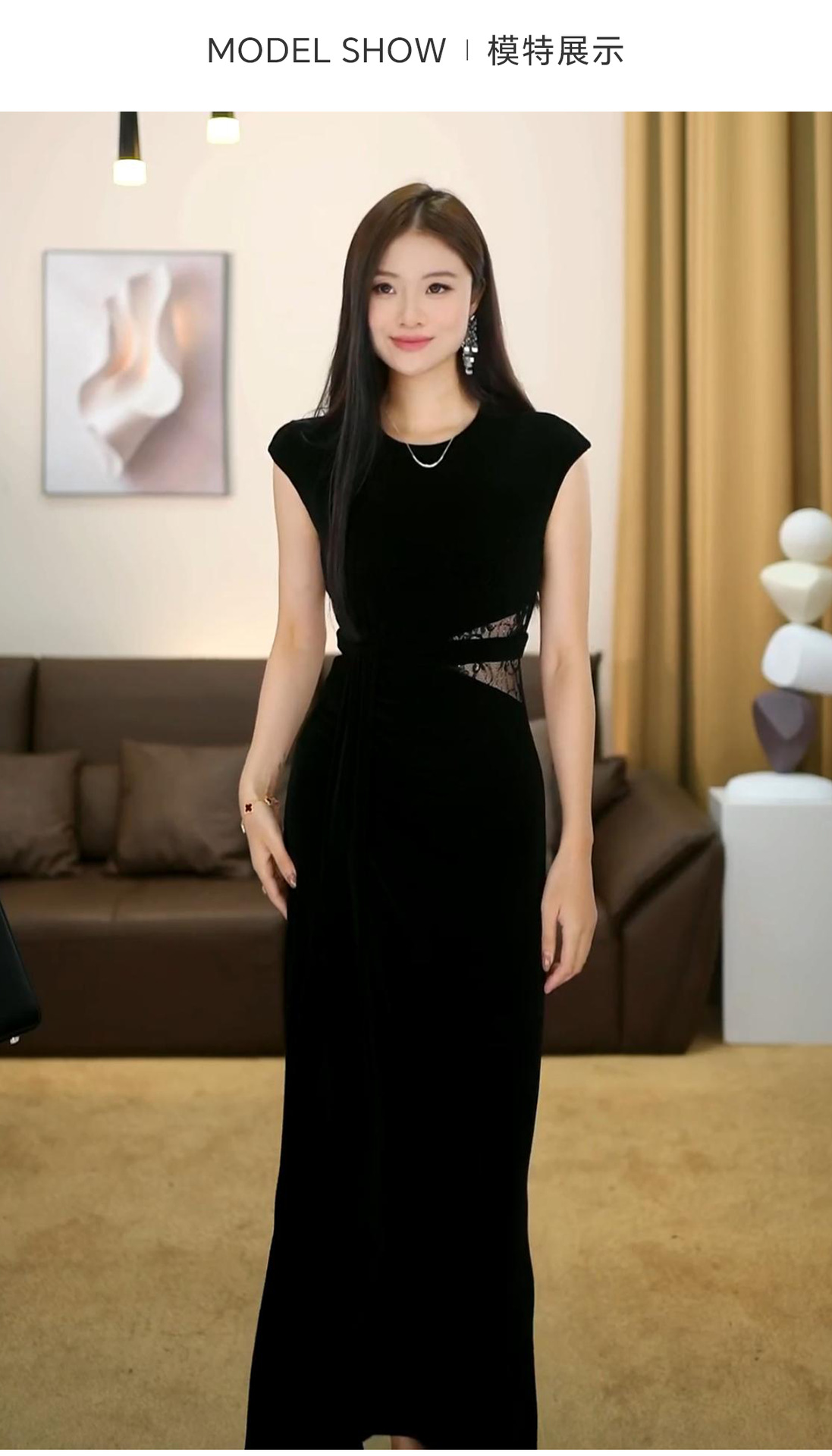 Huazhiding Summer New French Fashion High-End Black Waist Slimming Dress-Vg0243