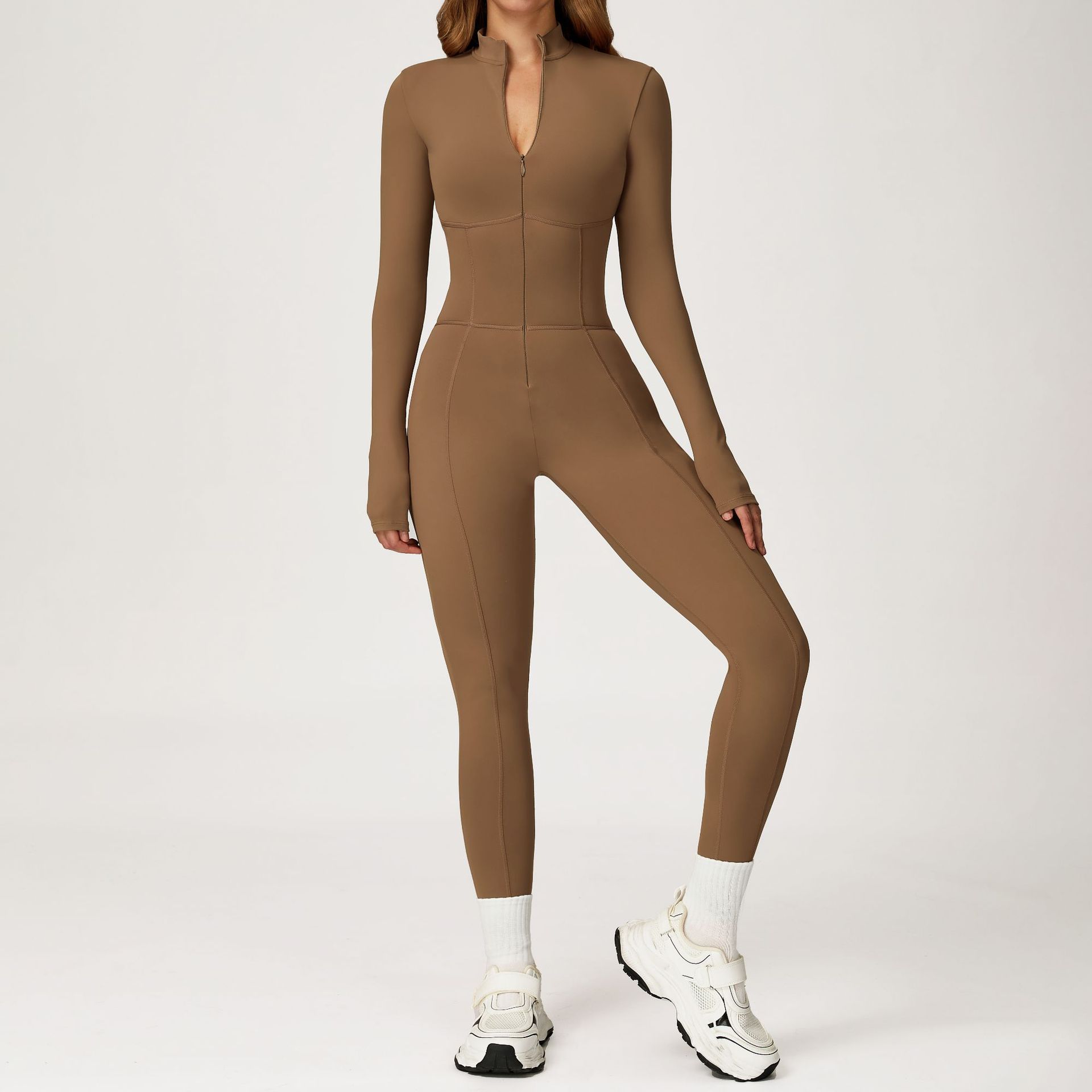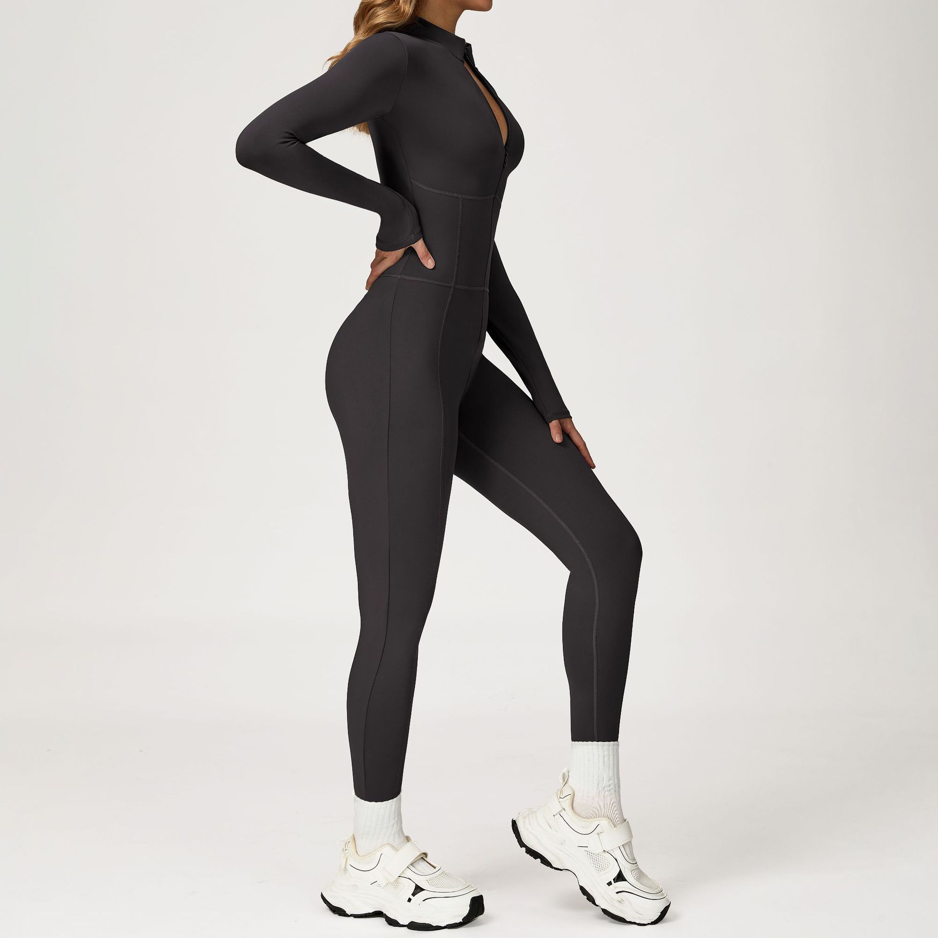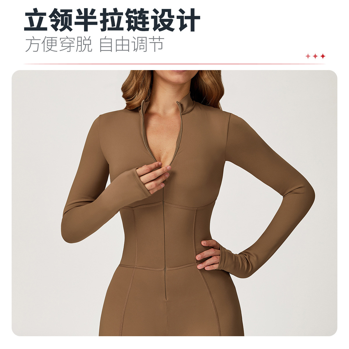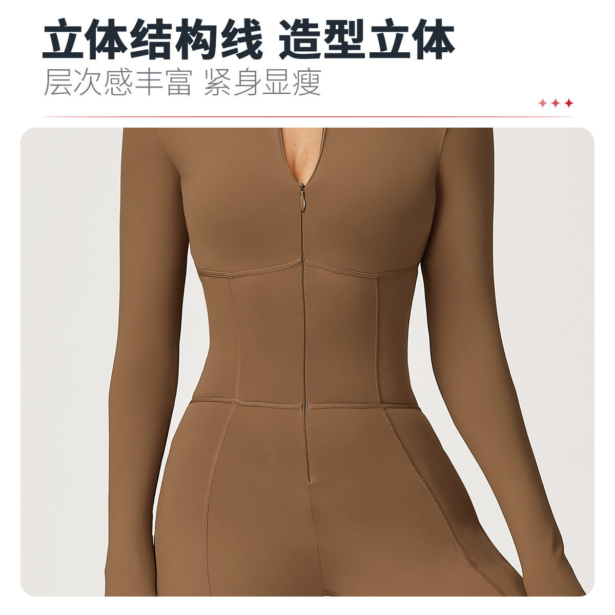 Autumn and Winter All-In-One Jumpsuit, Tight-Fitting Fleece-Lined Yoga Outdoor Warm Jumpsuit, Running Leisure Sports Fitness Clothing