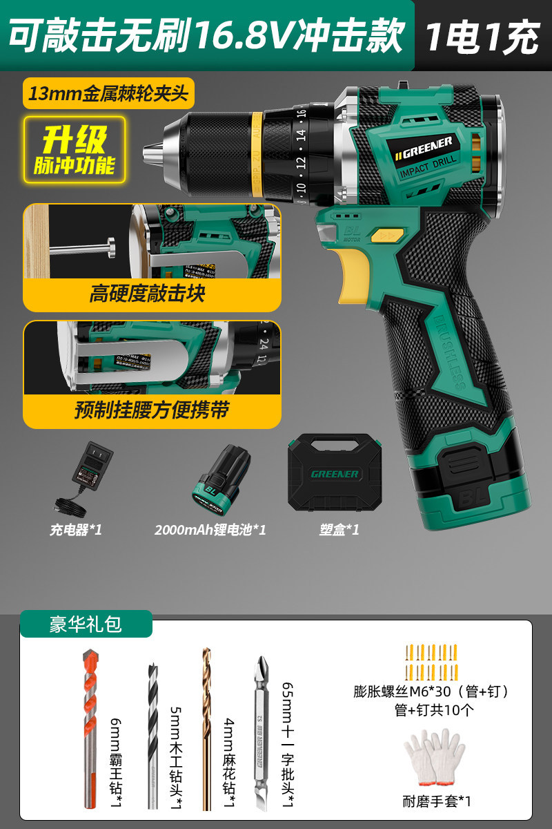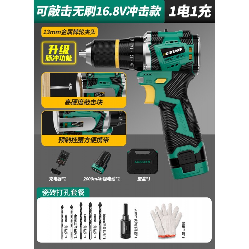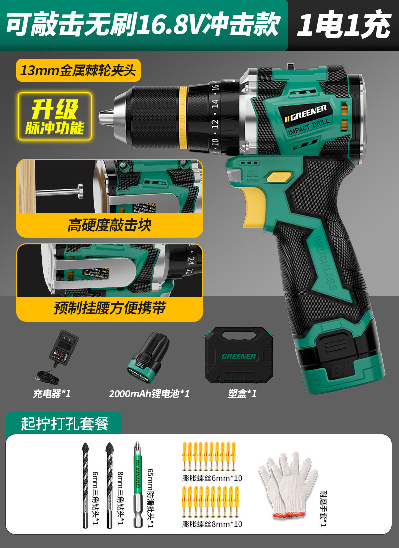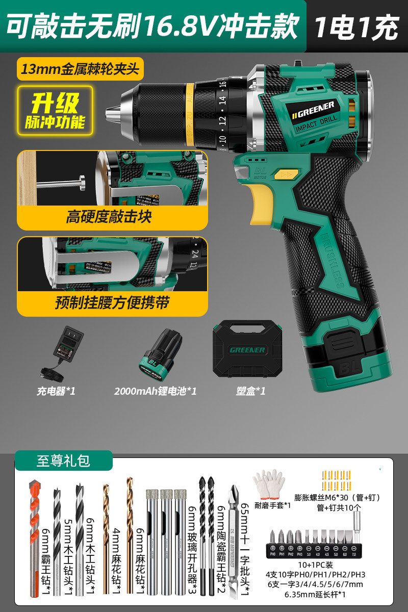 Upgraded pulse [drill batch 1 electric 1 charge] 16.8v brushless impact + knocking + waist hanging
