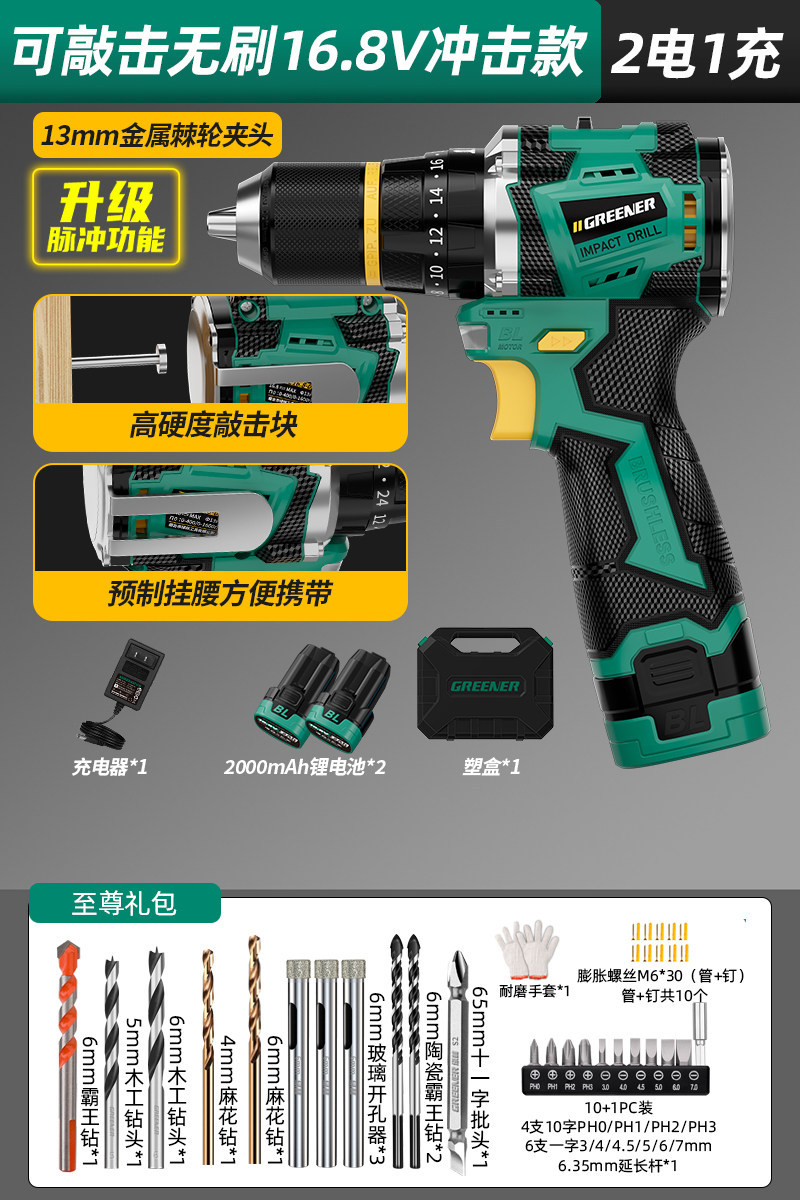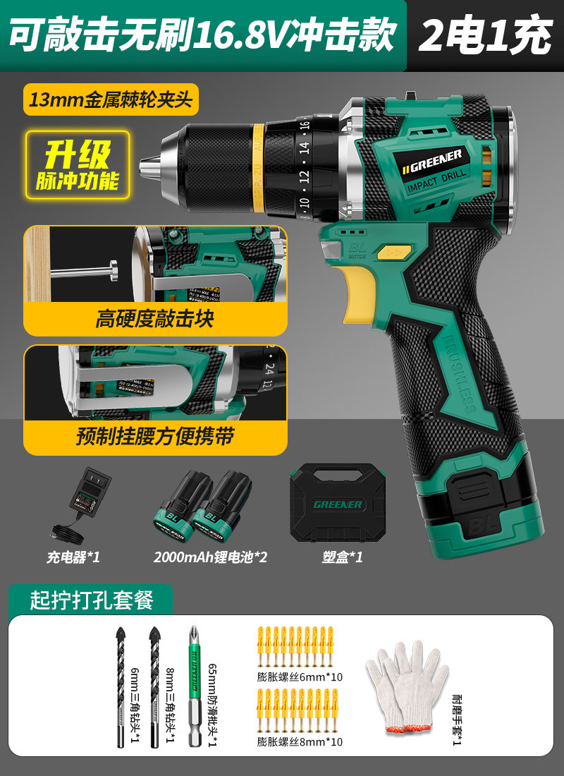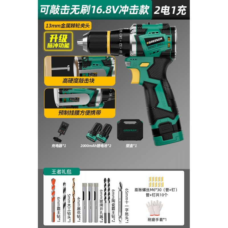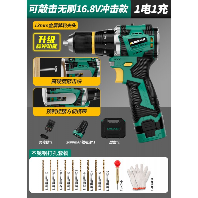 Upgraded pulse [drill batch 2 electric 1 charge] 16.8v brushless impact + knocking + waist hanging