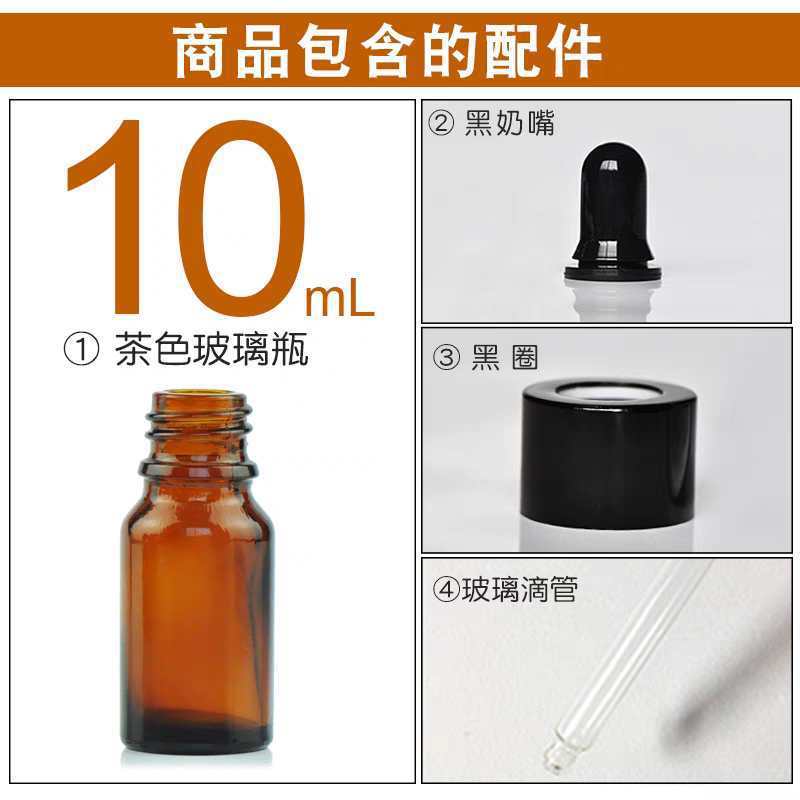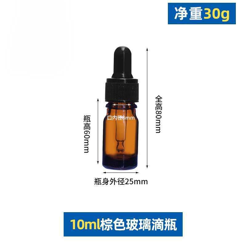 10ml with black plastic fine-grained dropper cap; glass; amber