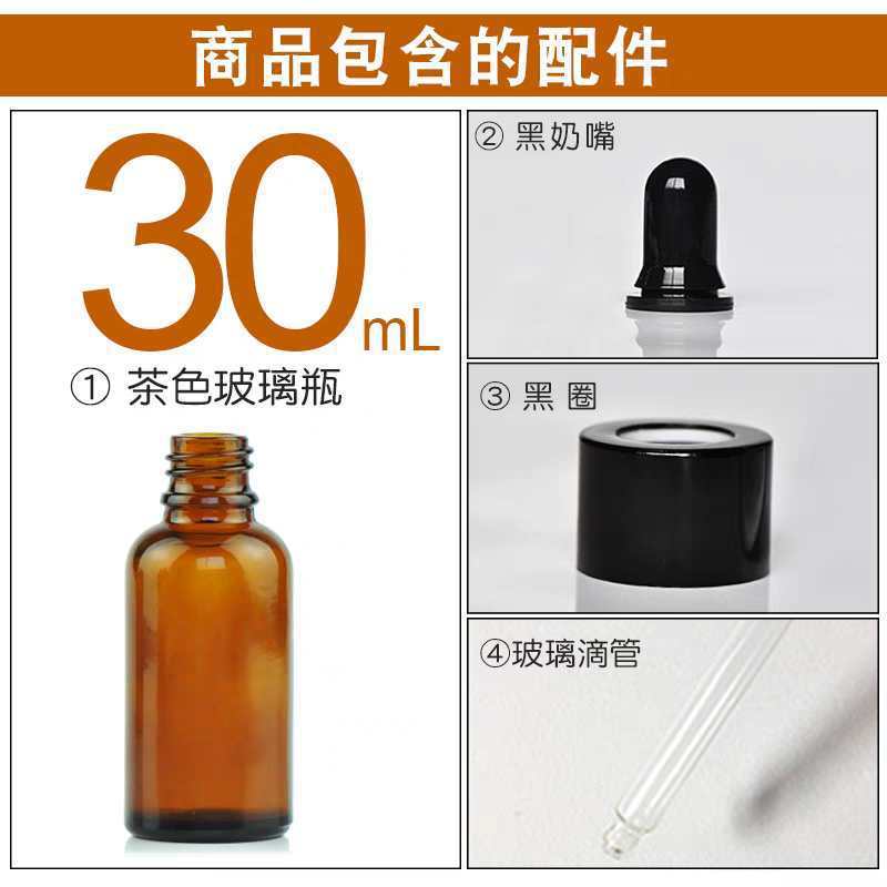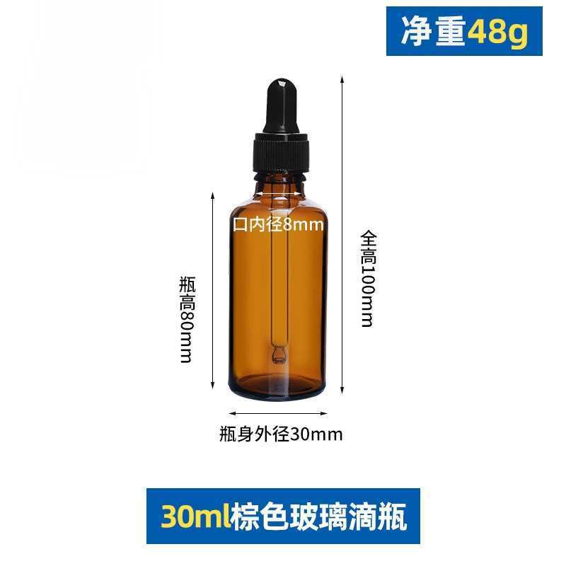 30ml with black plastic fine-grained dropper cap; glass; amber