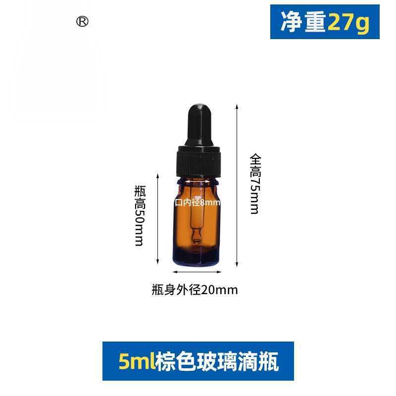 5ml with black plastic fine-grained dropper cap; glass; amber