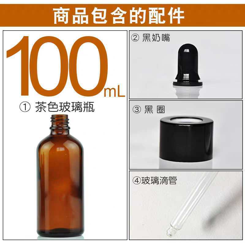 100ml with gloss black anodized aluminum dropper cap; glass; amber