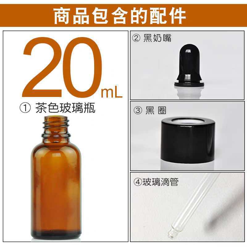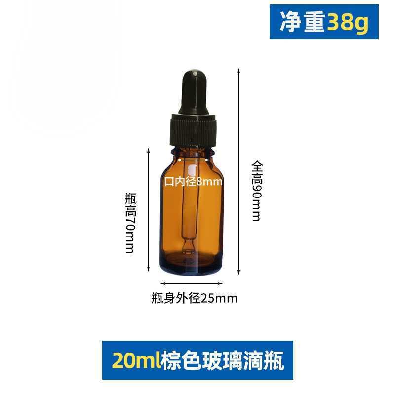 20ml with black plastic fine-grained dropper cap; glass; amber