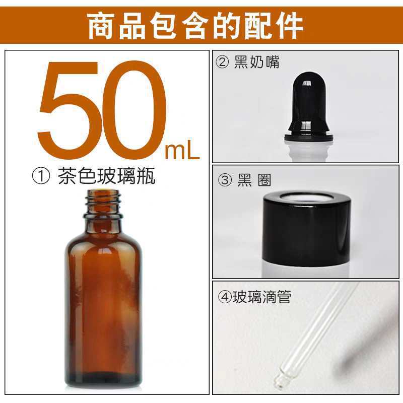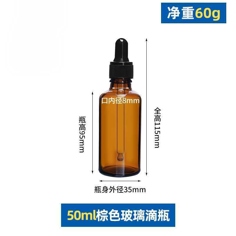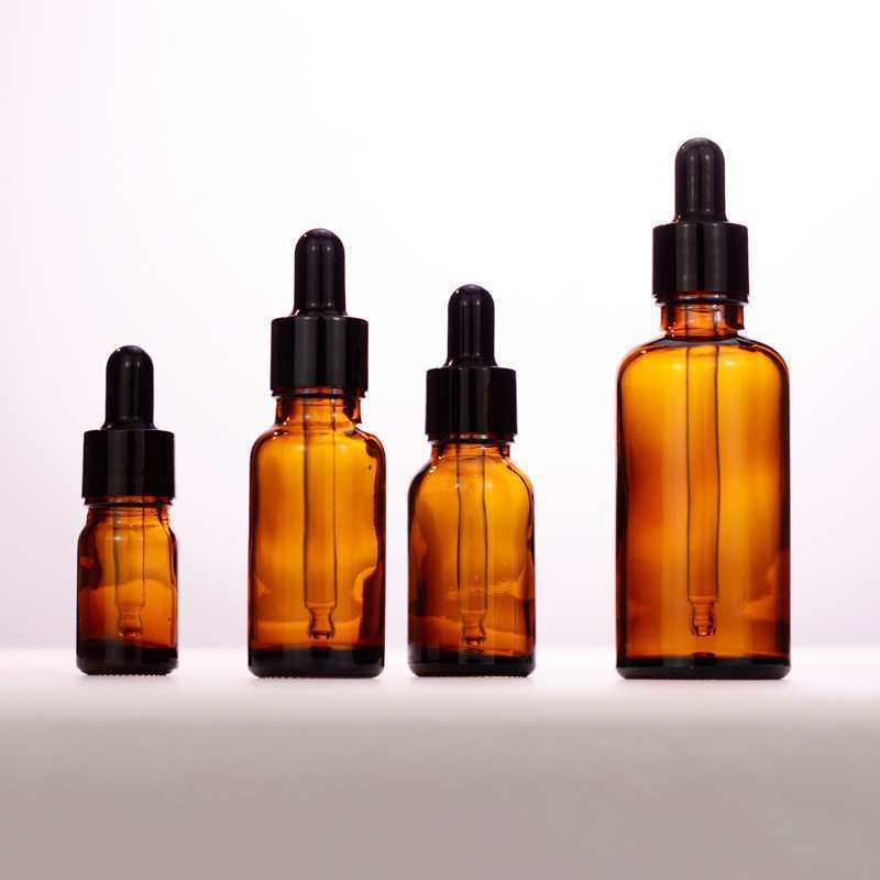 50ml with black plastic fine-grained dropper cap; glass; amber