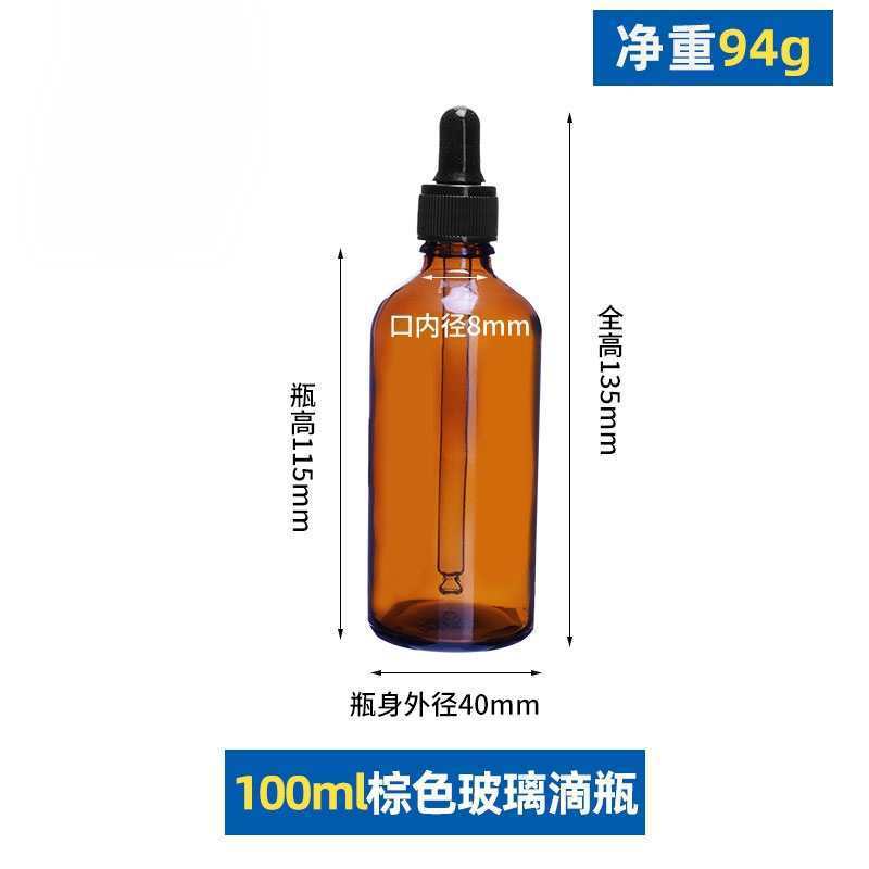 100ml with black plastic fine-grained dropper cap; glass; amber