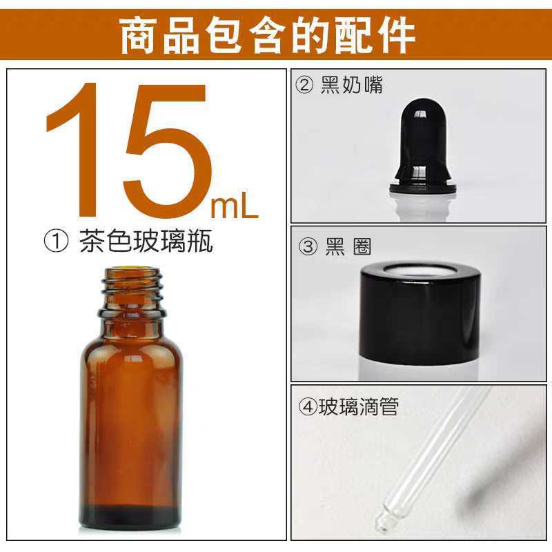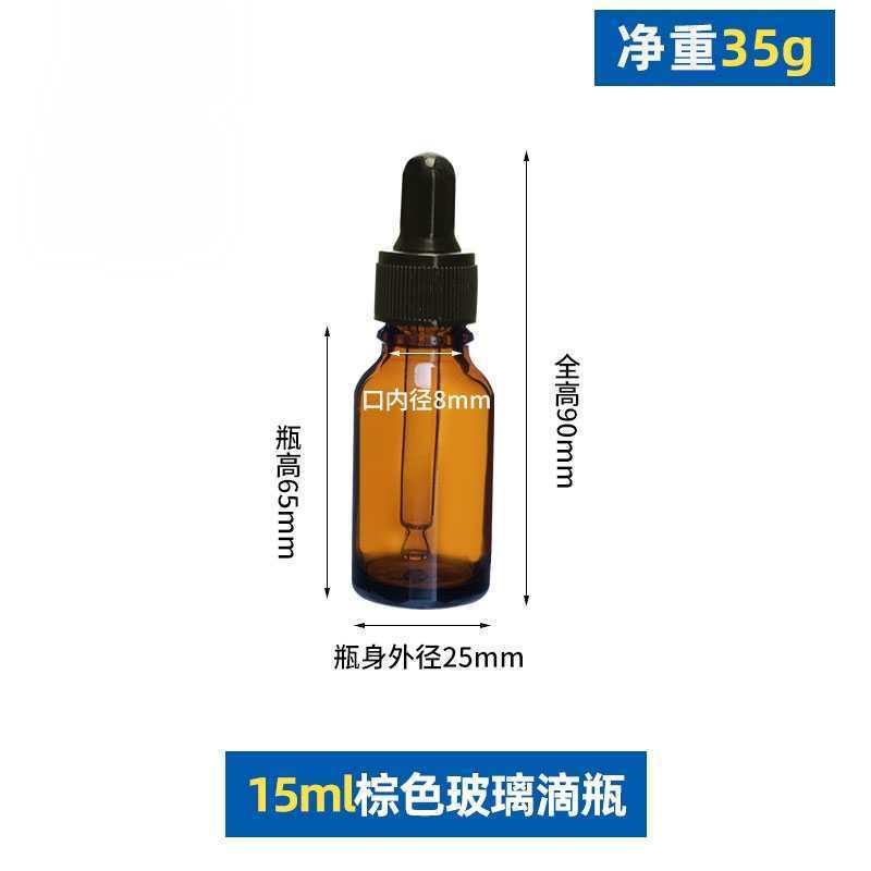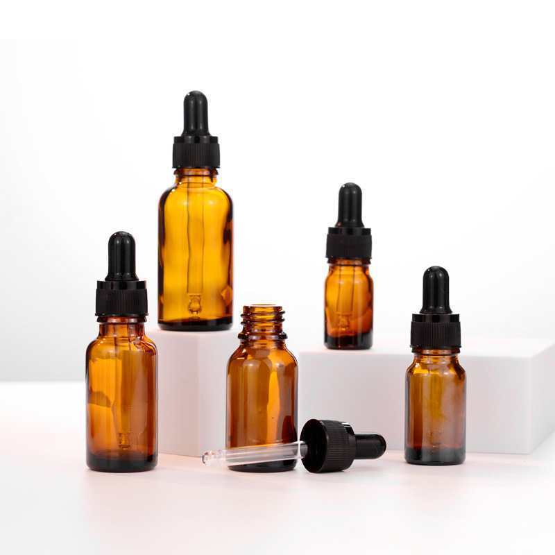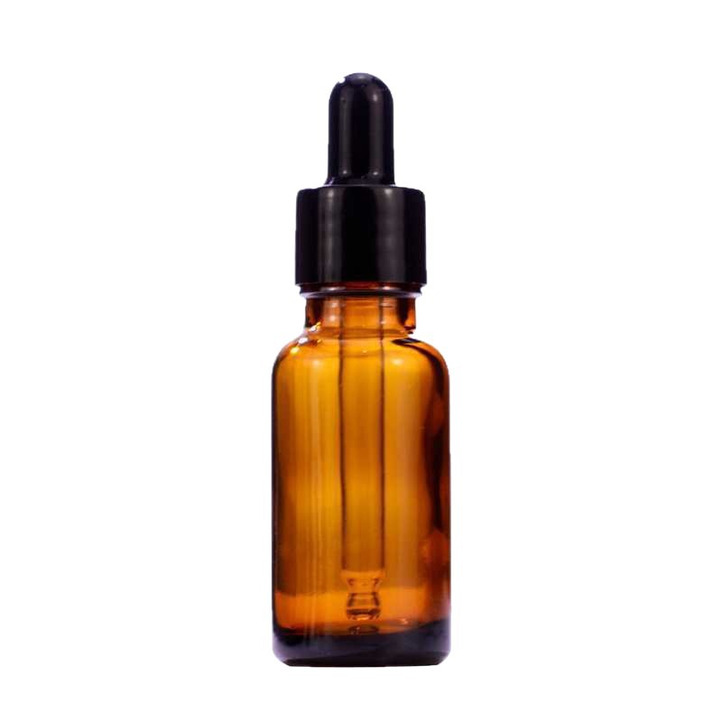 15ml with black plastic fine-grained dropper cap; glass; amber