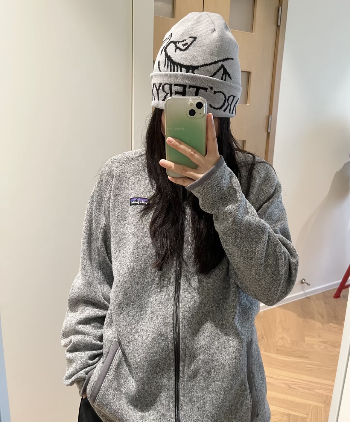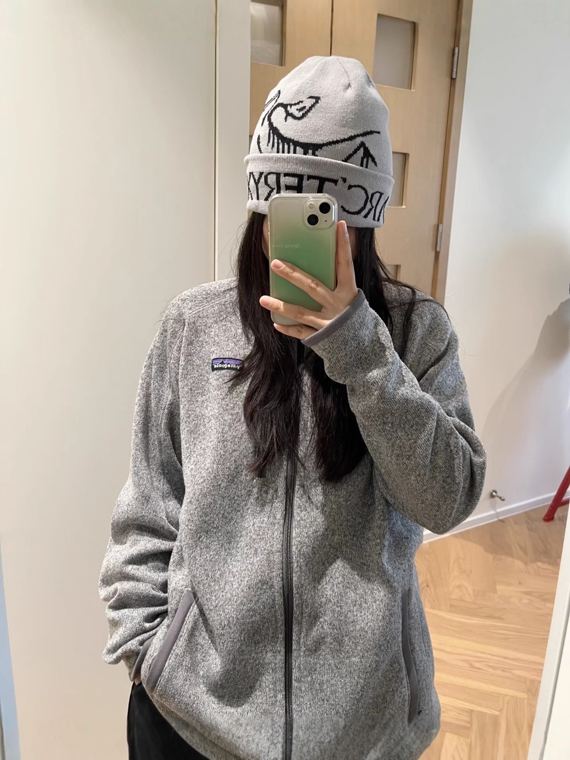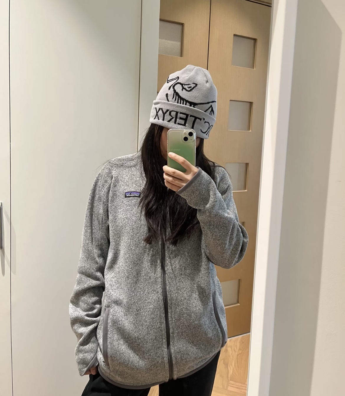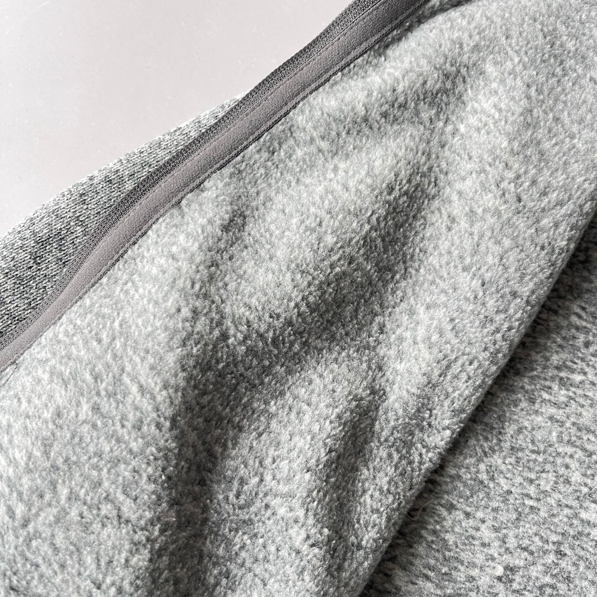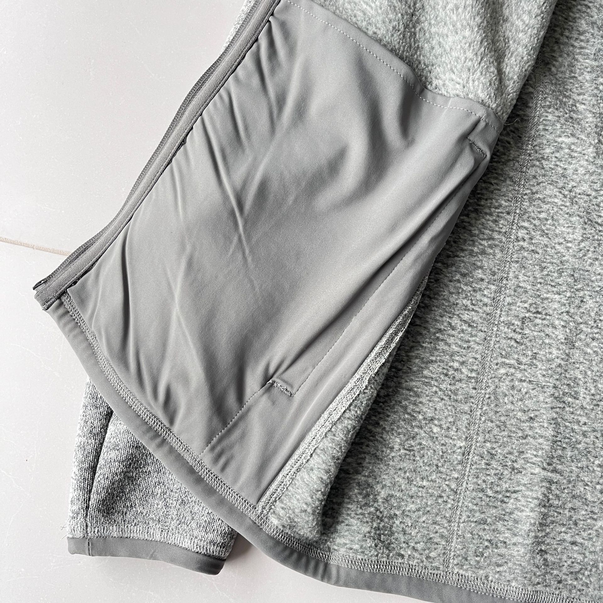 · 针织外观:面料表面模仿了针织毛衣的纹理,看起来比传统的抓绒面料更显精致和休闲,适合在办公室、校园或日常通勤中穿着。